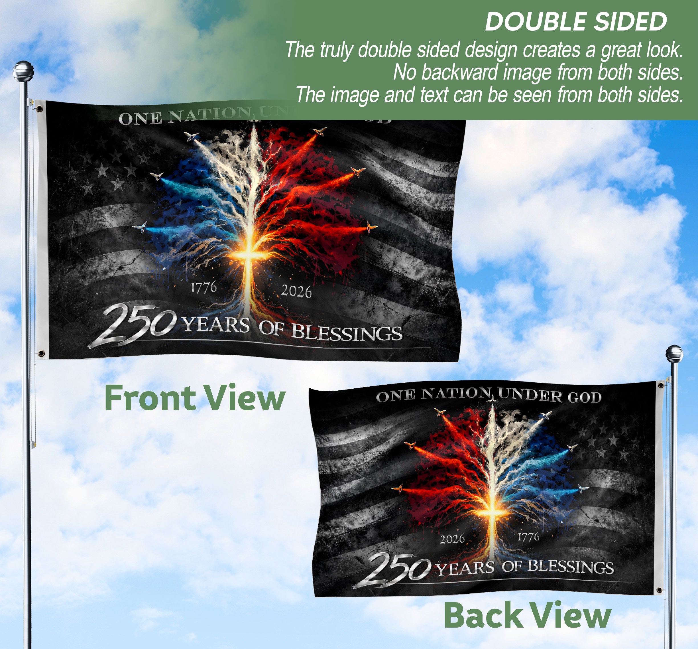 250 Years of Blessings American Flag – Christian Patriotic One Nation Under God Double Sided Design