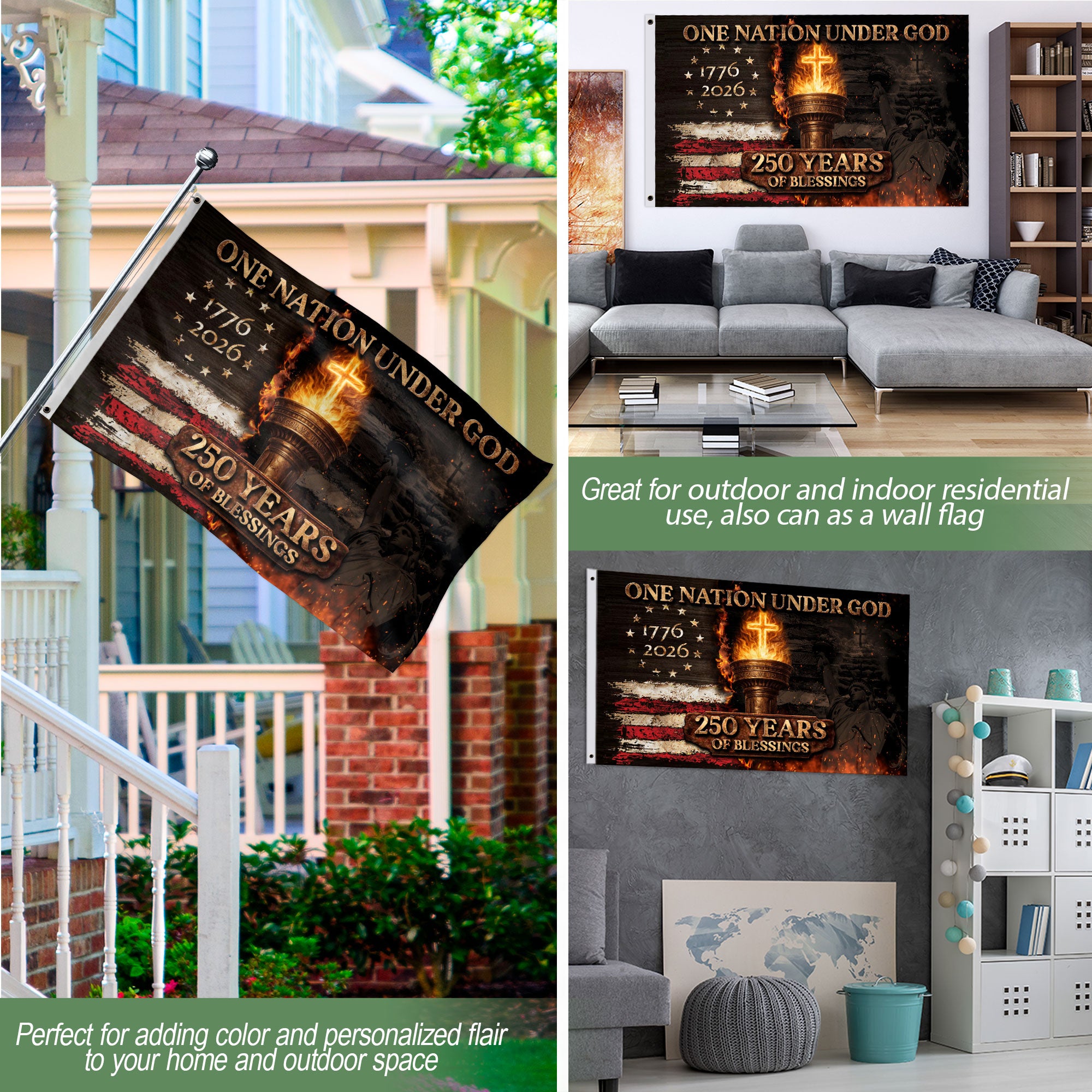 250 Years of Blessings Christian American Flag – One Nation Under God Patriot US Banner