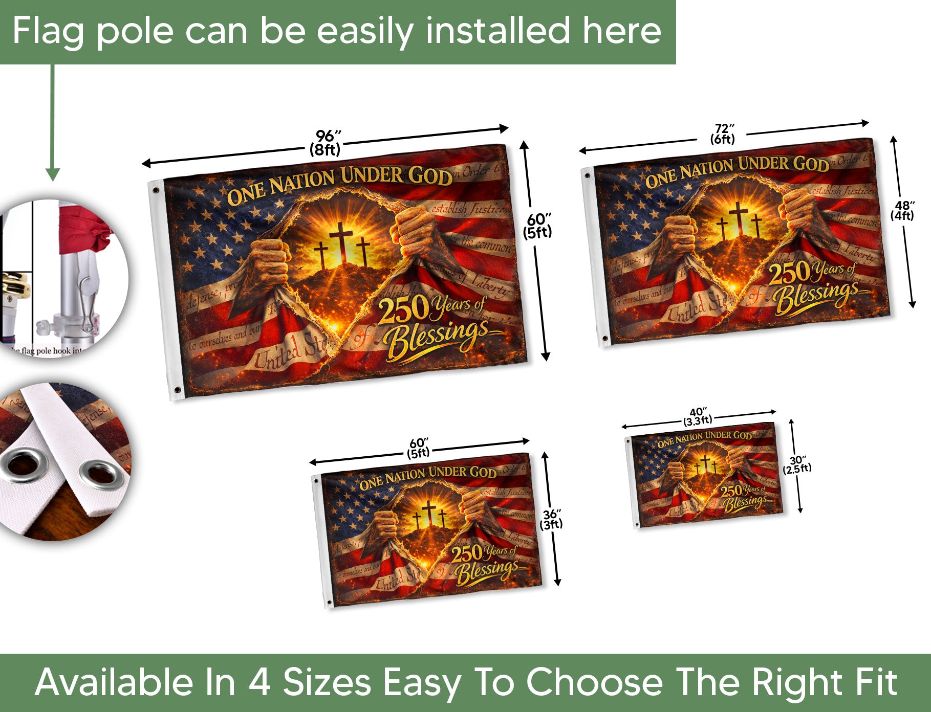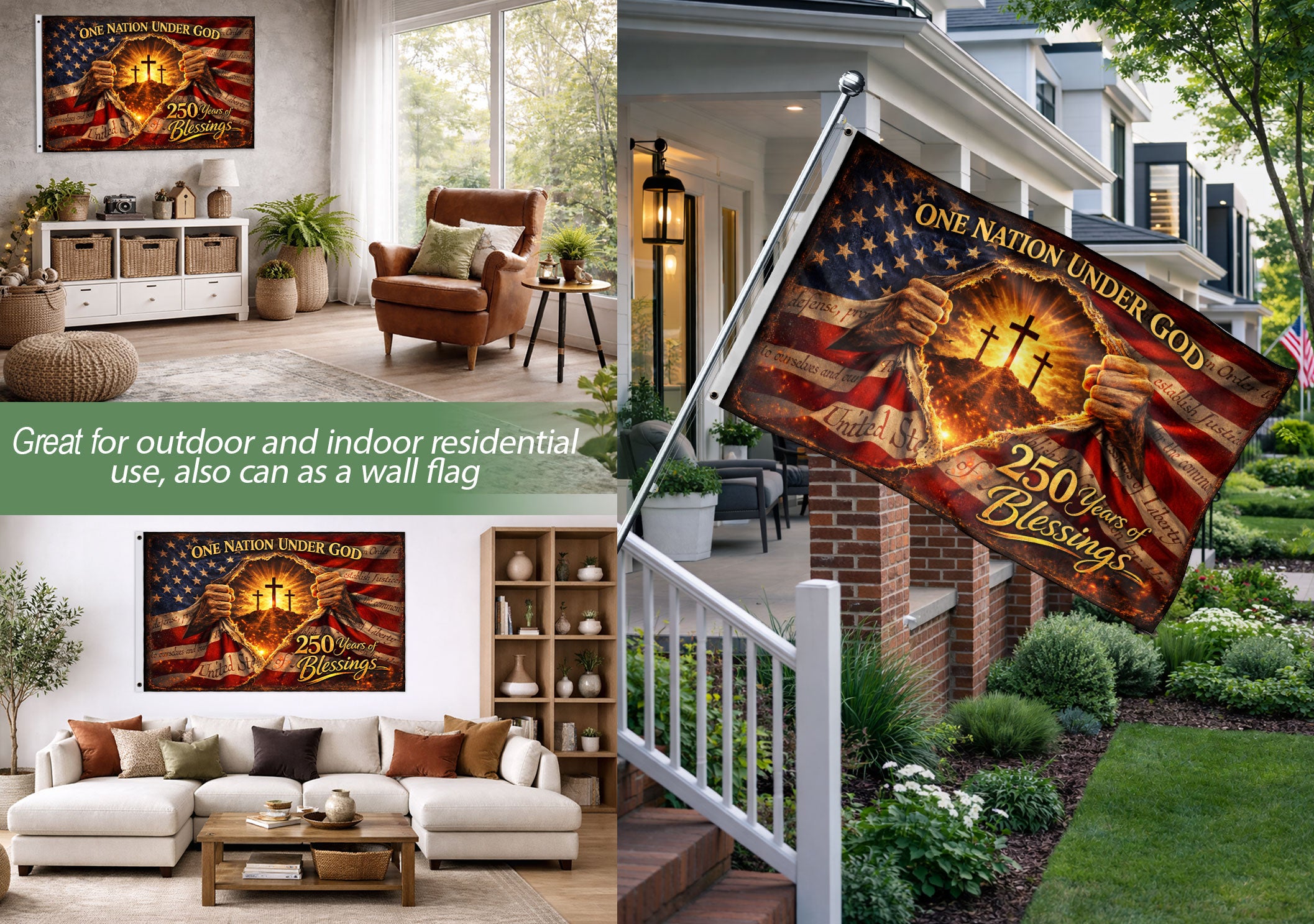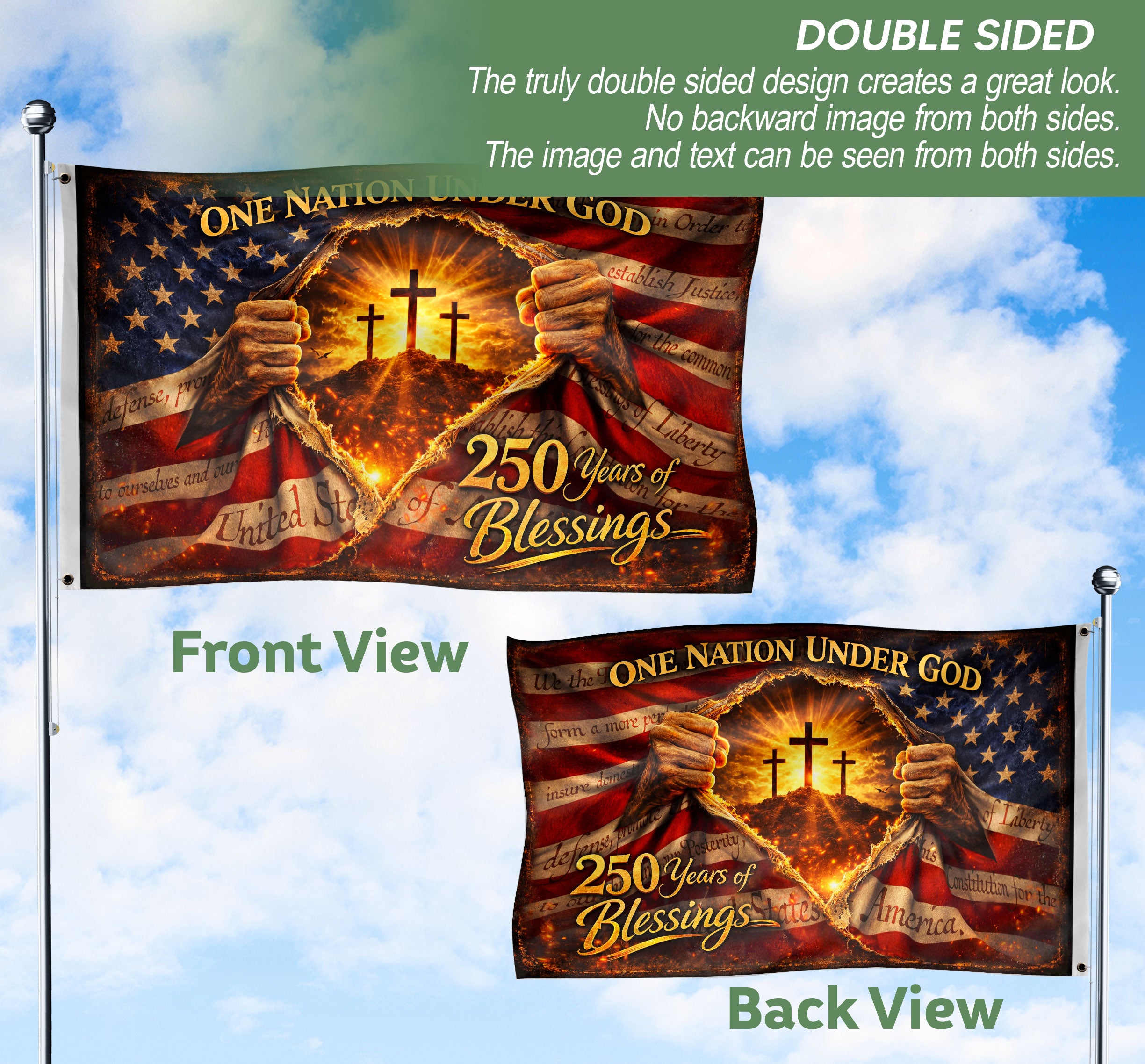 250 Years of Blessings Christian American Flag – One Nation Under God Patriot US Banner