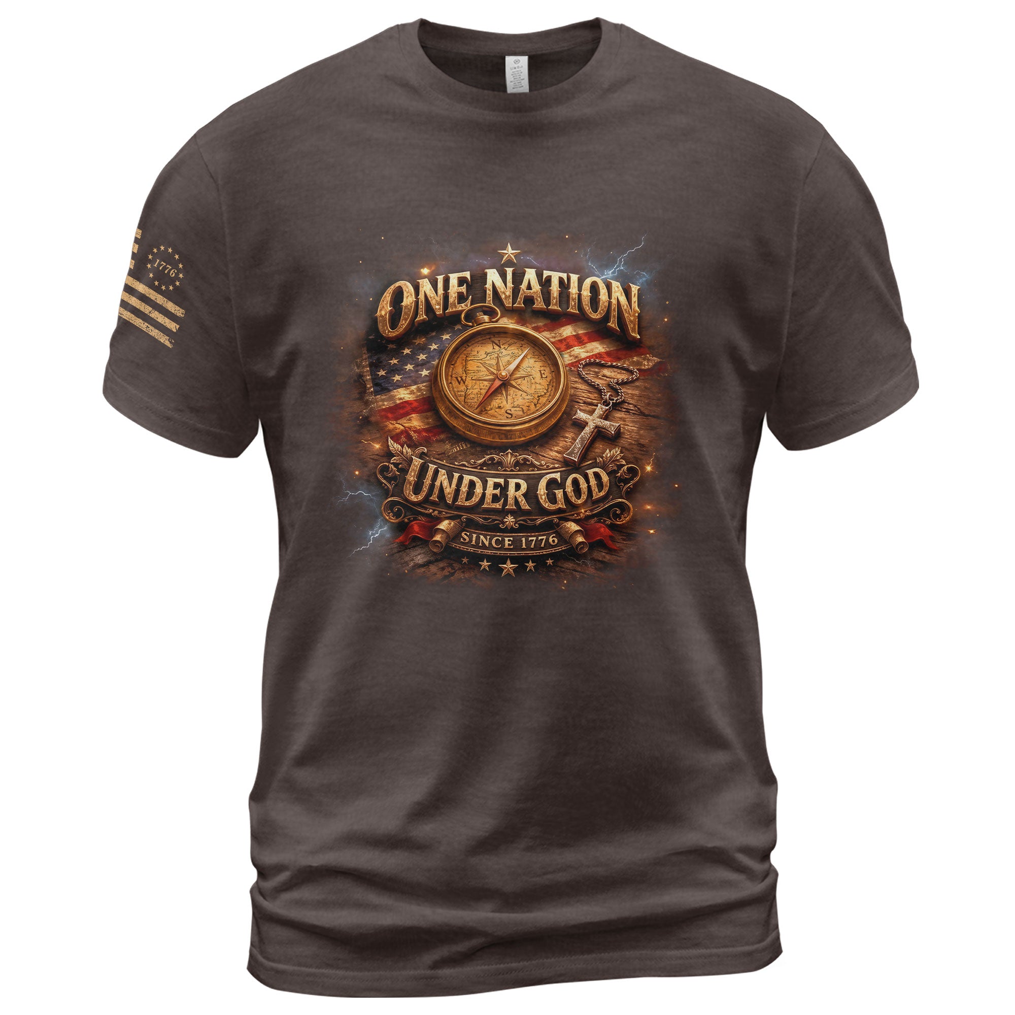 Celebrate America’s 250th anniversary from 1776 to 2026 with this Christian patriotic T-shirt. The striking design features a compass and cross symbolizing guidance rooted in faith, alongside ‘One Nation Under God’ and Bible-inspired bootleg graphics. Perfect for patriots who honor the nation’s journey of liberty, independence, and steadfast devotion. Crafted for comfort, this T-shirt is ideal for 4th of July celebrations, historical events, church gatherings, or everyday wear expressing American pride and Christian values. Made from soft, breathable fabric for all-day comfort. Show your faith and patriotism in style.