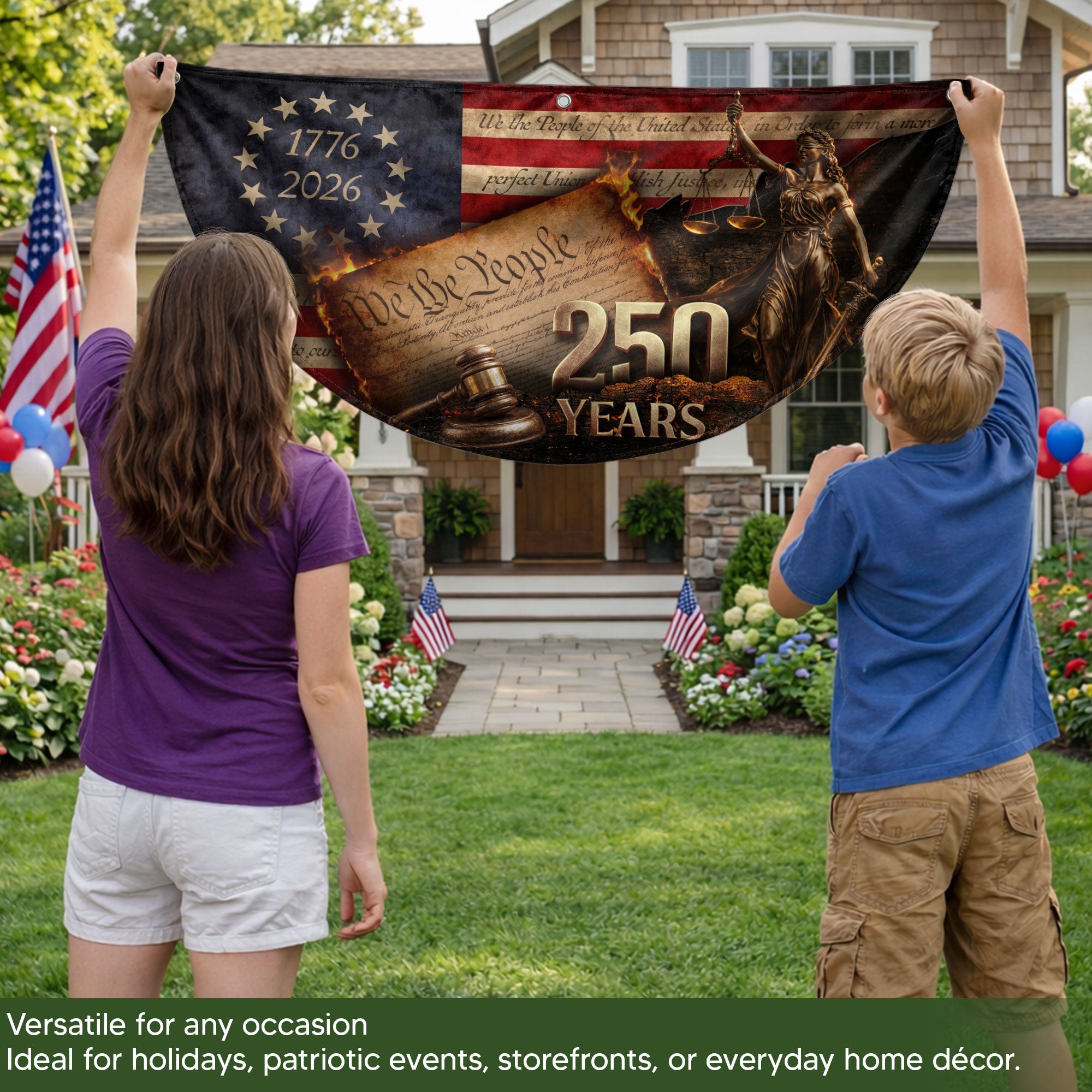 250 Years Lady Justice Fence Flag Patriotic 1776-2026 We The People Outdoor Banner