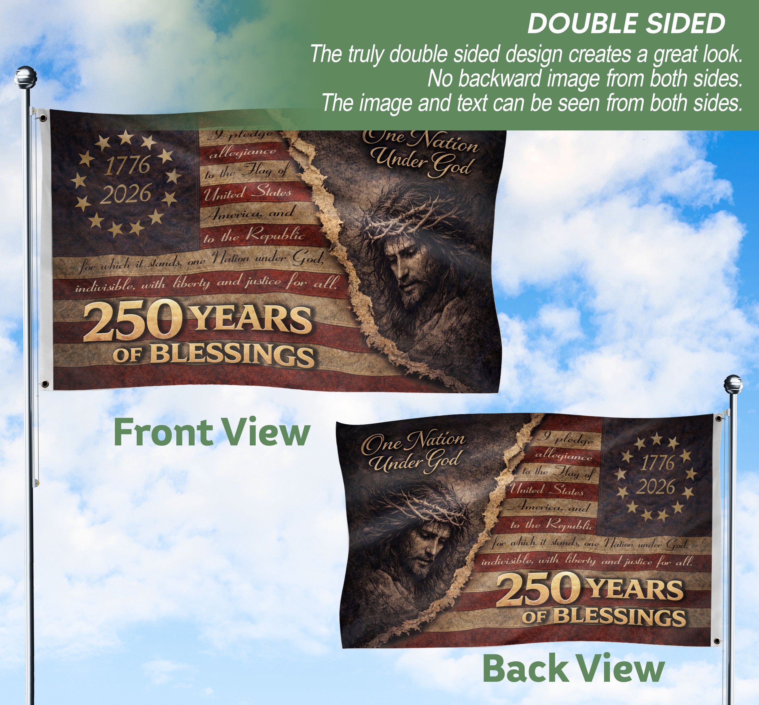 250 Years of Blessings American Flag – Christian Patriotic One Nation Under God Double Sided Design