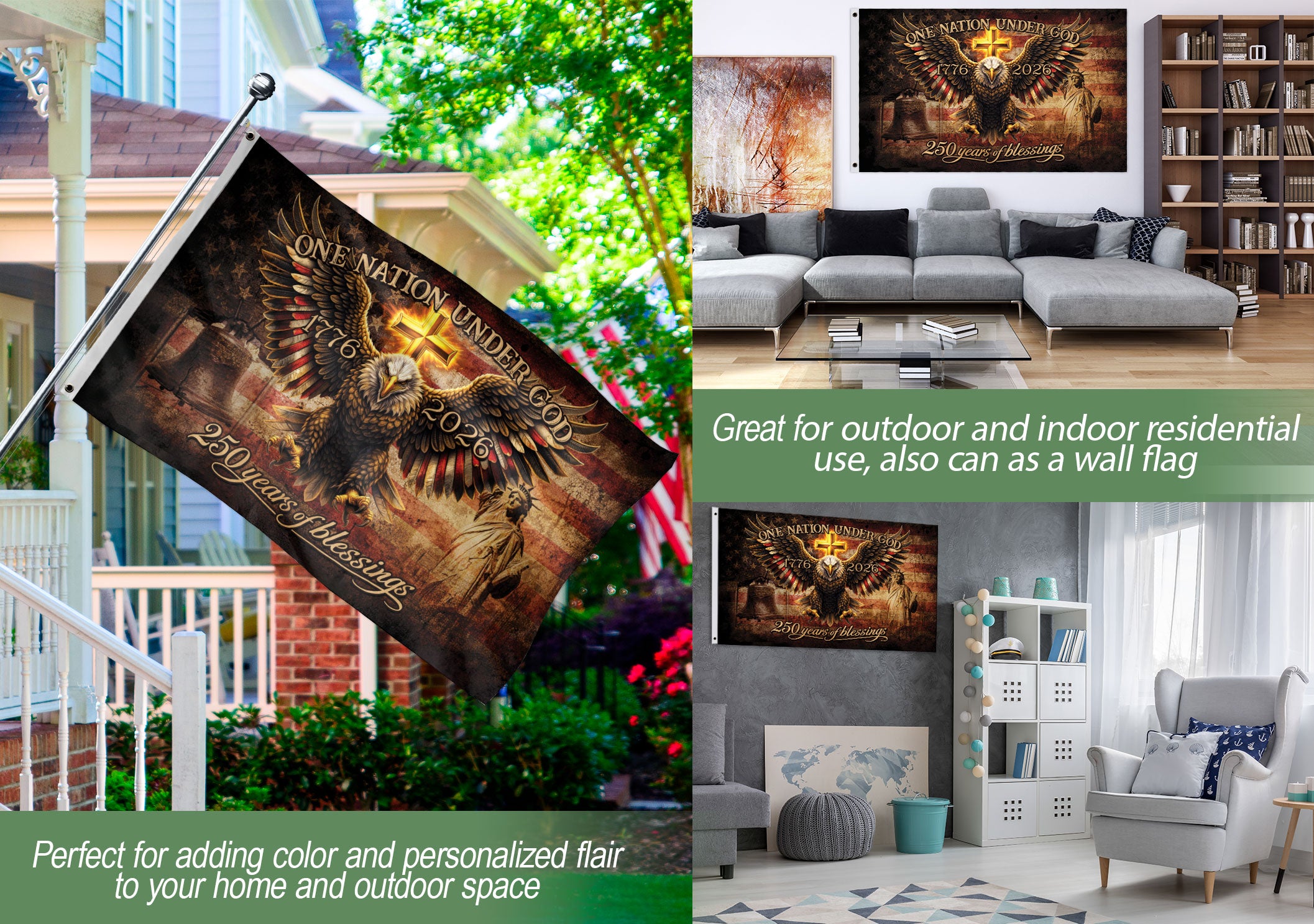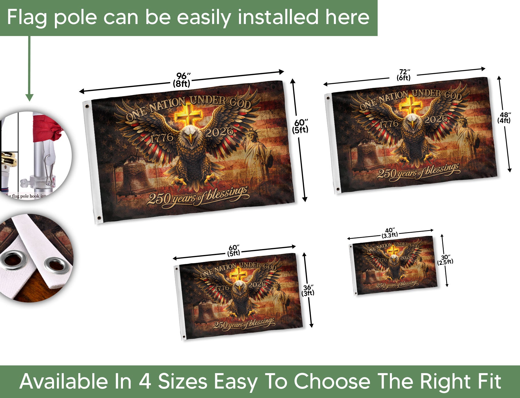United States 250th Anniversary Cross Flag 1776-2026 One Nation Under God Outdoor Patriotic