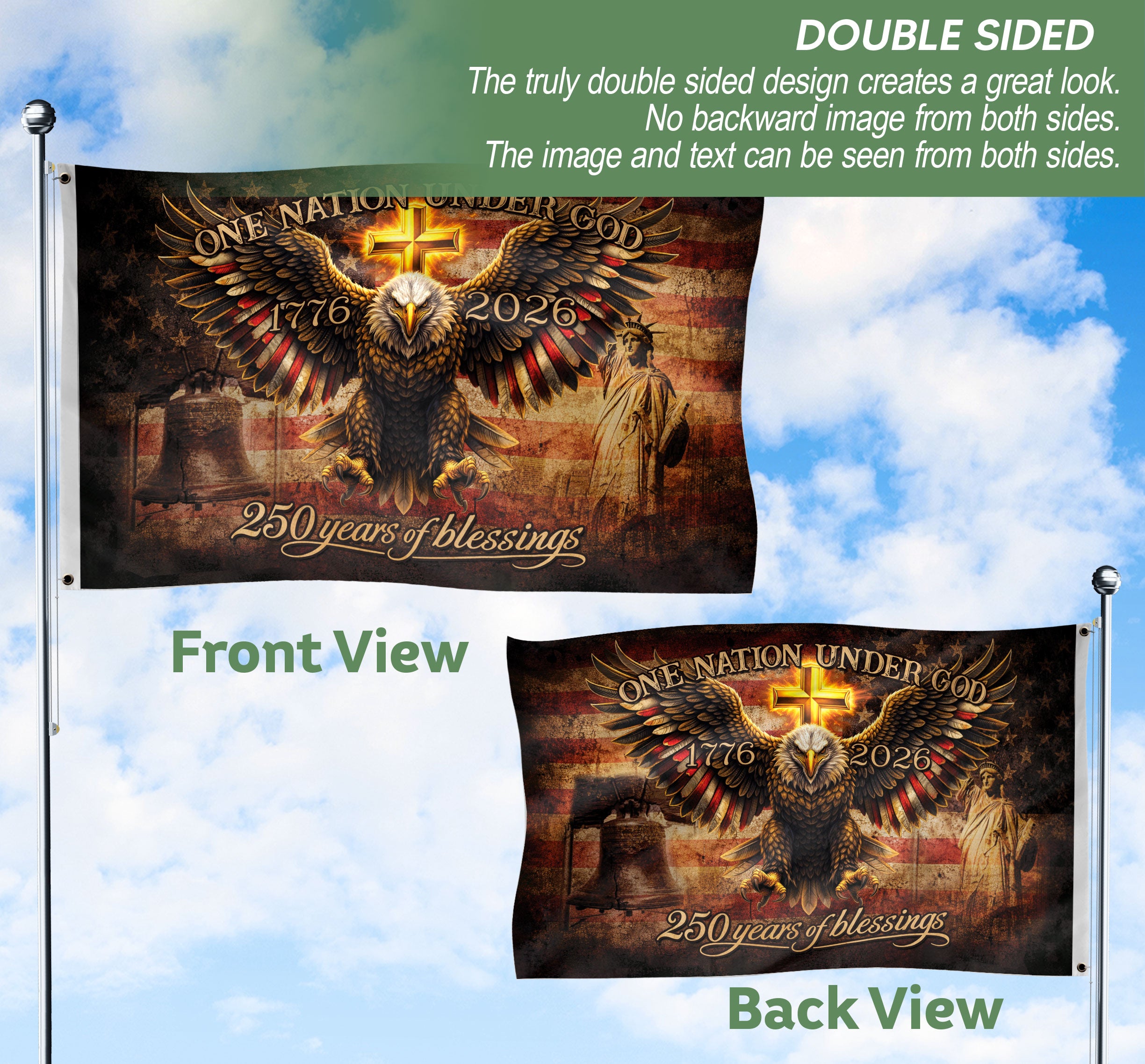 250 Years of Blessings USA Flag 1776-2026 Patriotic Eagle Liberty Bell Statue of Liberty Double Sided Outdoor Flag