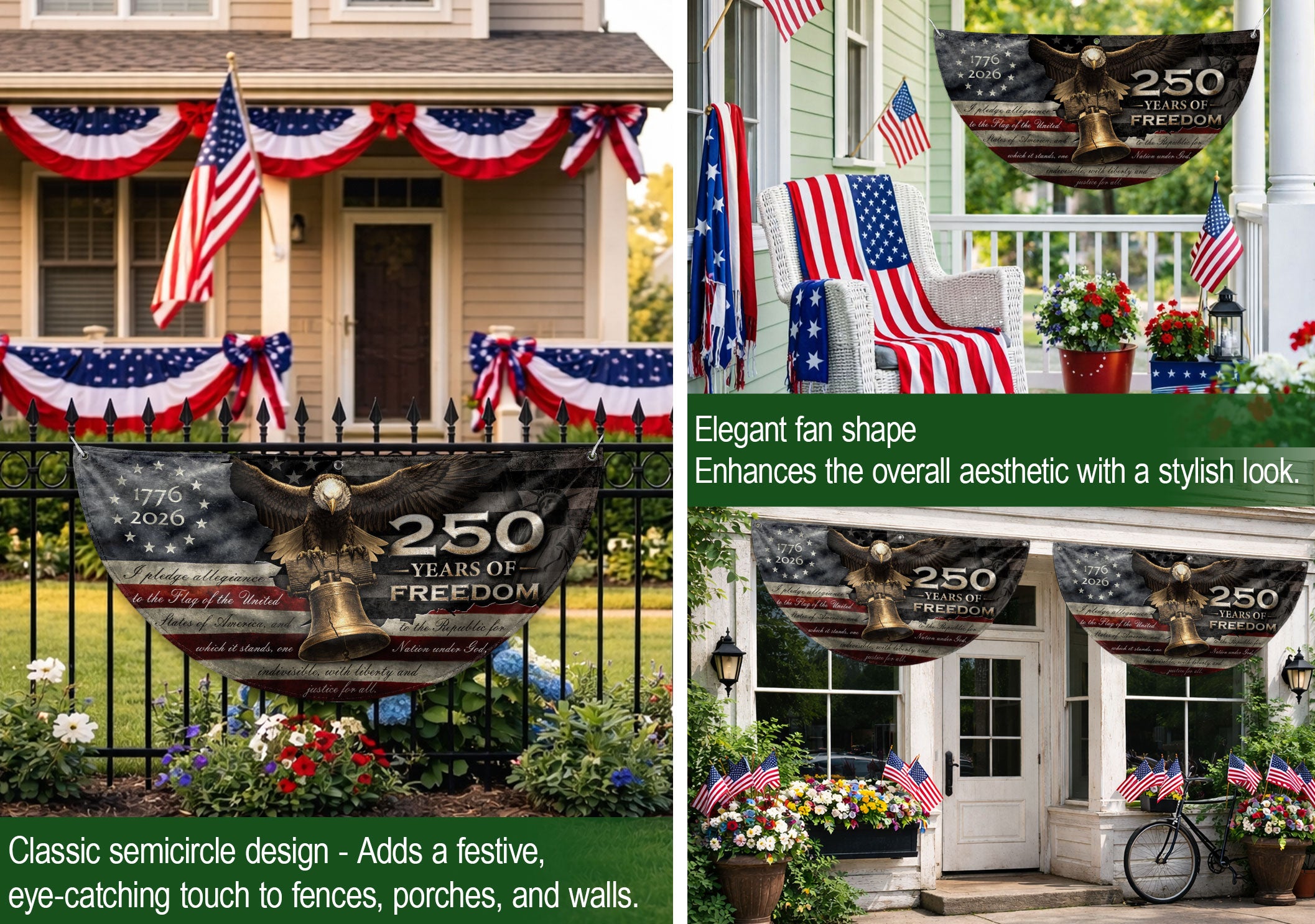 250 Years of Freedom Fence Flag 1776-2026 Liberty Bell Eagle Patriotic Banner