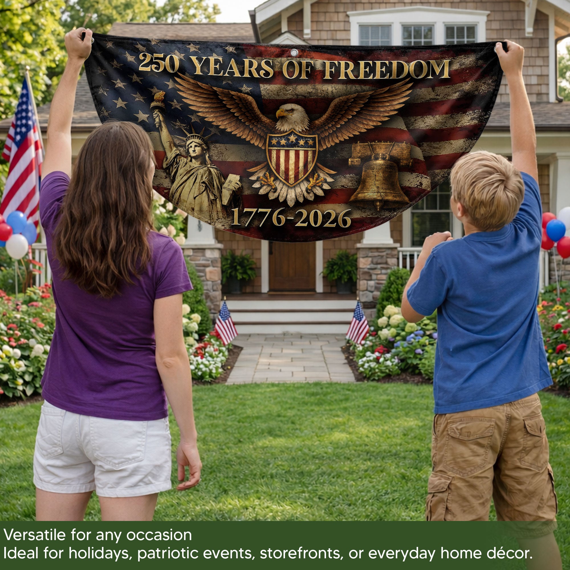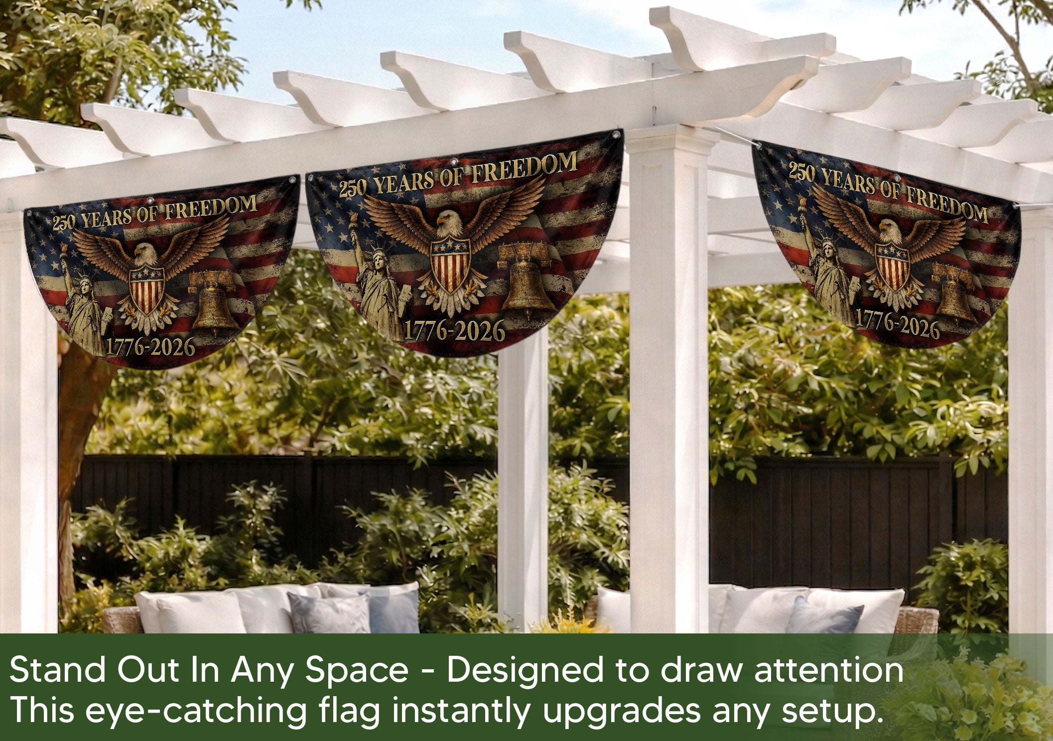 250 Years of Freedom Fence Flag 1776-2026 Patriotic Eagle Liberty Bell We The People Design