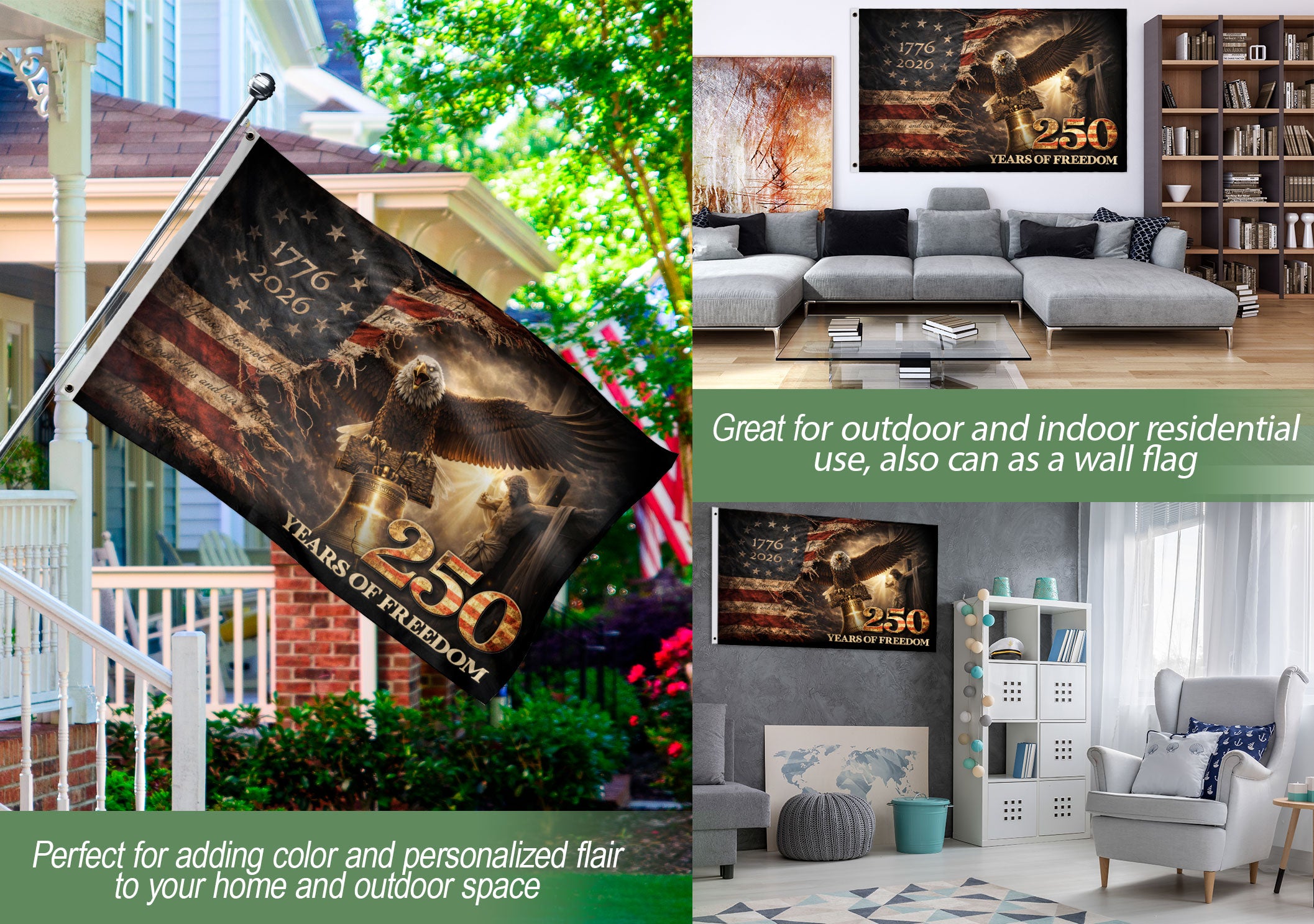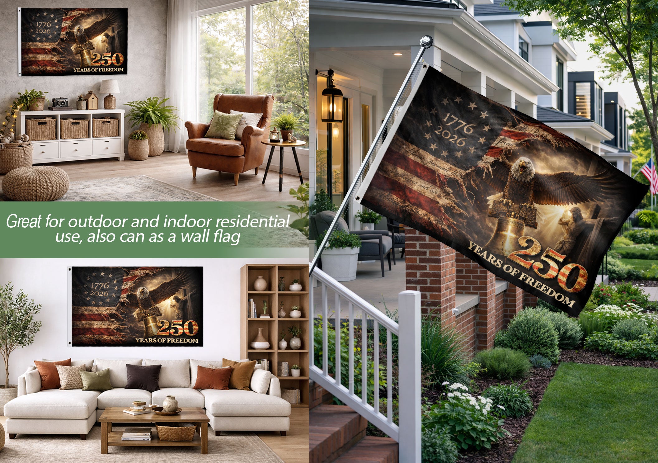 250 Years of Freedom House Flag 1776-2026 Patriotic Eagle Liberty Bell Design