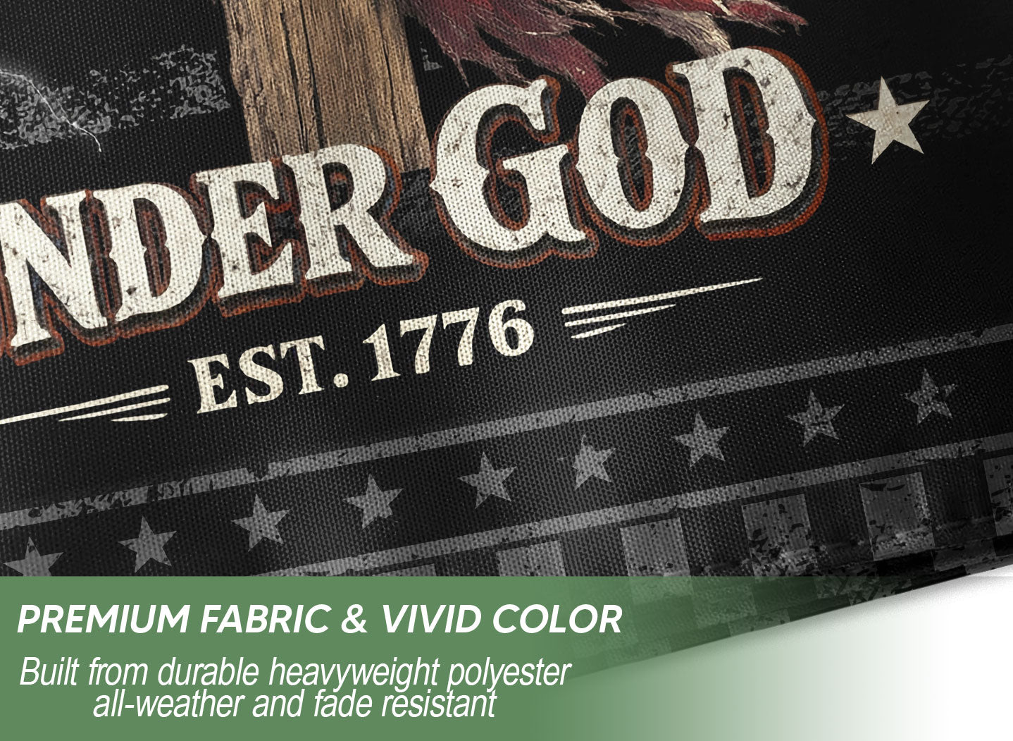 Celebrate 250 years of American freedom with this double-sided house flag featuring ‘One Nation Under God,’ a striking eagle, cross, and ‘We The People’ patriotic elements. Crafted for durability, this faith and freedom decor is perfect for yards, gardens, porches, or any outdoor space. The bold design honors enduring national values and makes a powerful statement of patriotism and spirituality. Easy to hang and weather-resistant for long-lasting display.