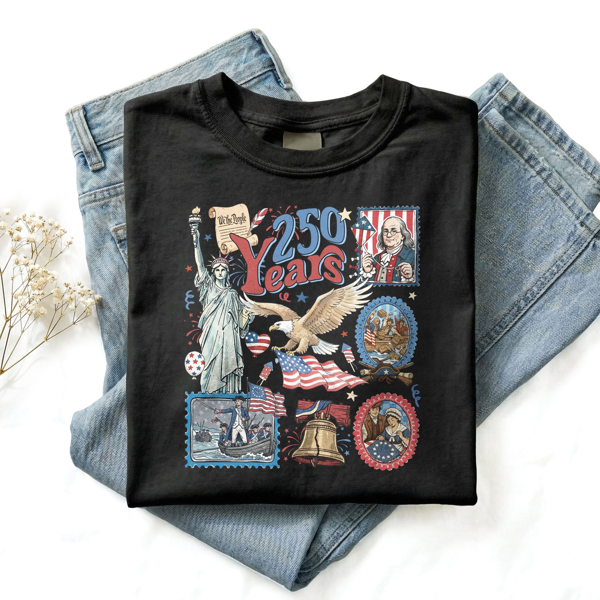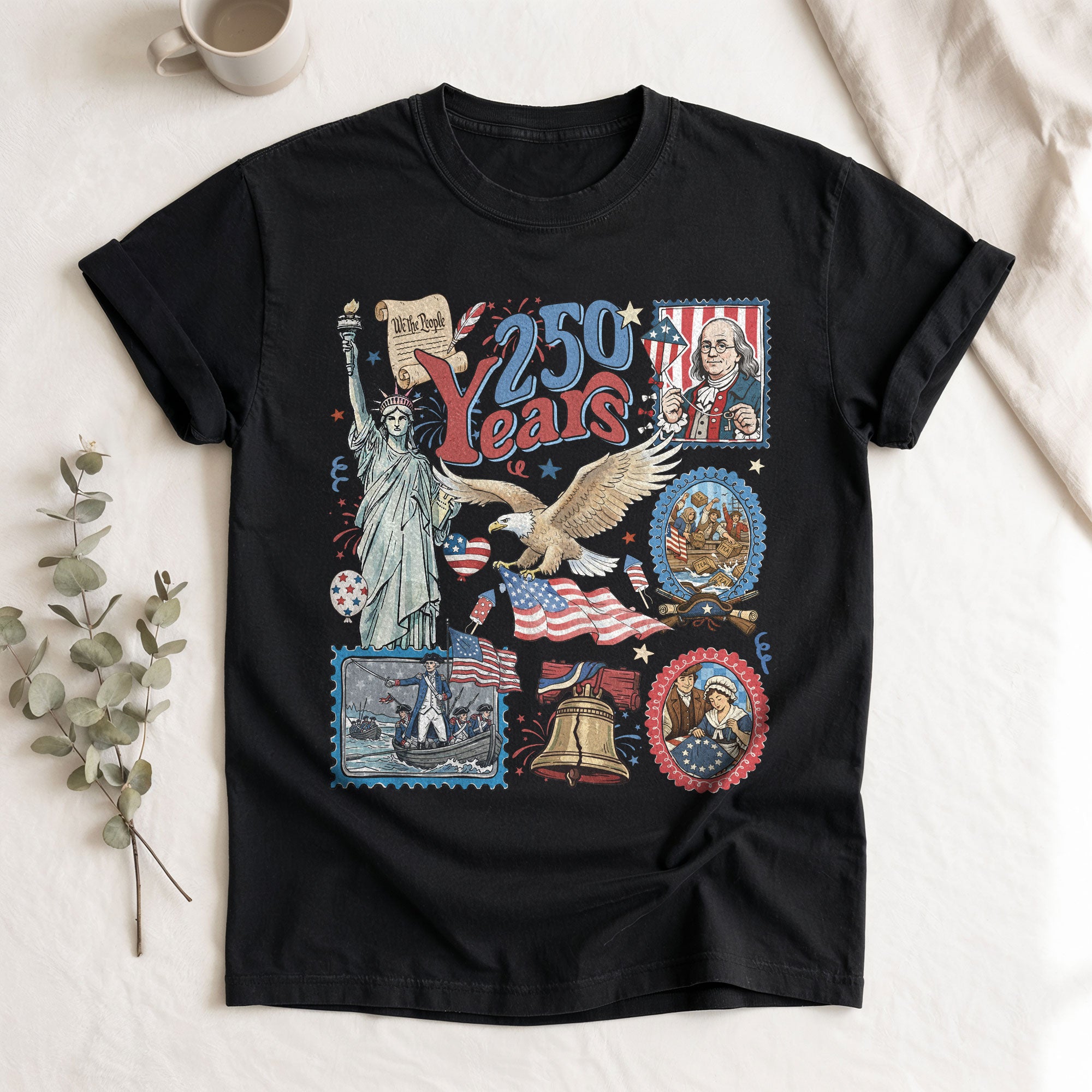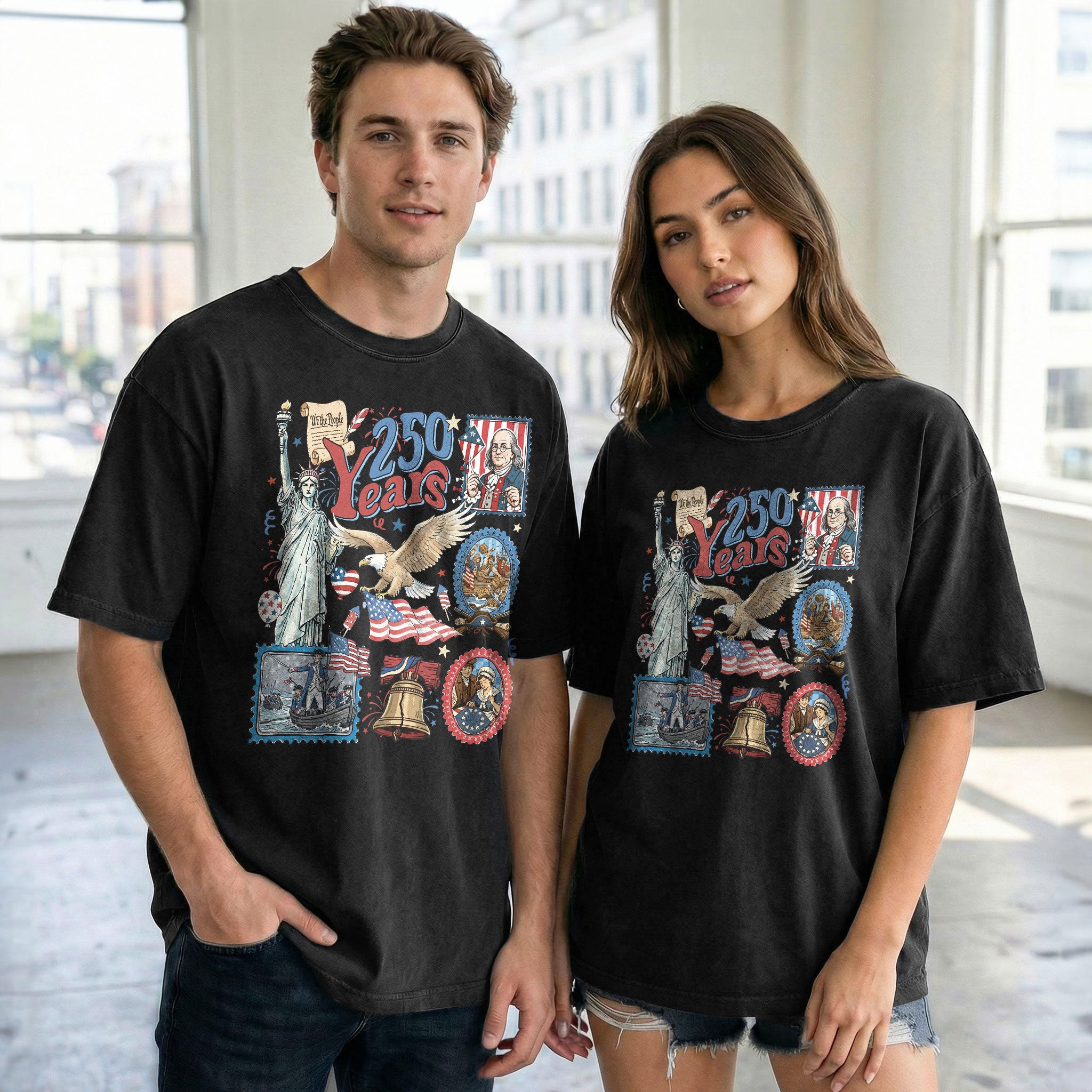 Celebrate America’s 250th anniversary from 1776 to 2026 with this groovy vintage patriotic T-shirt. Featuring a retro-inspired design that captures the spirit of Independence Day, national pride, unity, and the enduring promise of freedom. Perfect for patriots, history enthusiasts, and Fourth of July events. Crafted from soft, comfortable cotton for all-day wear. Ideal for barbecues, parades, fireworks shows, or everyday patriotic expression. Show your American spirit in style with this statement tee that blends groovy 70s vibes with timeless USA symbolism.