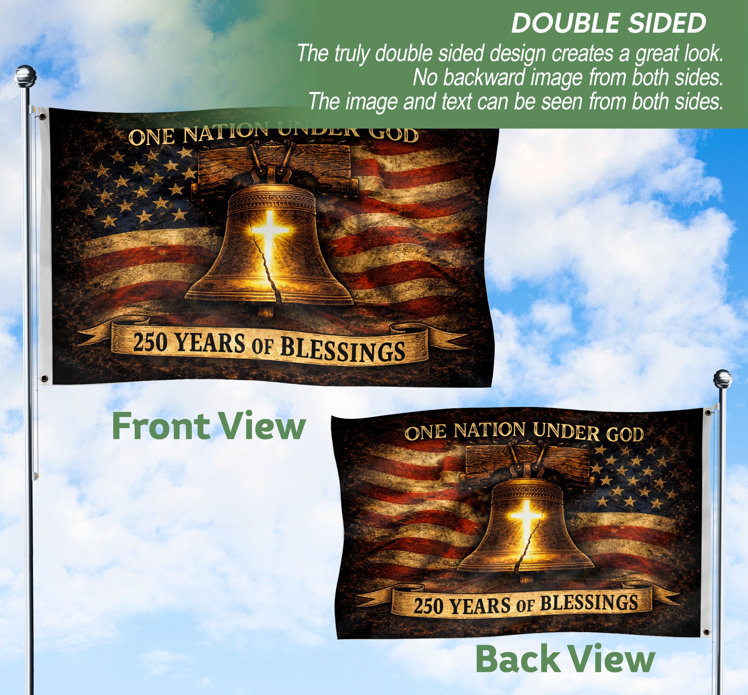 One Nation Under God 250th Anniversary American Flag with Cross 1776-2026 Patriotic Banner