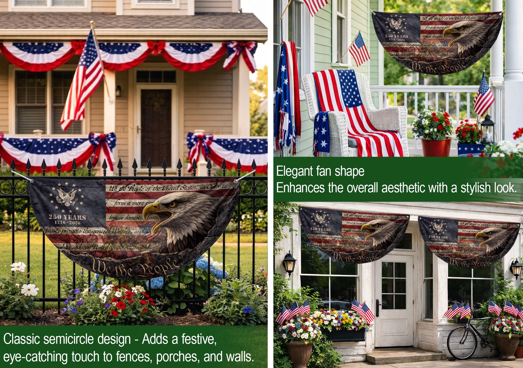 250th Anniversary USA Fence Flag 1776-2026 Eagle Patriotic American Decor