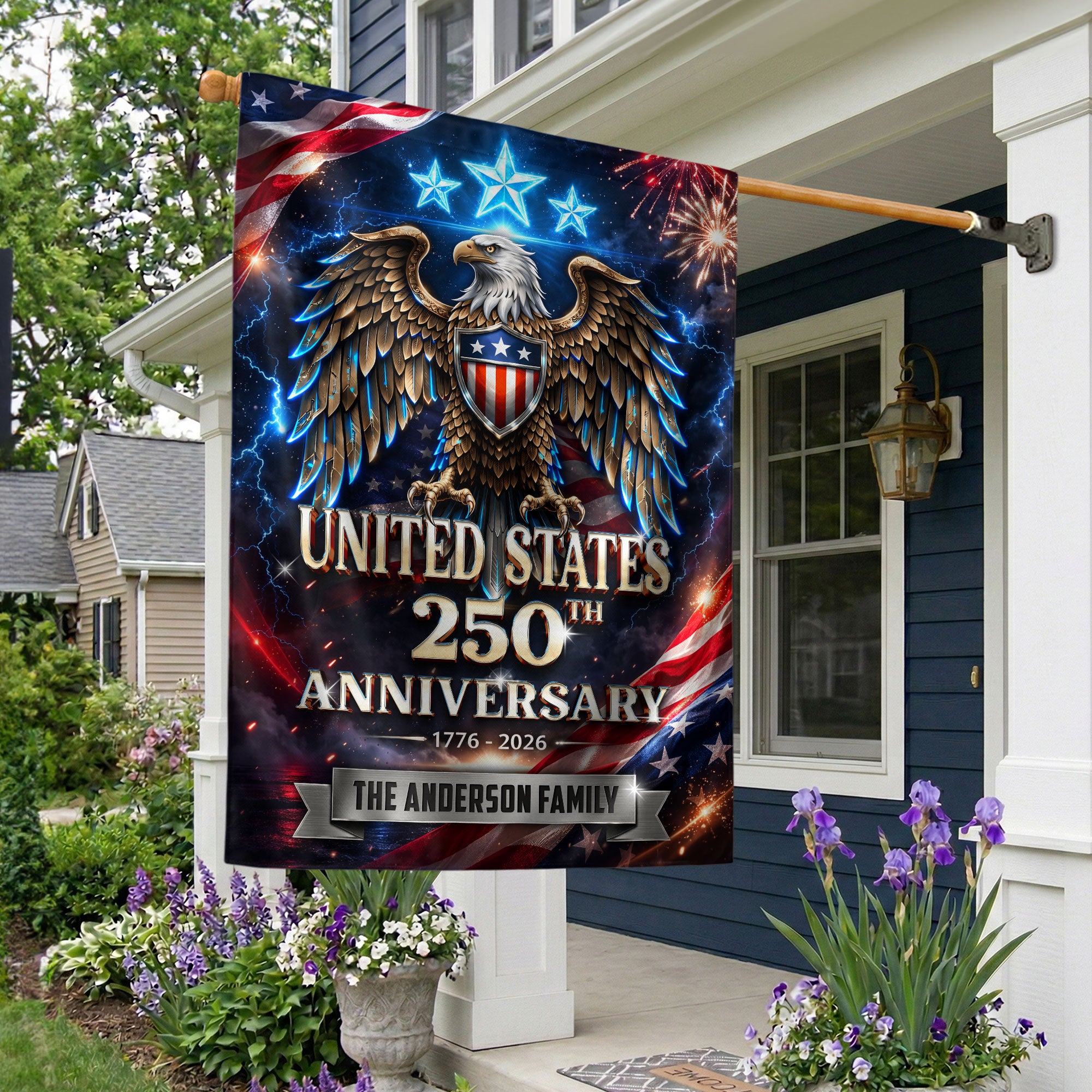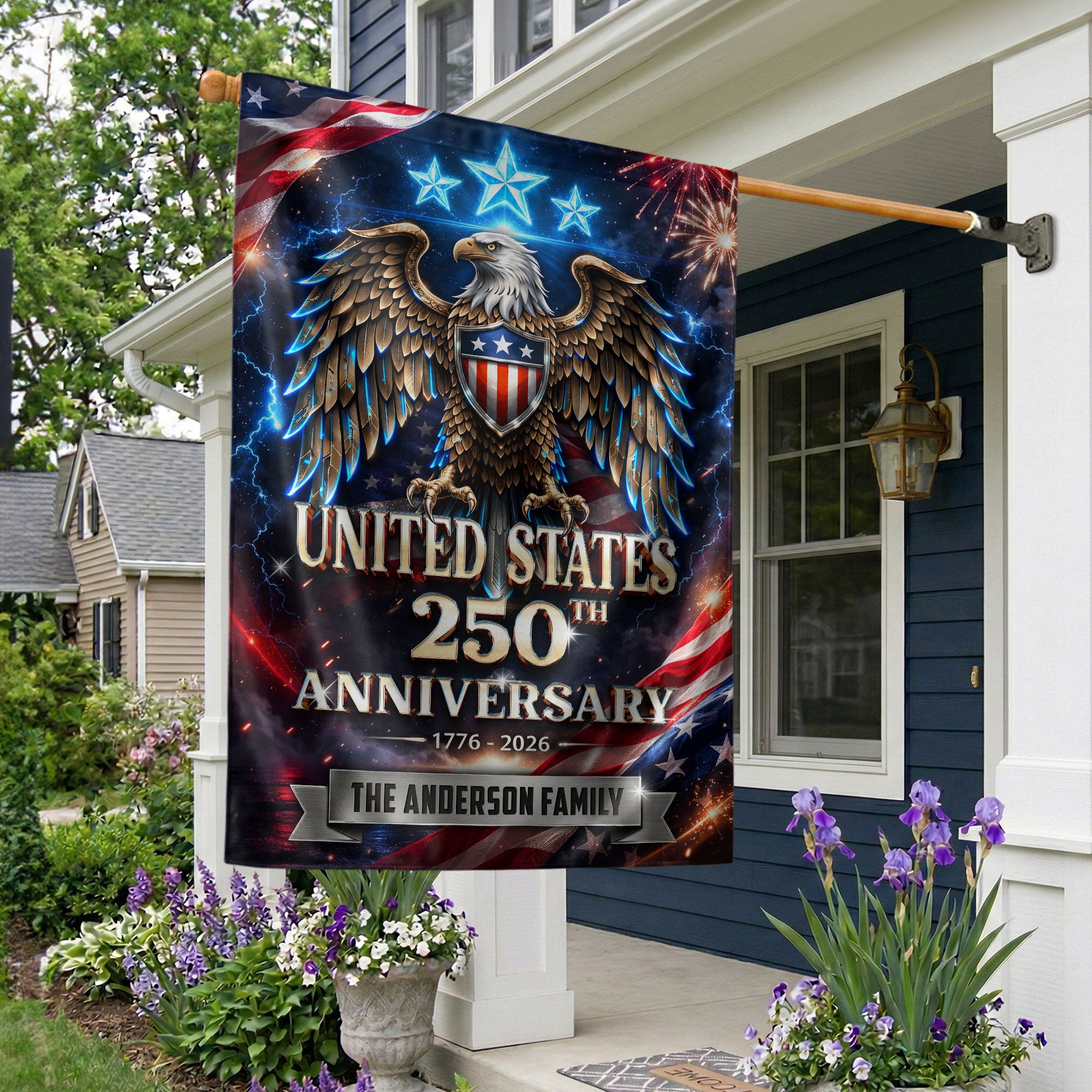 250th Anniversary USA Garden Flag Custom Family Name Eagle Stars 1776-2026