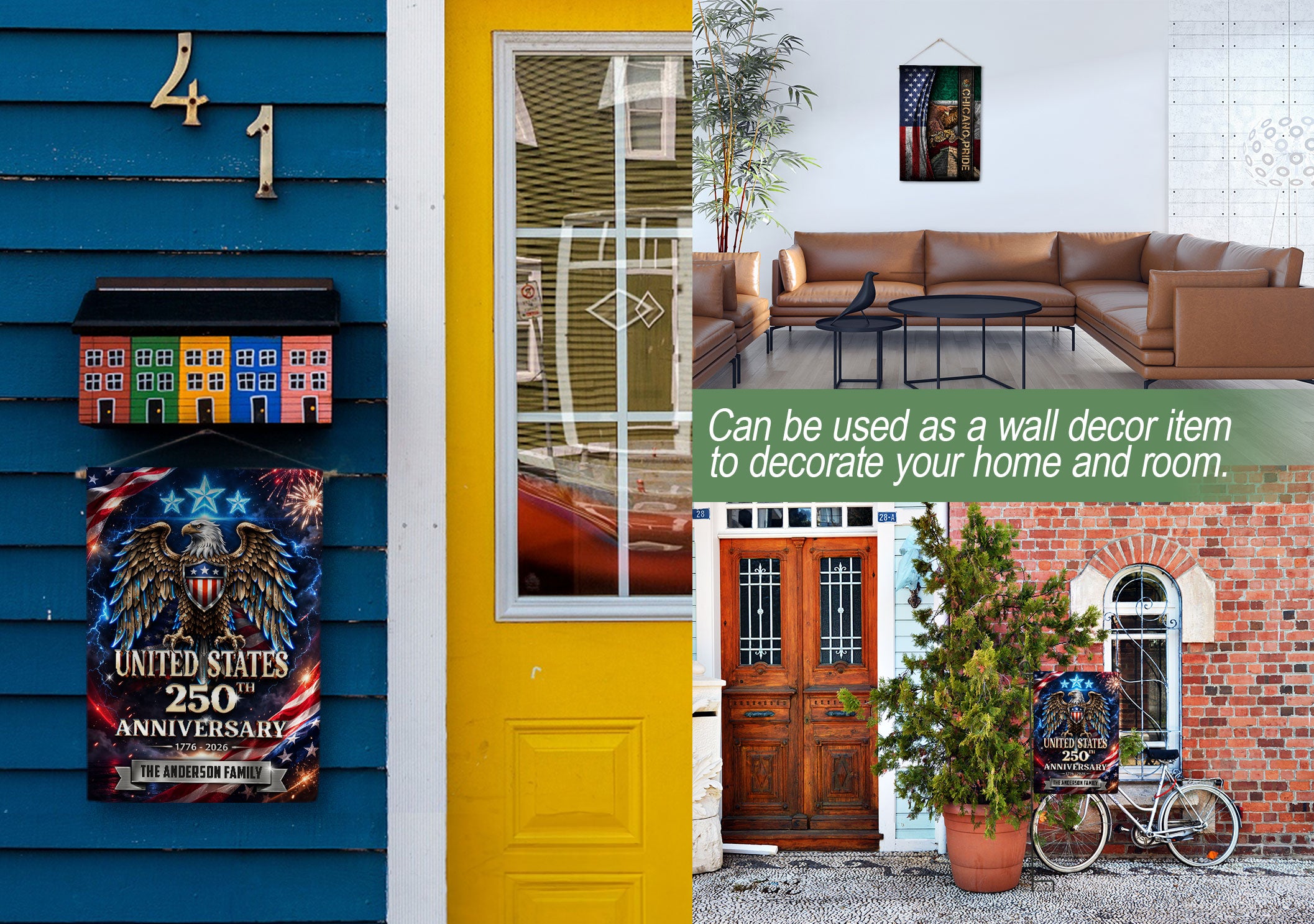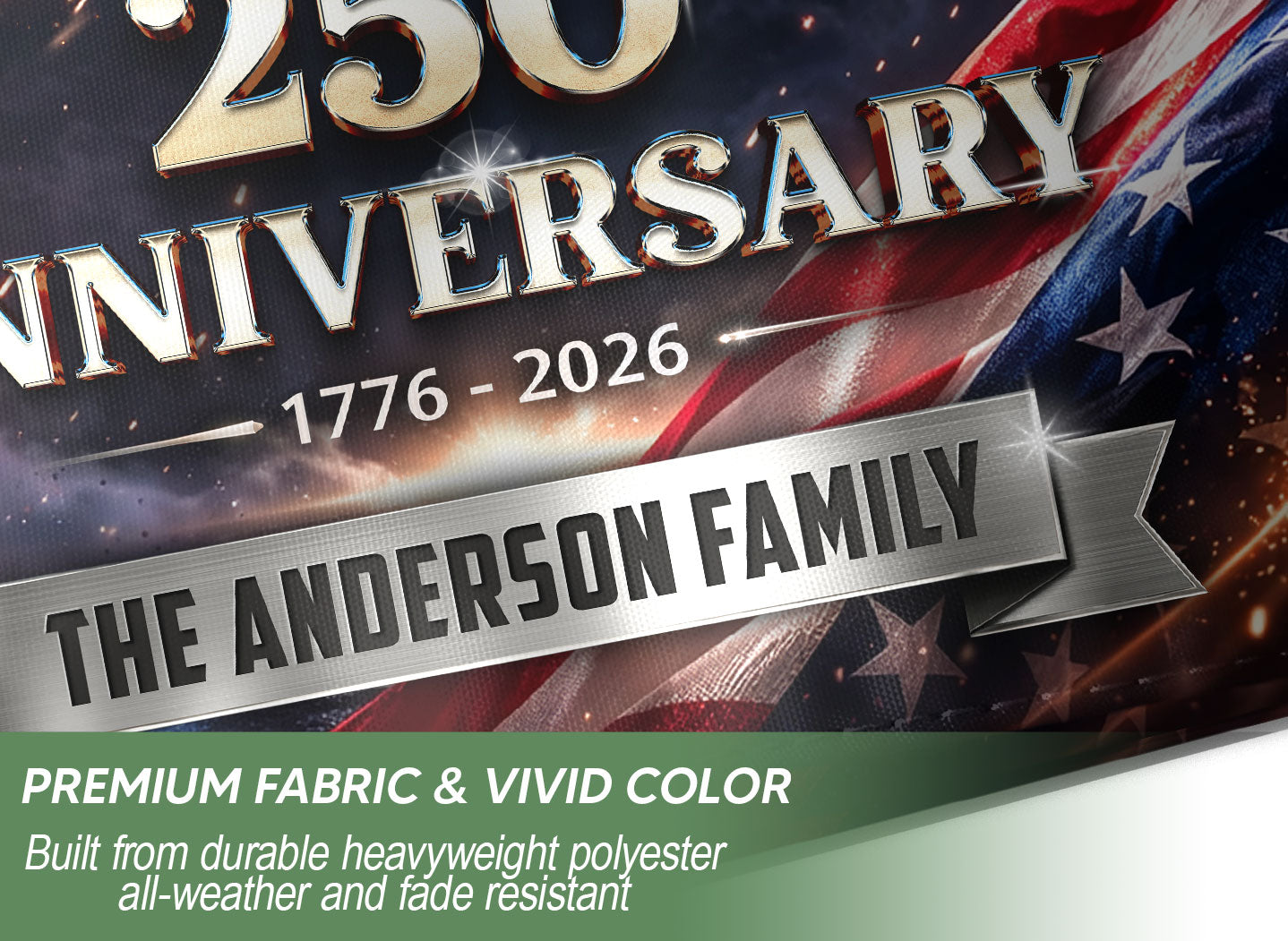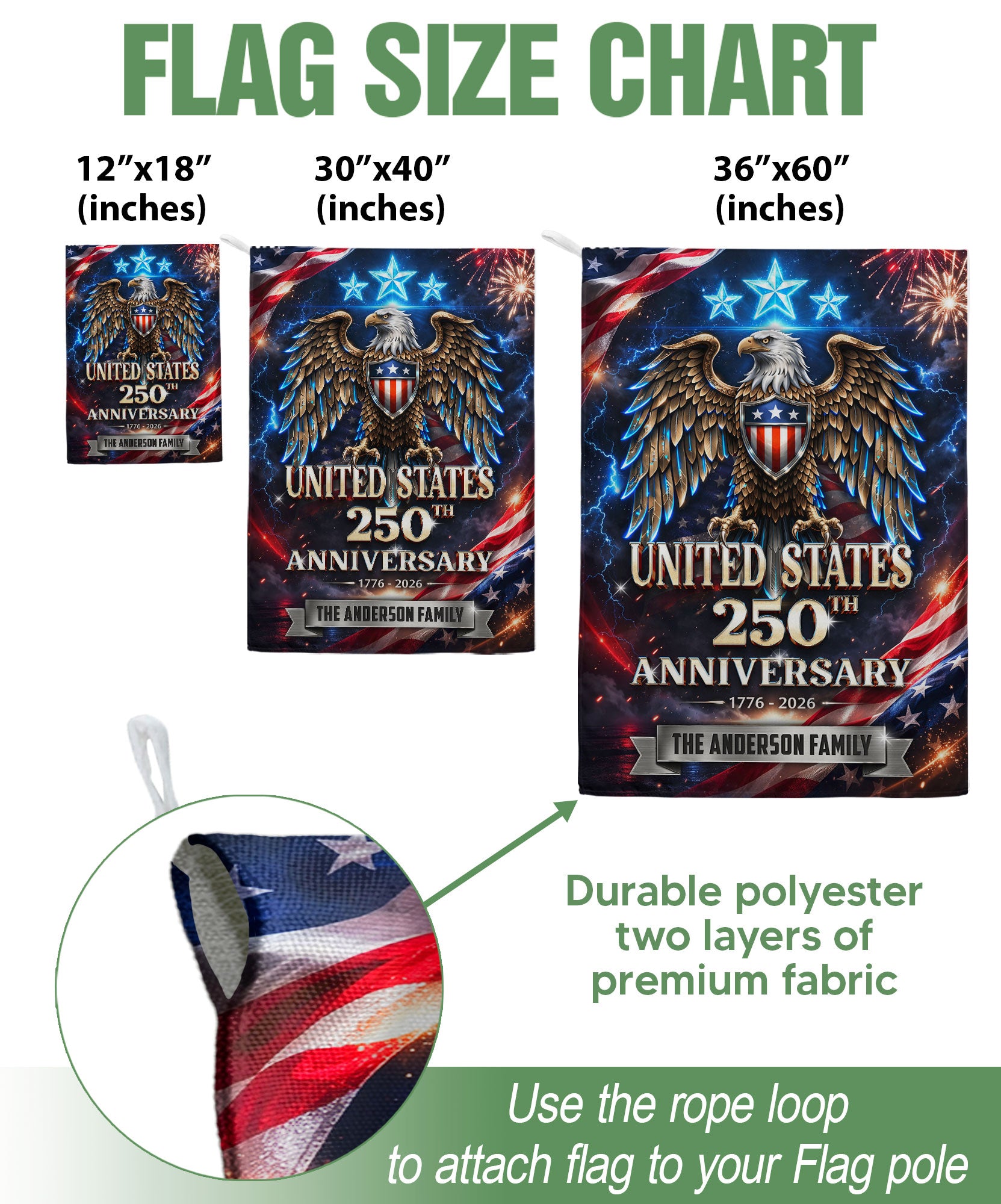 Celebrate America’s 250th anniversary from 1776 to 2026 with this custom garden flag featuring your family name, a majestic eagle, three stars, and vibrant American flag elements. Crafted for outdoor display, this patriotic flag captures the spirit of freedom and independence. Perfect for gardens, porches, mailboxes, or as a family gift to honor this historic milestone. Durable polyester material withstands weather, double-sided printing ensures visibility from all angles. Personalize with your surname for a unique touch.