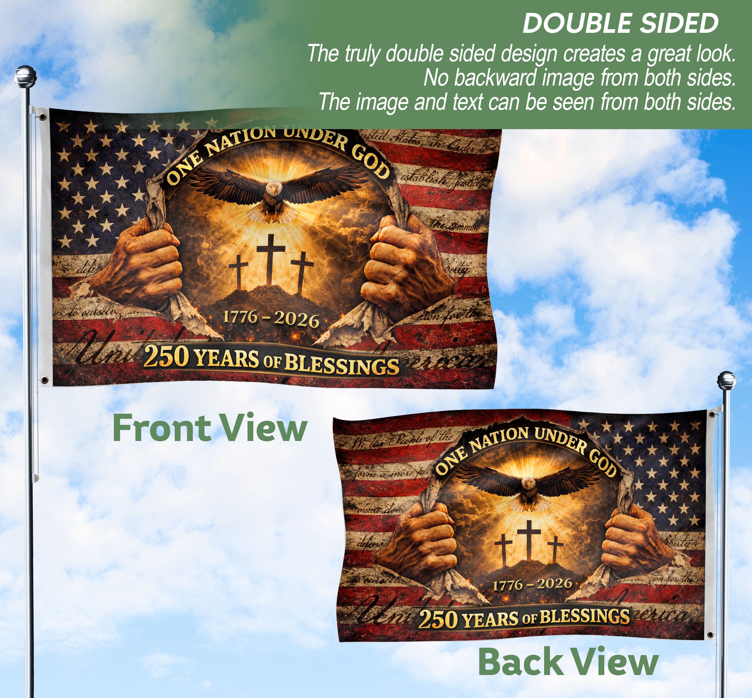 250 Years of Blessings Christian Flag 1776-2026 Eagle Liberty Bell Double Sided Patriotic House Flag