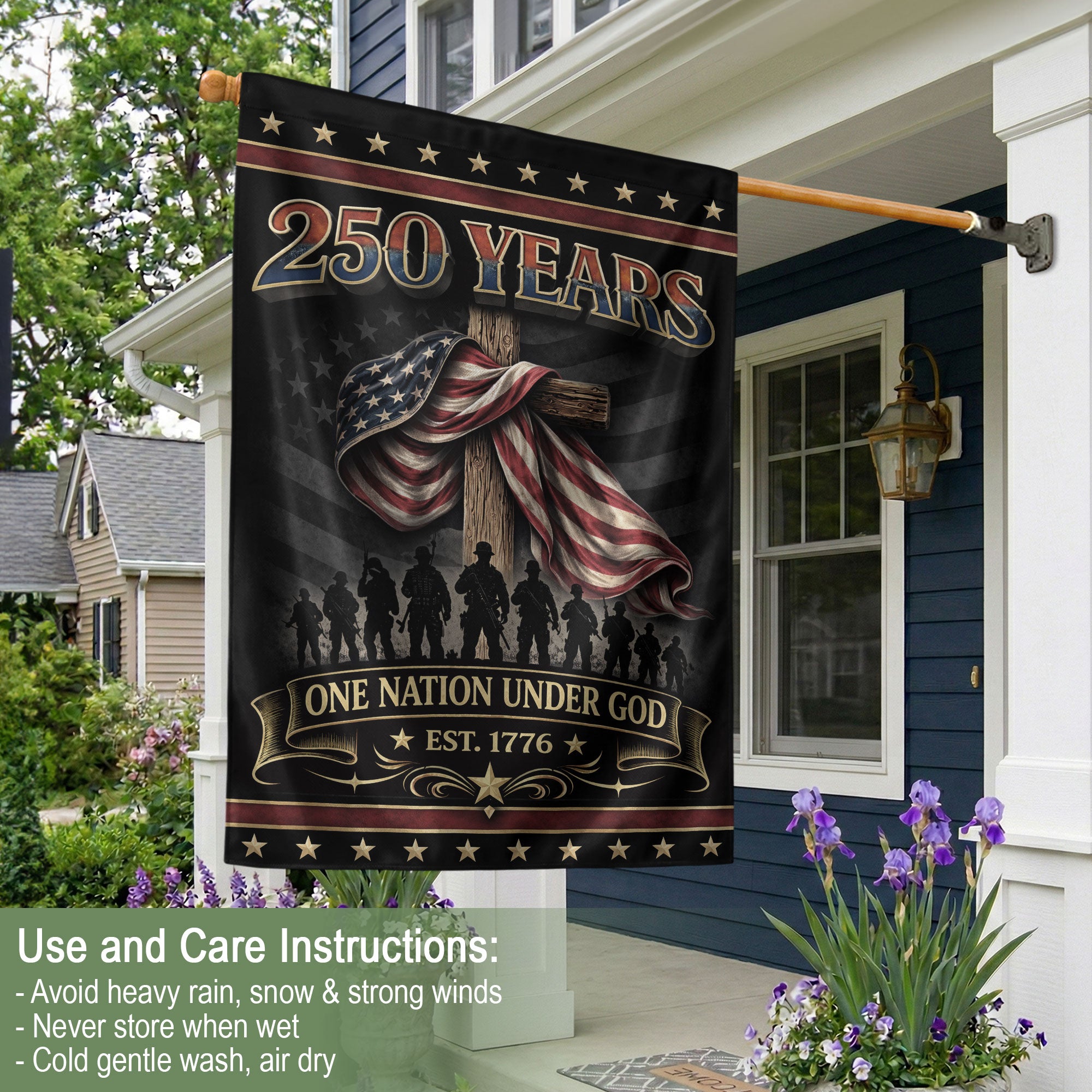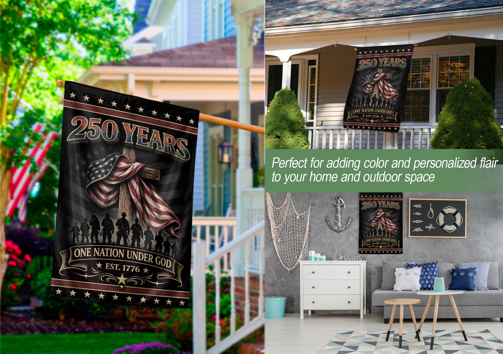 250th Anniversary USA Patriotic House Flag – One Nation Under God We The People Cross Double-Sided