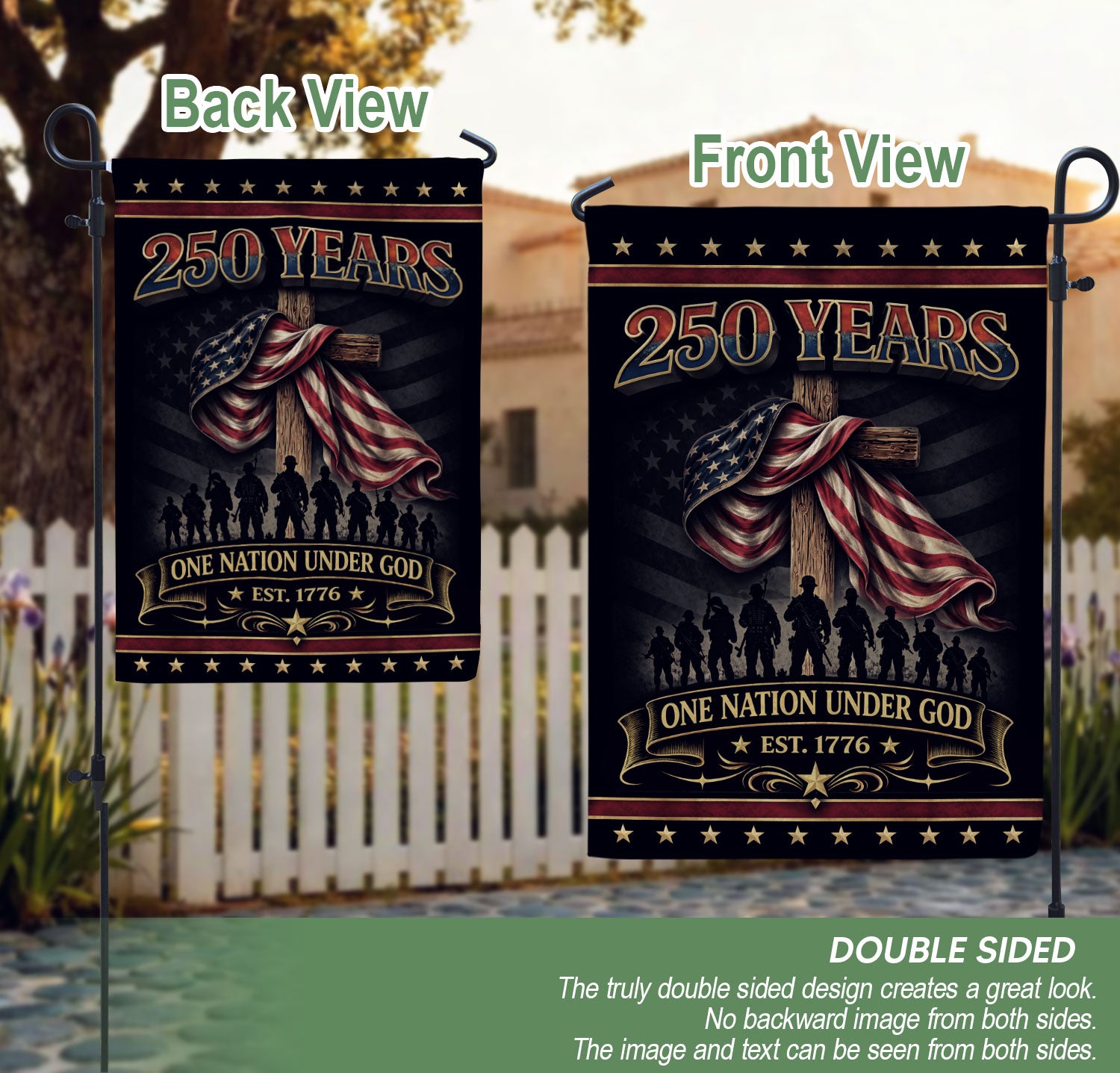 One Nation Under God 250 Years Flag 1776-2026 Eagle Cross Christian Double Sided USA House Flag