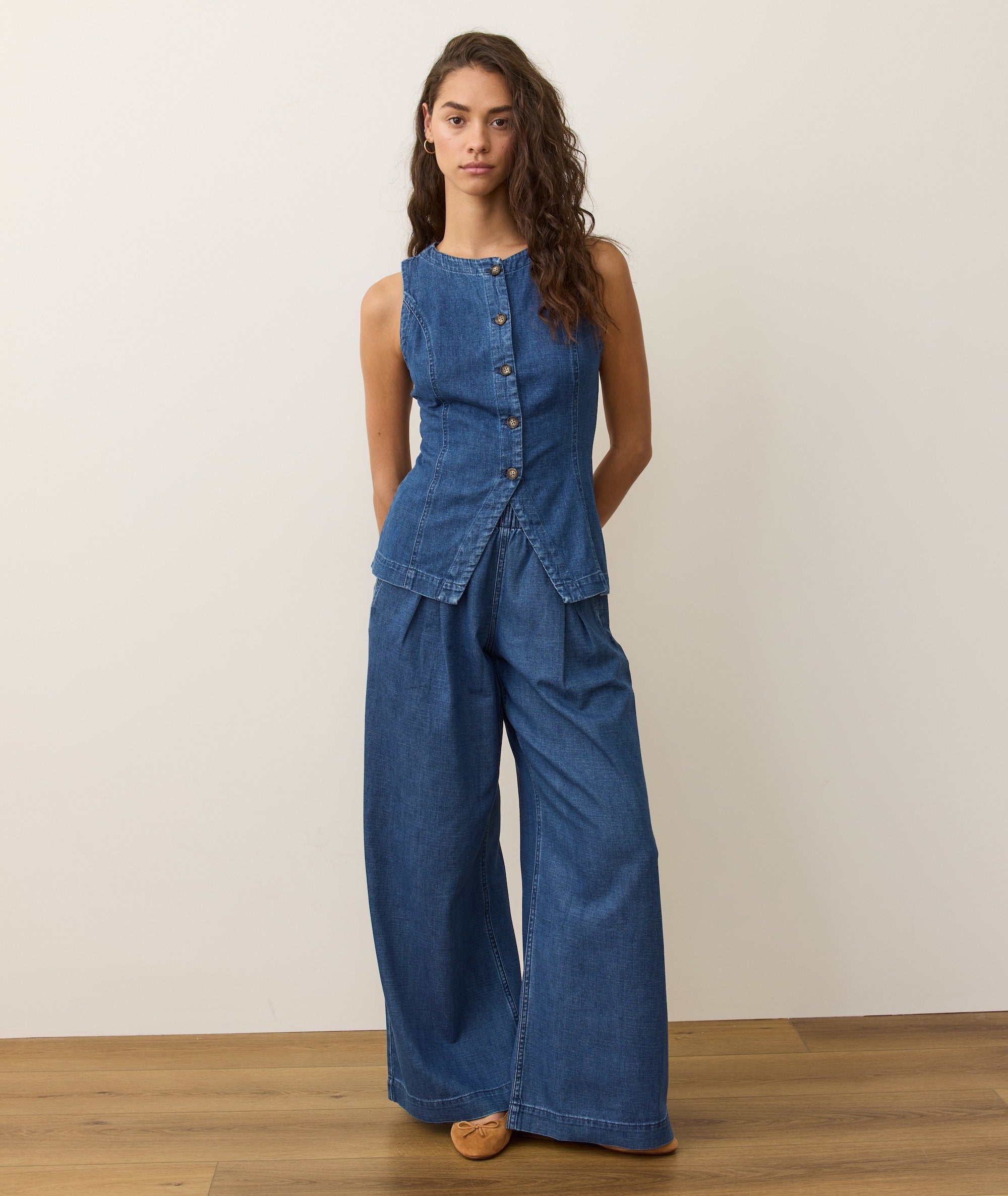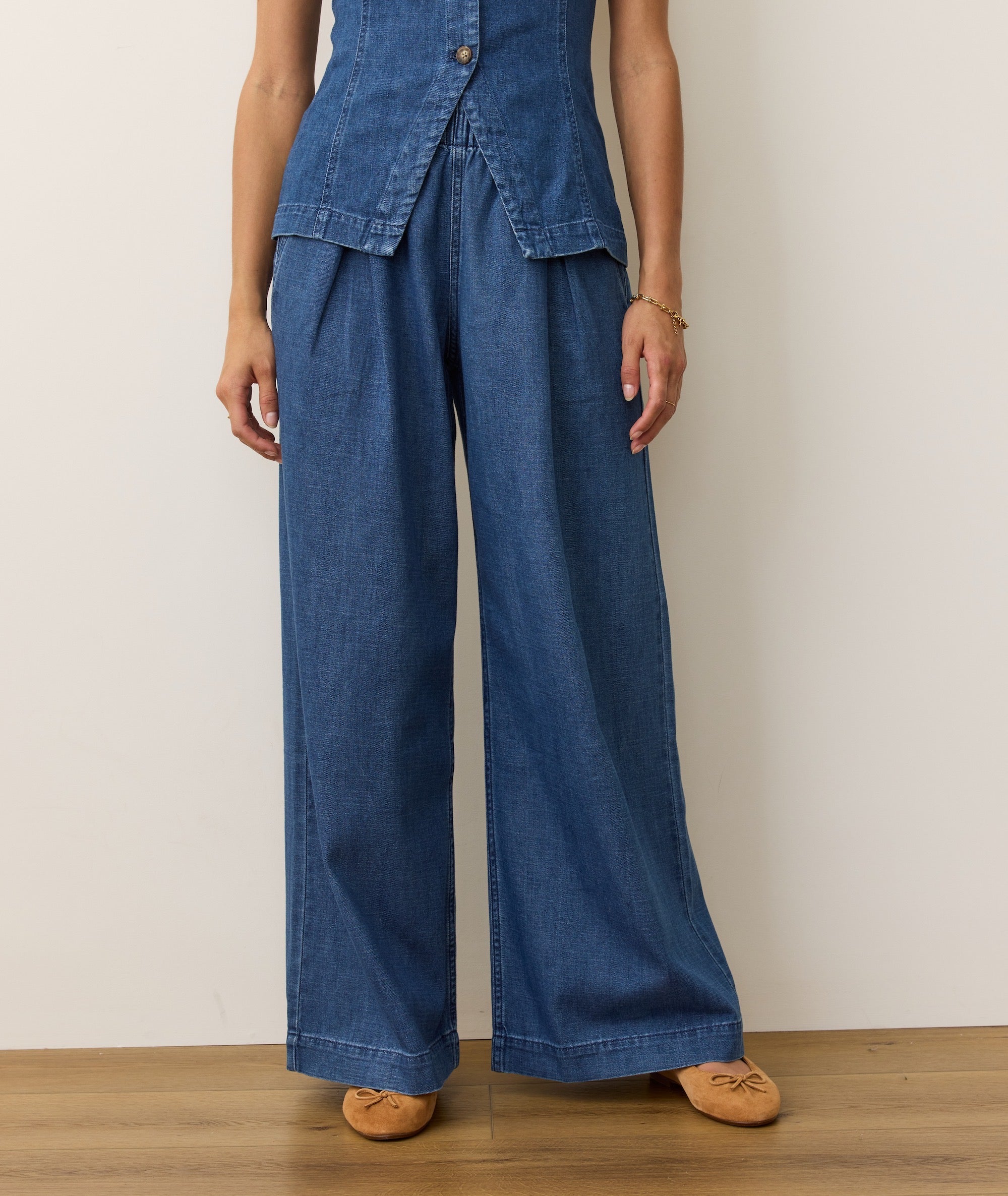 Allison Pleated Wide Leg Denim Trouser