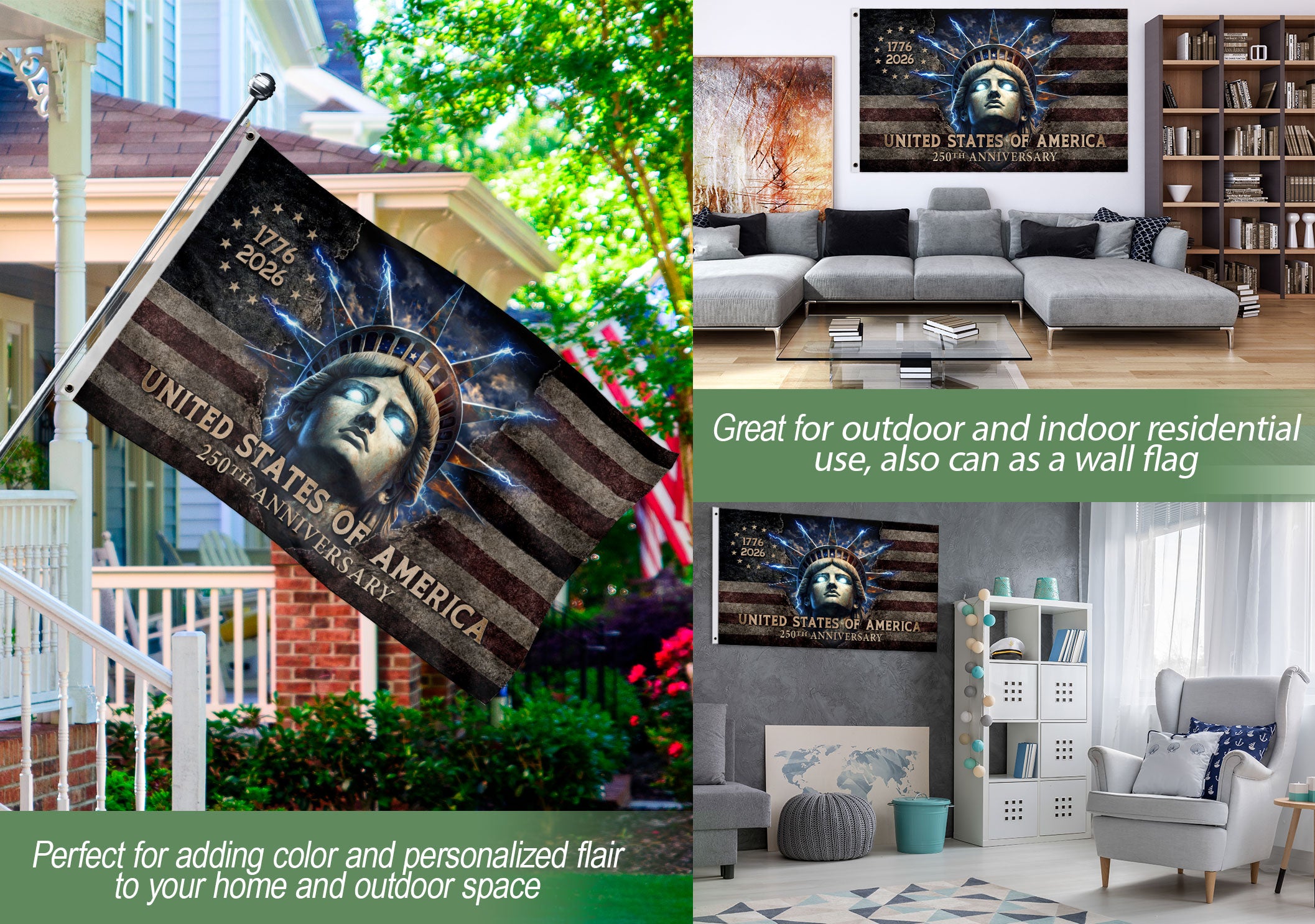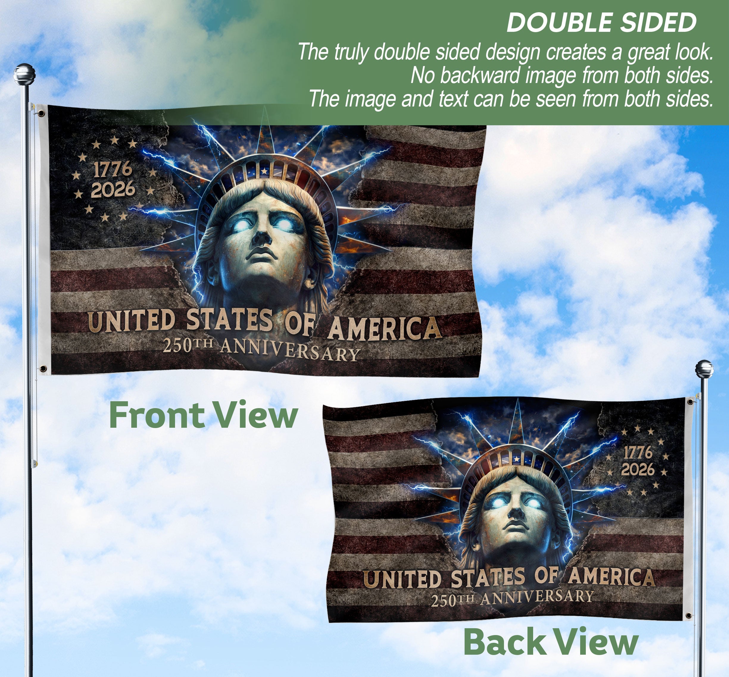 America 250th Anniversary 1776-2026 Lady Liberty Glowing Eyes Double-Sided House Flag