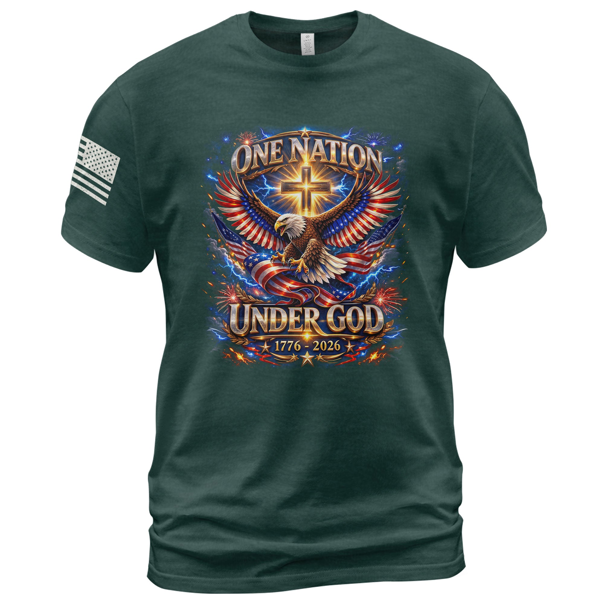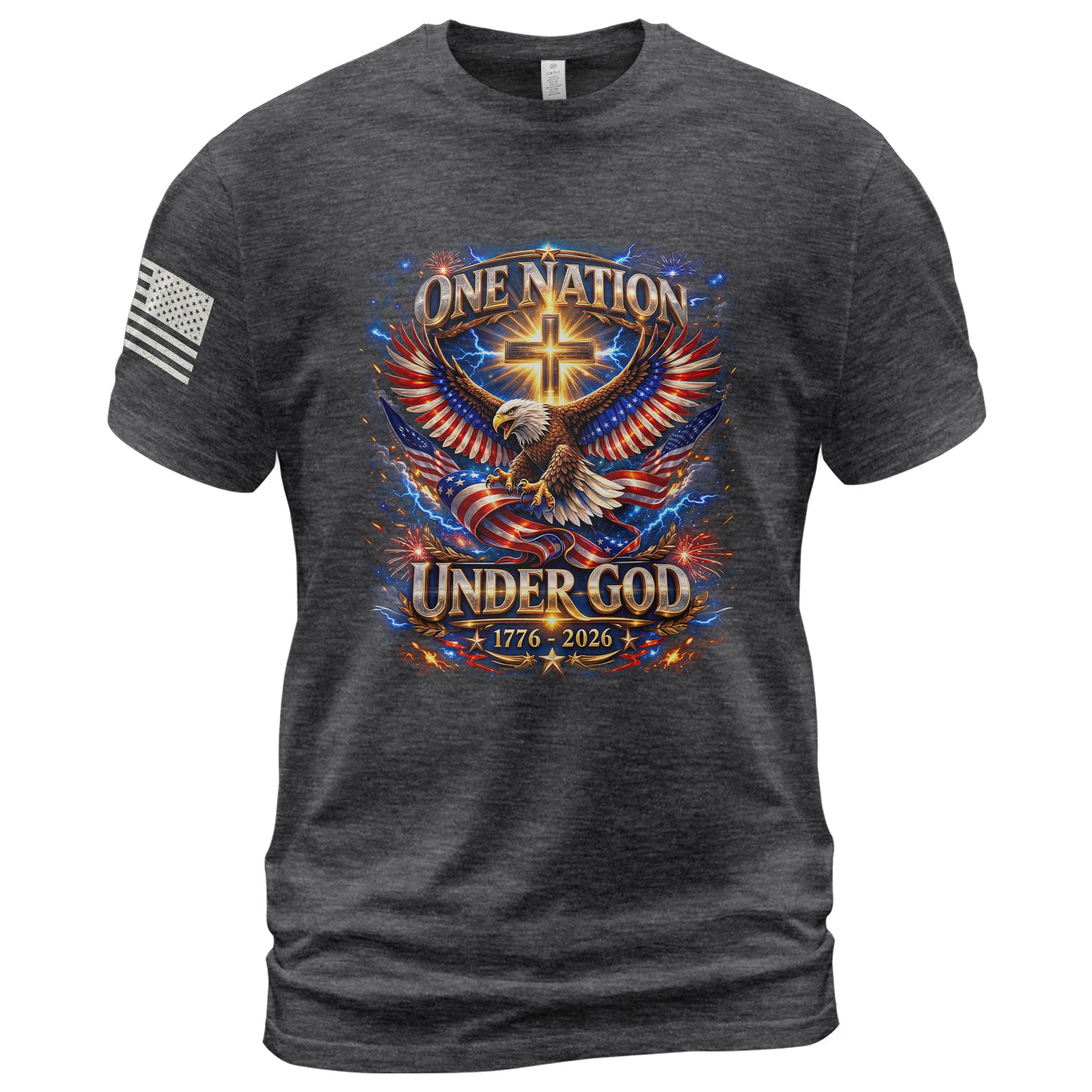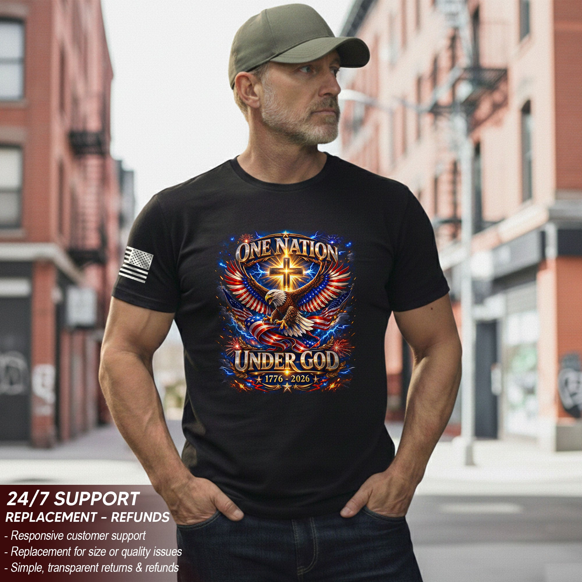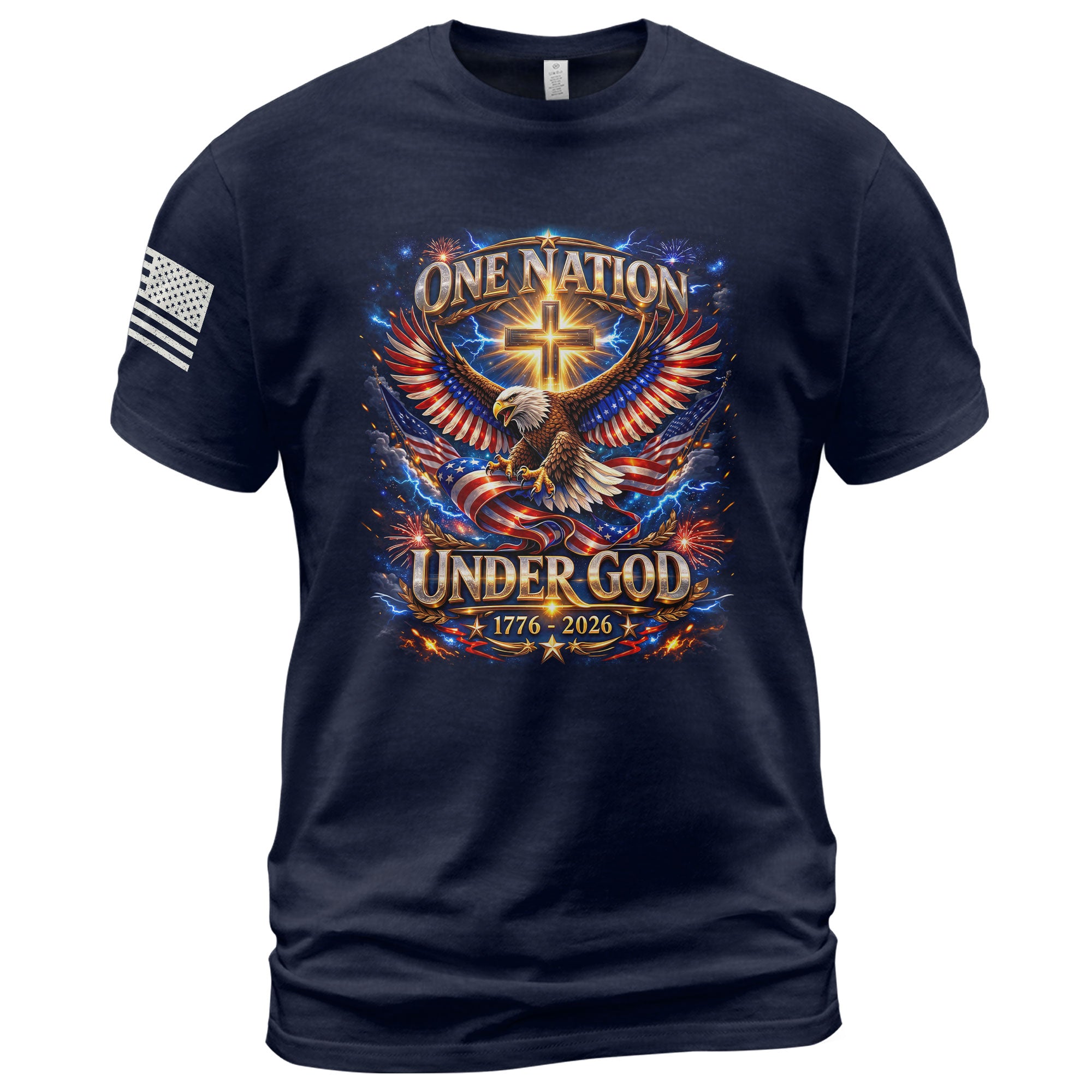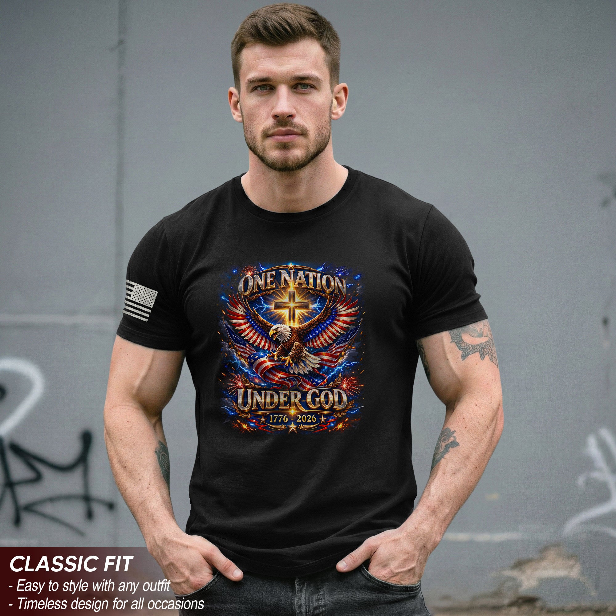 America 250th Anniversary 1776-2026 T-Shirt USA Eagle Cross Flag One Nation Under God Patriotic Tee