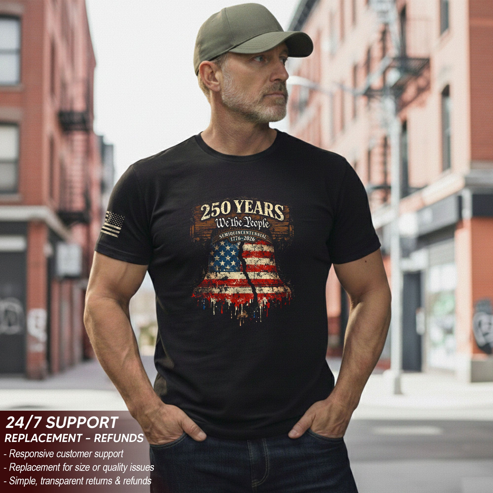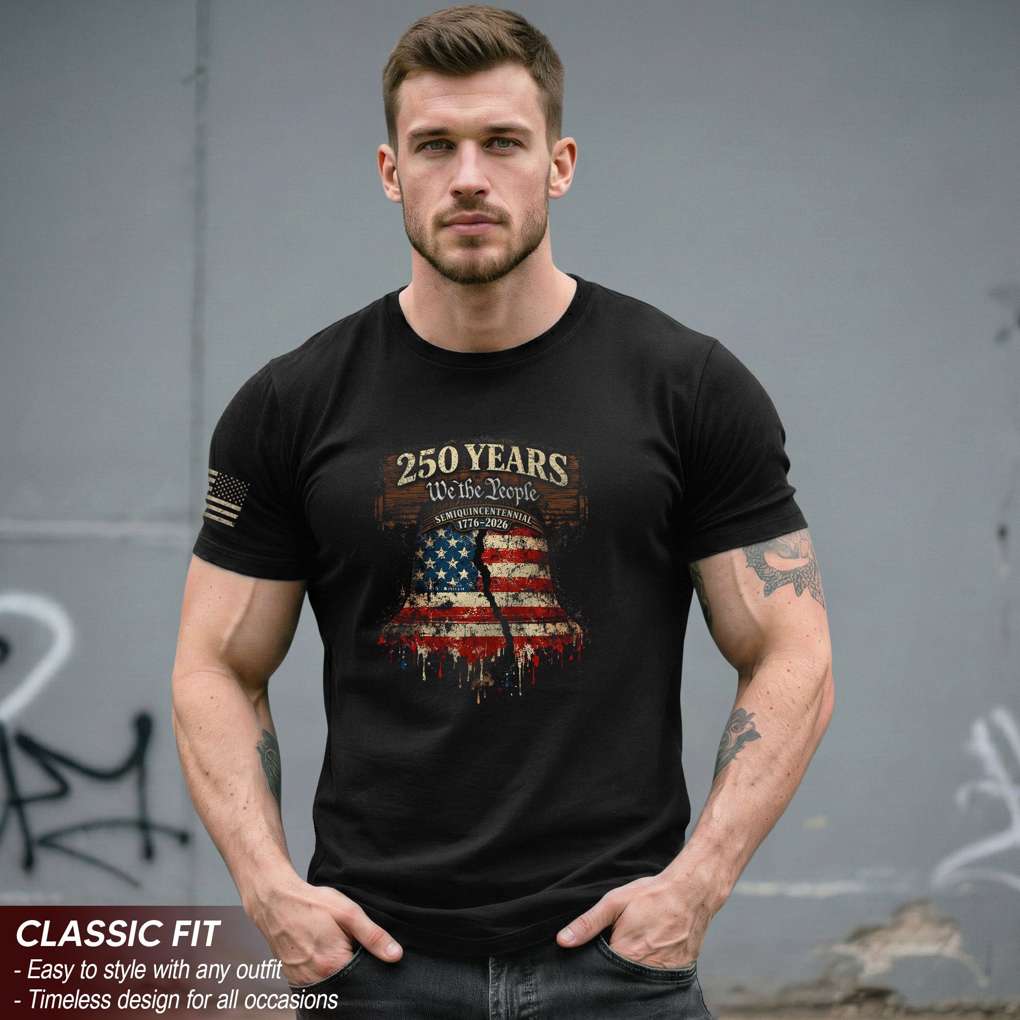 Celebrate America’s 250th anniversary from 1776 to 2026 with this patriotic T-shirt featuring the iconic ‘We The People’ slogan and the historic Liberty Bell. Crafted for comfort and style, this tee honors the nation’s founding spirit, independence, unity, and constitutional pride. Perfect for patriots, history enthusiasts, Fourth of July events, veterans, and anyone proud of American heritage. Made from soft, breathable cotton blend fabric for all-day wear. Available in multiple sizes for men, women, and unisex fit. Ideal for barbecues, parades, rallies, or everyday casual wear. Show your love for the USA with this timeless design that captures 250 years of liberty and freedom.