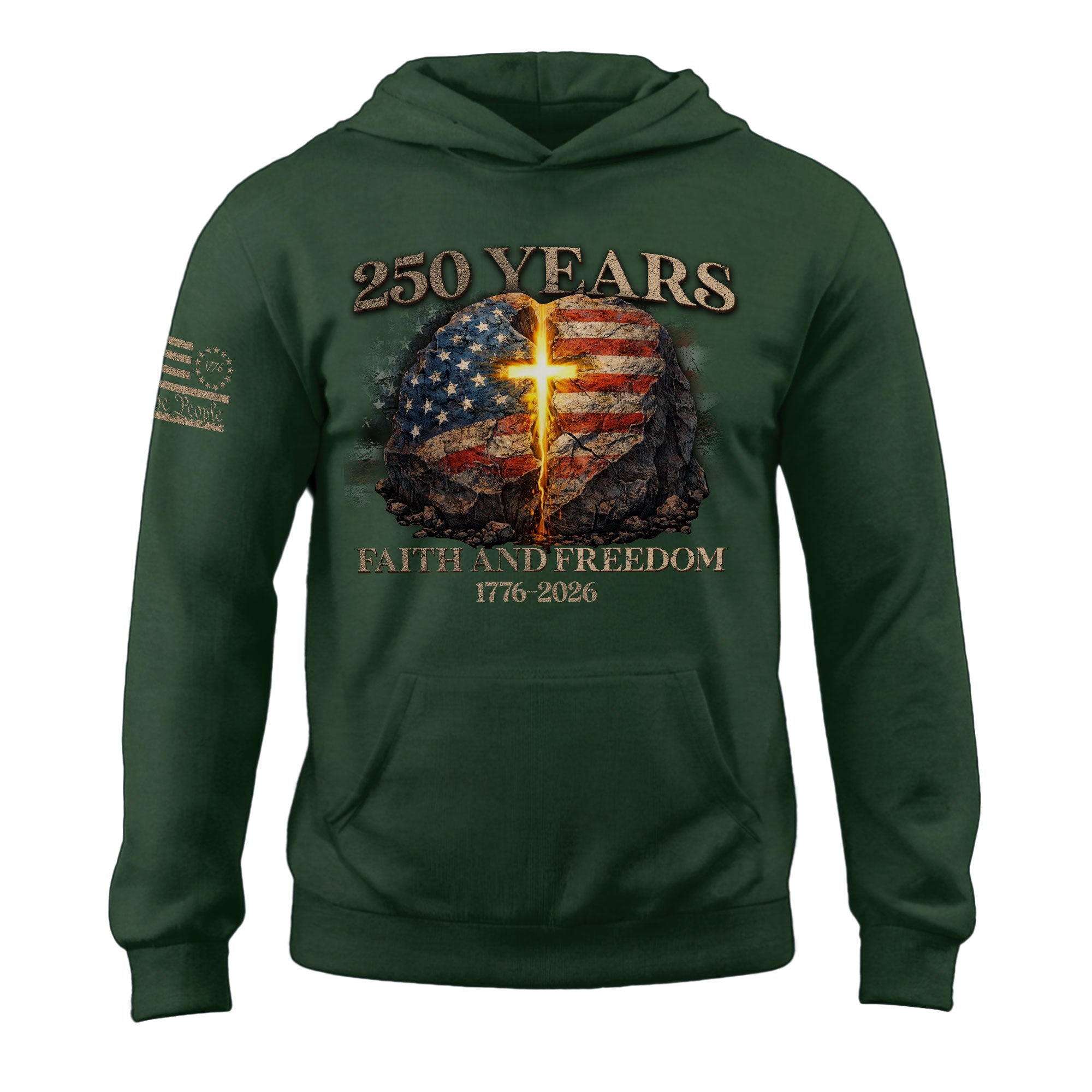 America 250th Anniversary Hoodie 1776-2026 Christian Faith Freedom Cross Flag