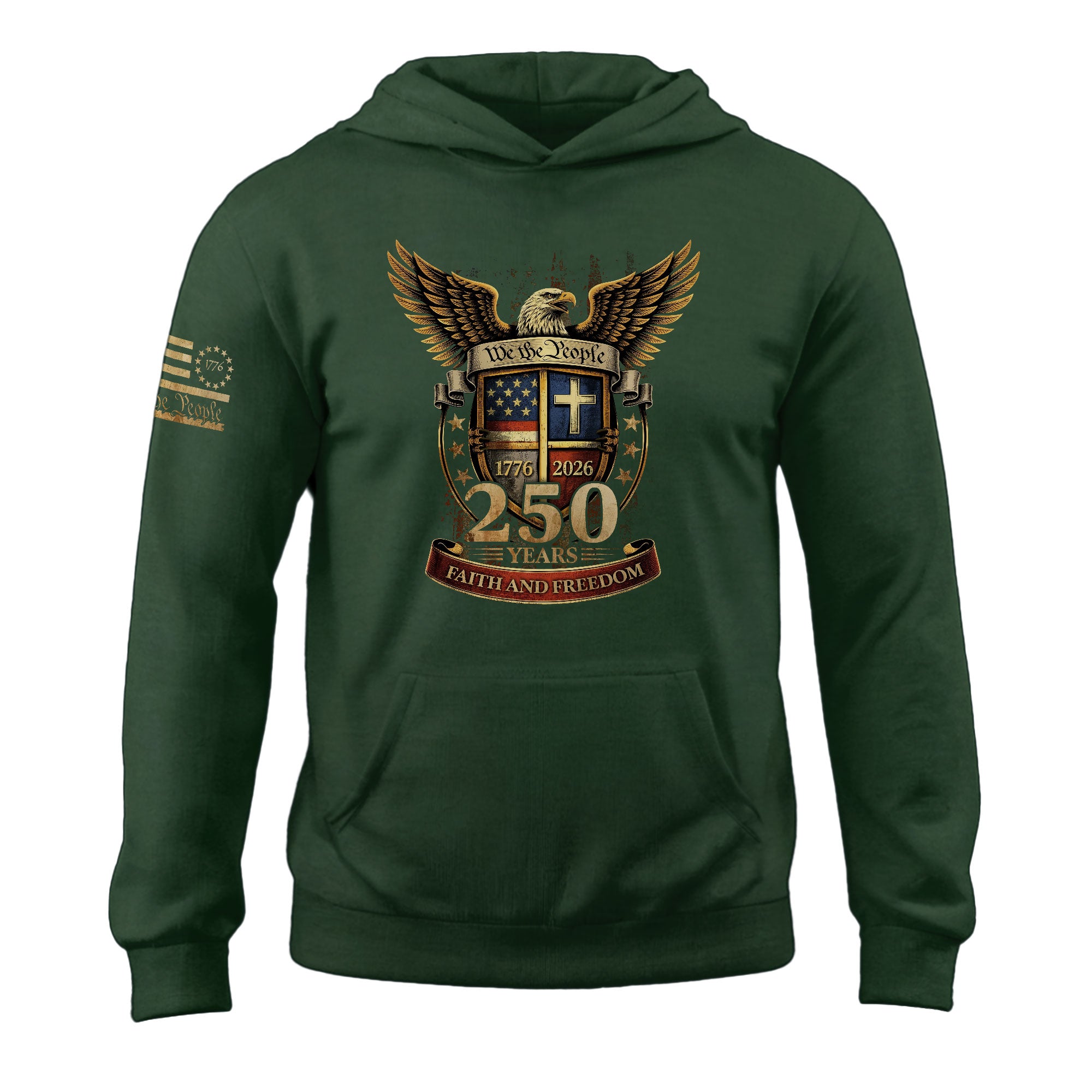 America 250th Anniversary Hoodie 1776-2026 Patriotic Cross Shield Flag