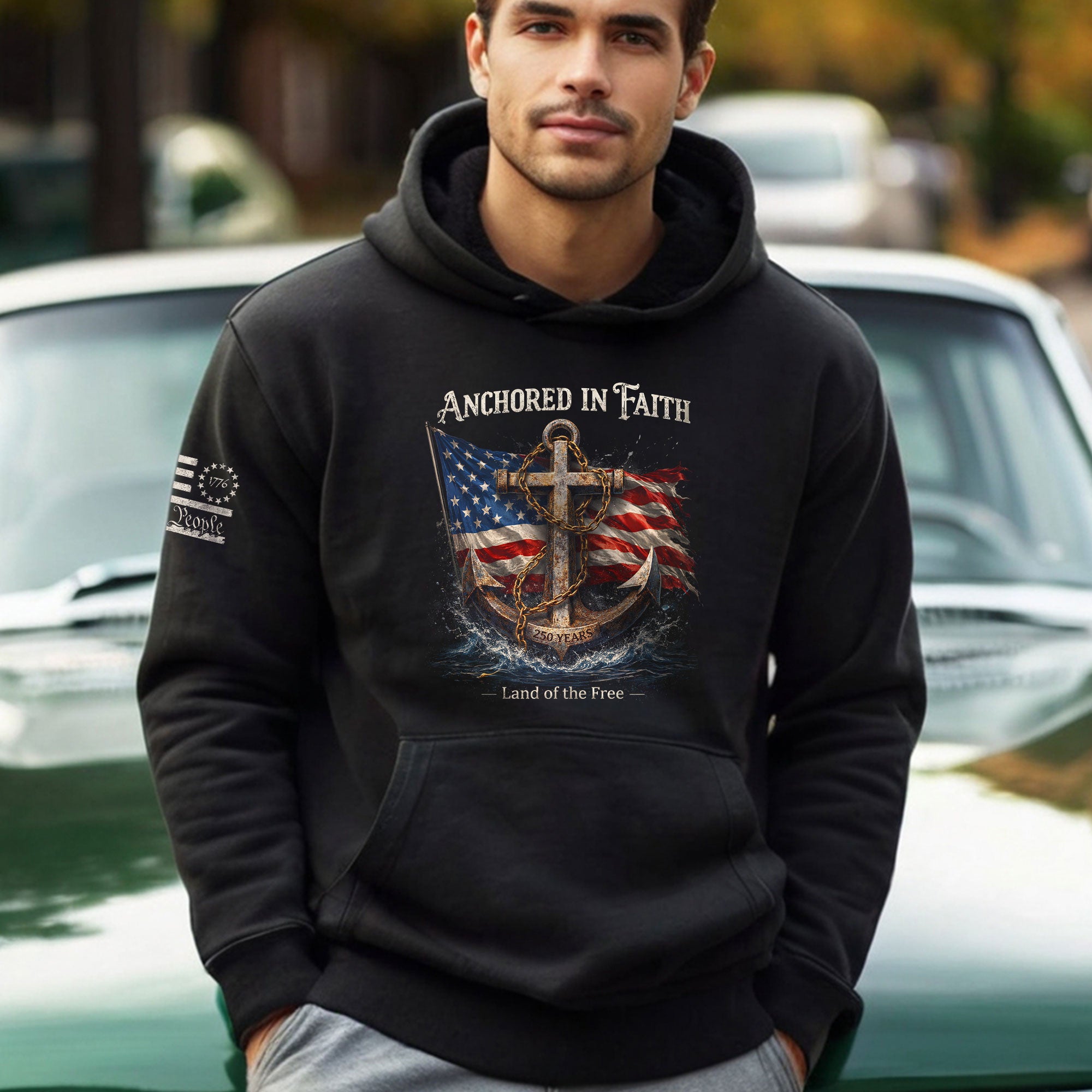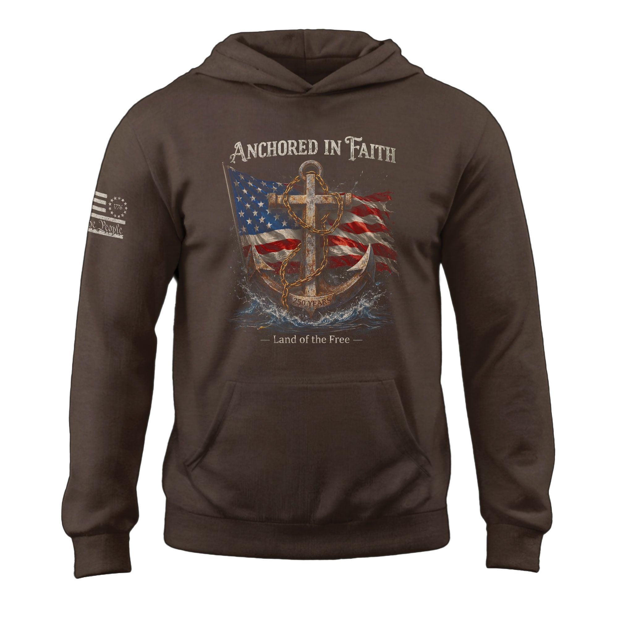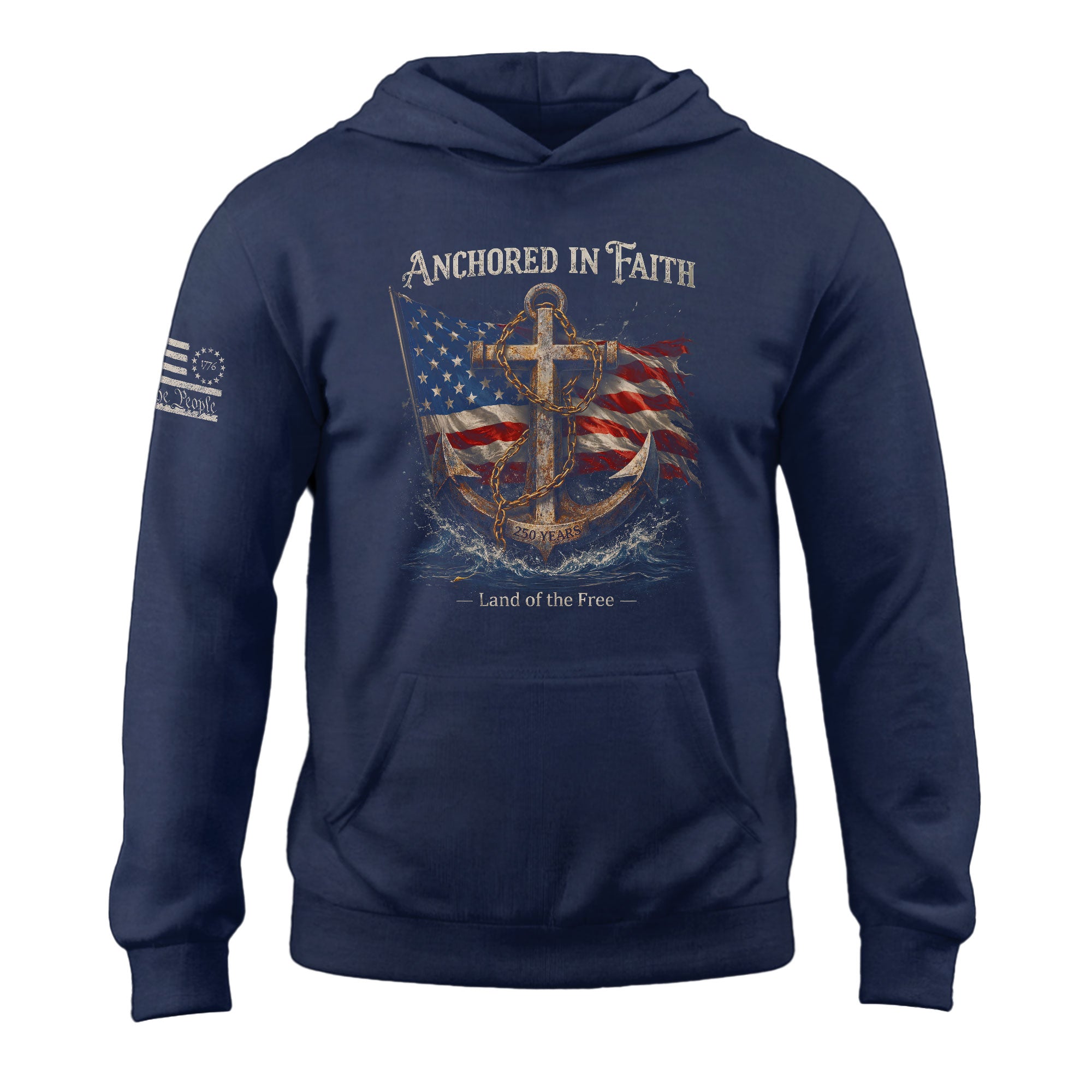 America 250th Anniversary Hoodie 1776-2026 US Flag Anchor Patriotic Faith Design