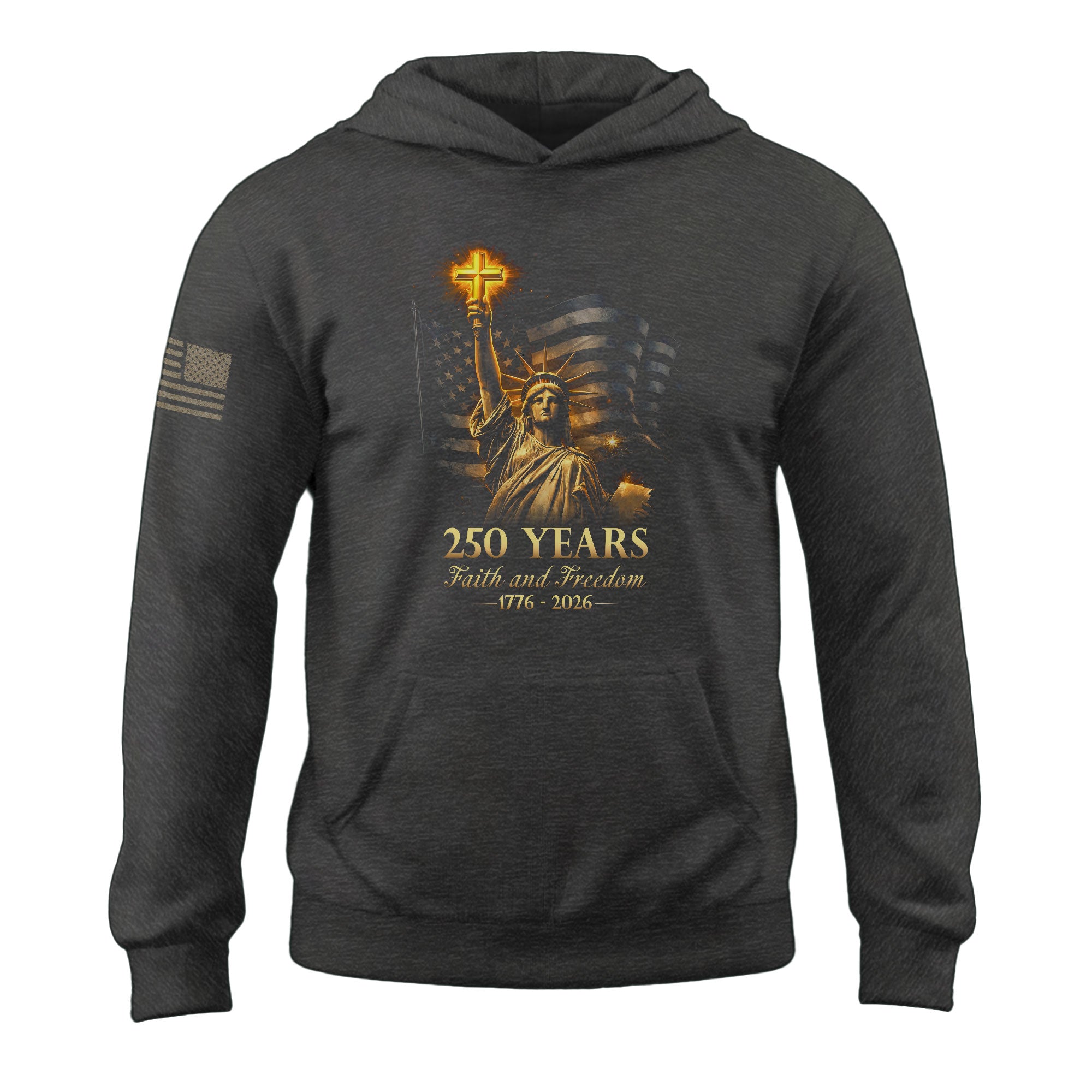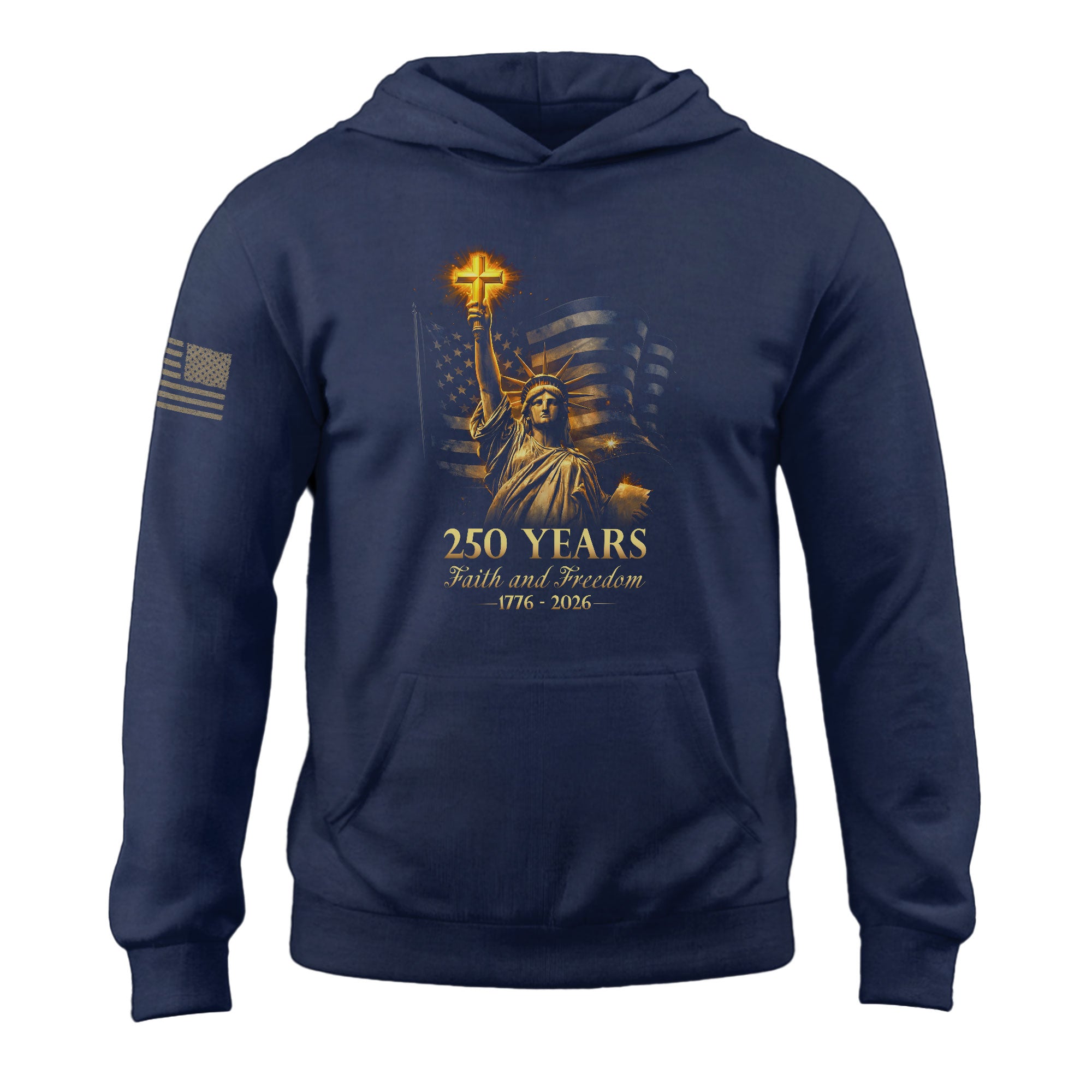 America 250th Anniversary Men’s Hoodie 1776-2026 Statue of Liberty Christian Cross Faith Freedom