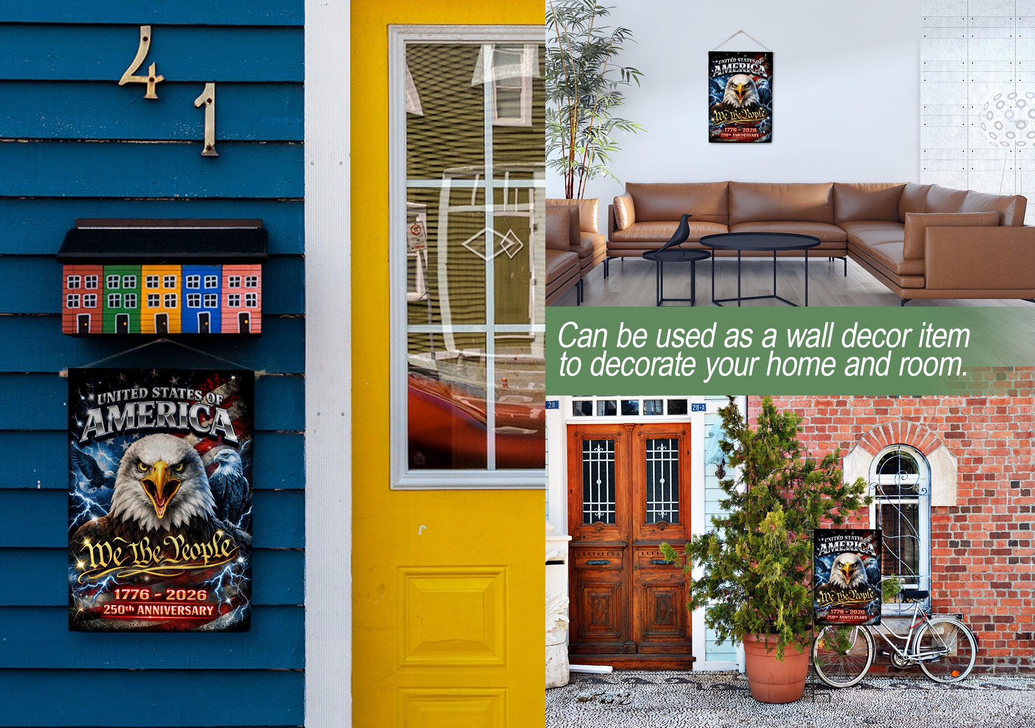 Celebrate America’s 250th anniversary with this double-sided garden flag featuring the iconic ‘We The People’ text and a powerful eagle graphic spanning 1776-2026. Crafted for outdoor durability, it showcases the enduring spirit of freedom, resilience, and national pride. Perfect for displaying in your yard, porch, garden, or patio to honor this historic milestone. The vibrant, weather-resistant design ensures long-lasting color on both sides, making it an ideal decorative accent for patriotic events, holidays, or everyday patriotism.