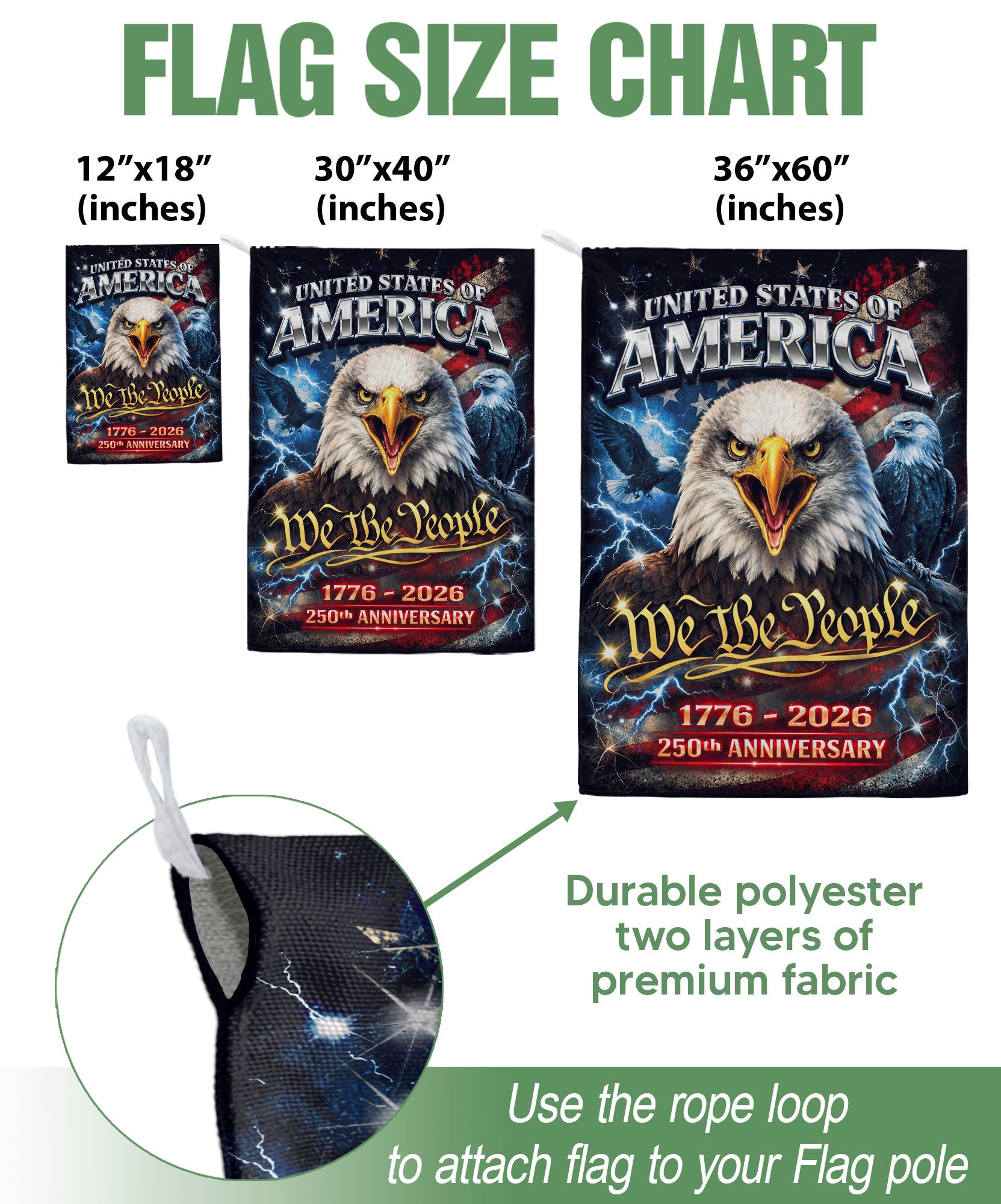 America We The People 250th Anniversary Double Sided House Flag Eagle 1776-2026