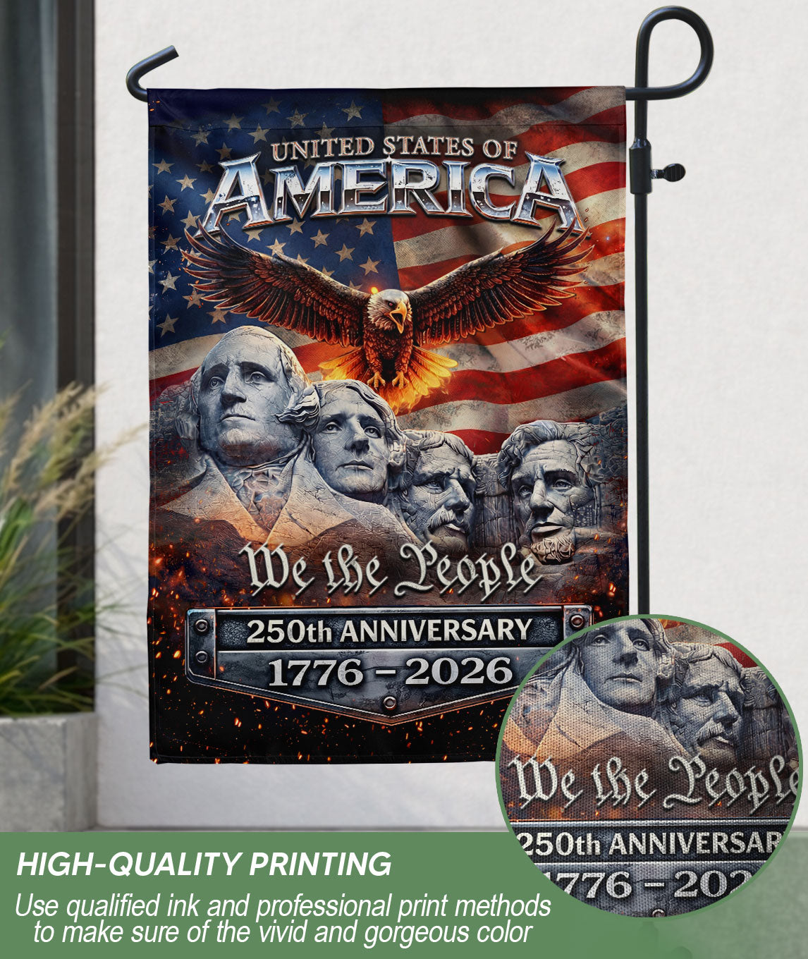 1776-2026 America 250th Anniversary Garden Flag We The People Bald Eagle Double Sided