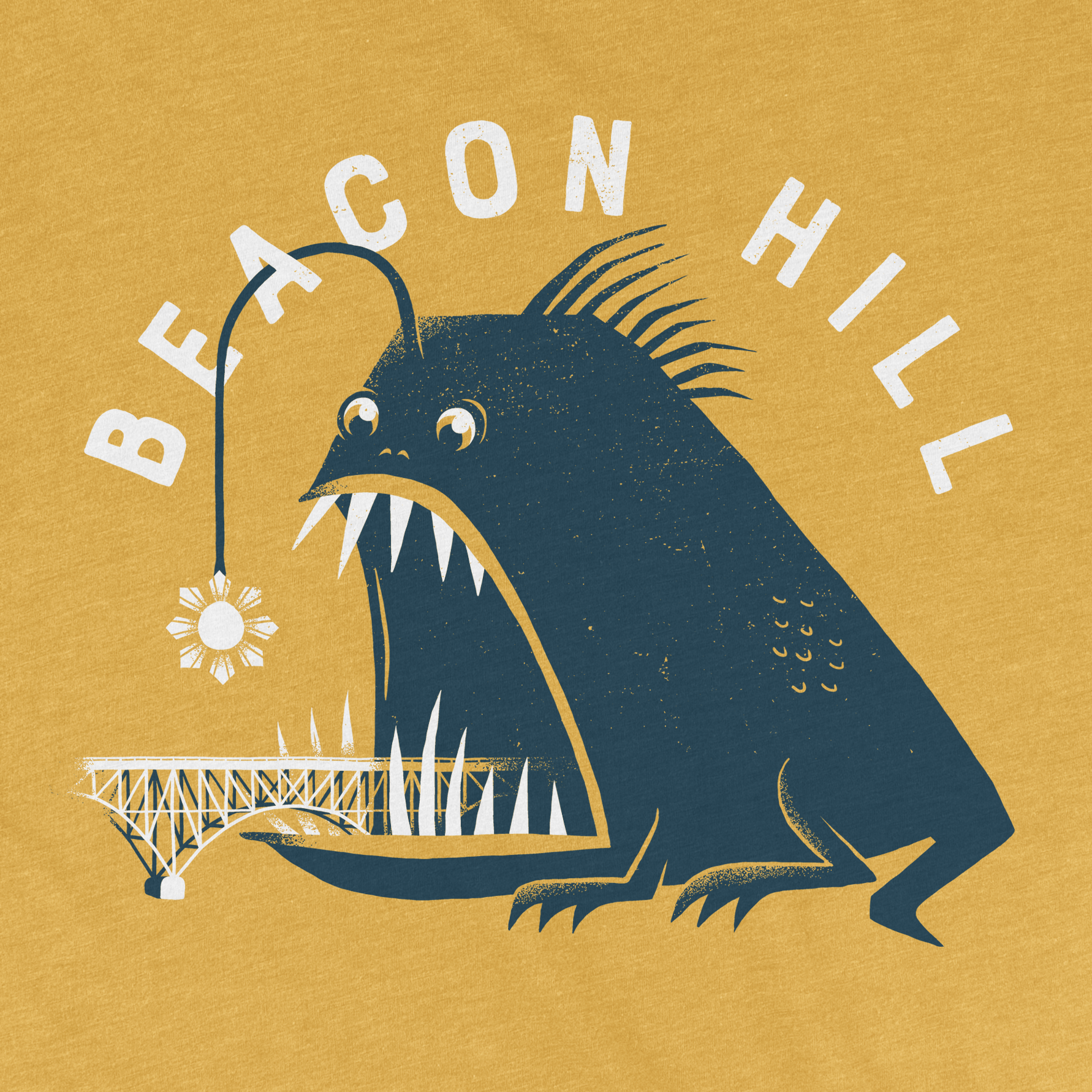 Soft cotton-poly tee in Heather Mustard Waterbase and discharge print 52% combed and ring-spun cotton, 48% polyester blend