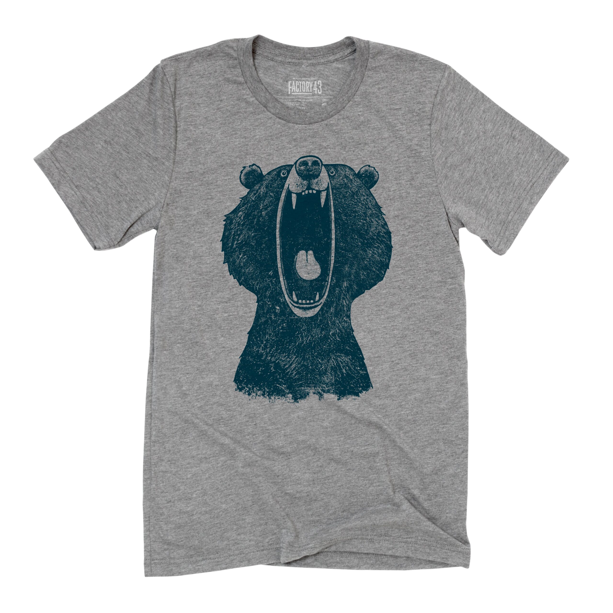 Super-soft triblend tee in Gray. Water-based inks 3.8 oz., 50% polyester, 25% combed and ringspun cotton, 25% rayon blend