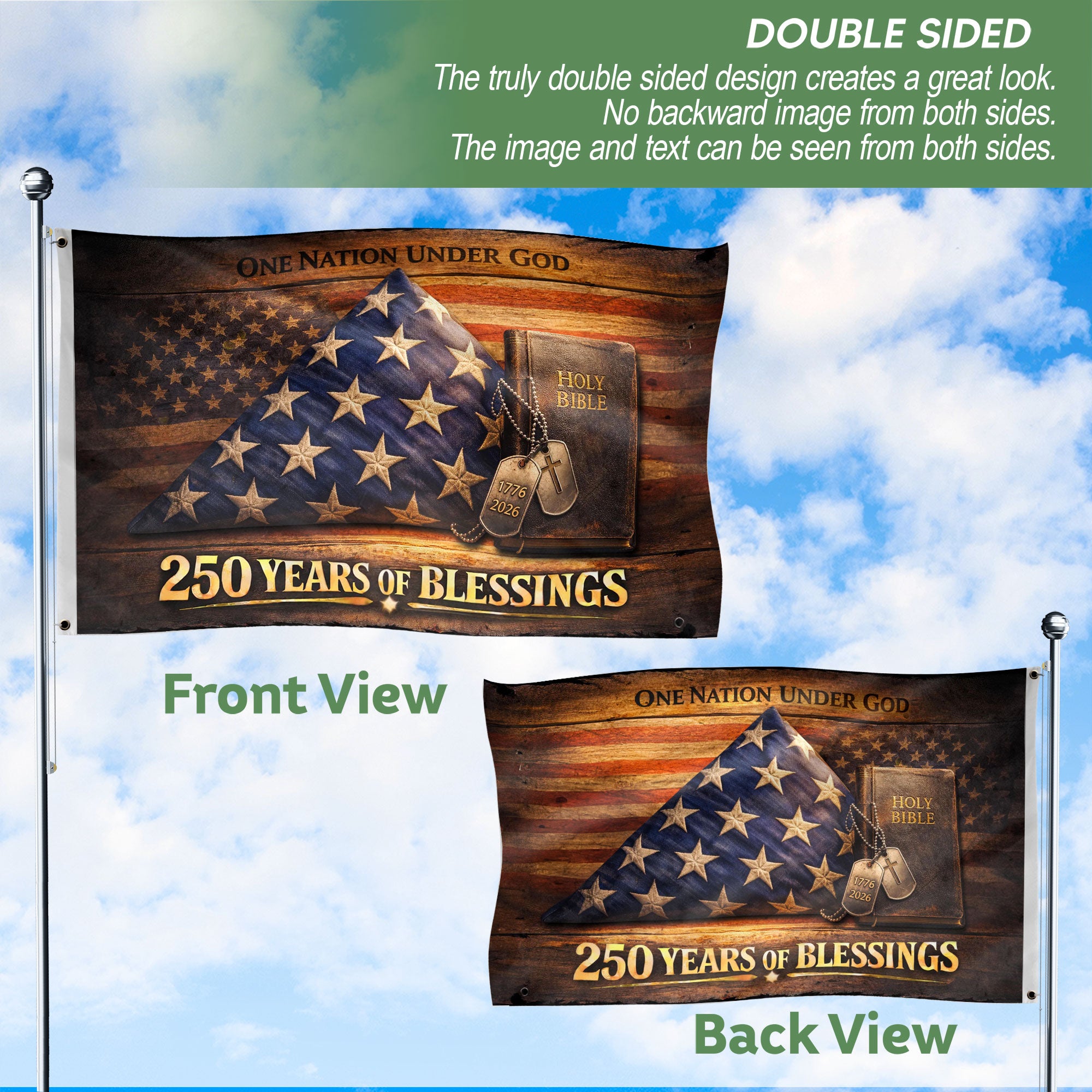 Christian 250 Years America Anniversary Double Sided Flag Holy Bible One Nation Under God 1776-2026 House Banner