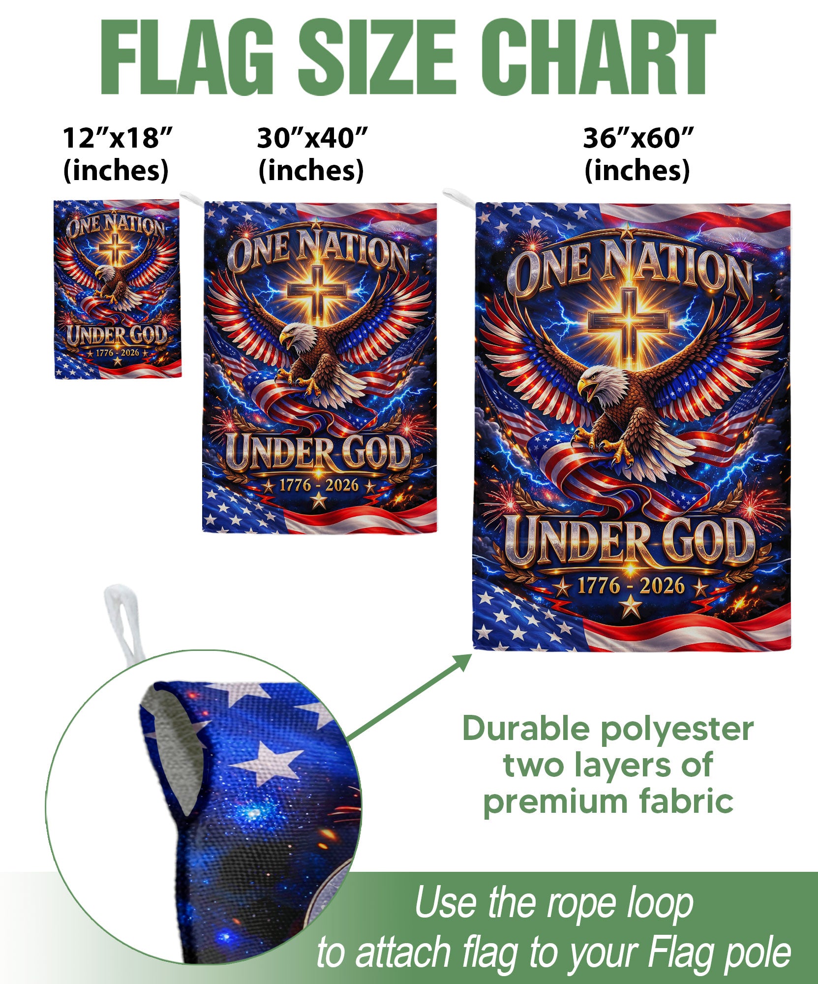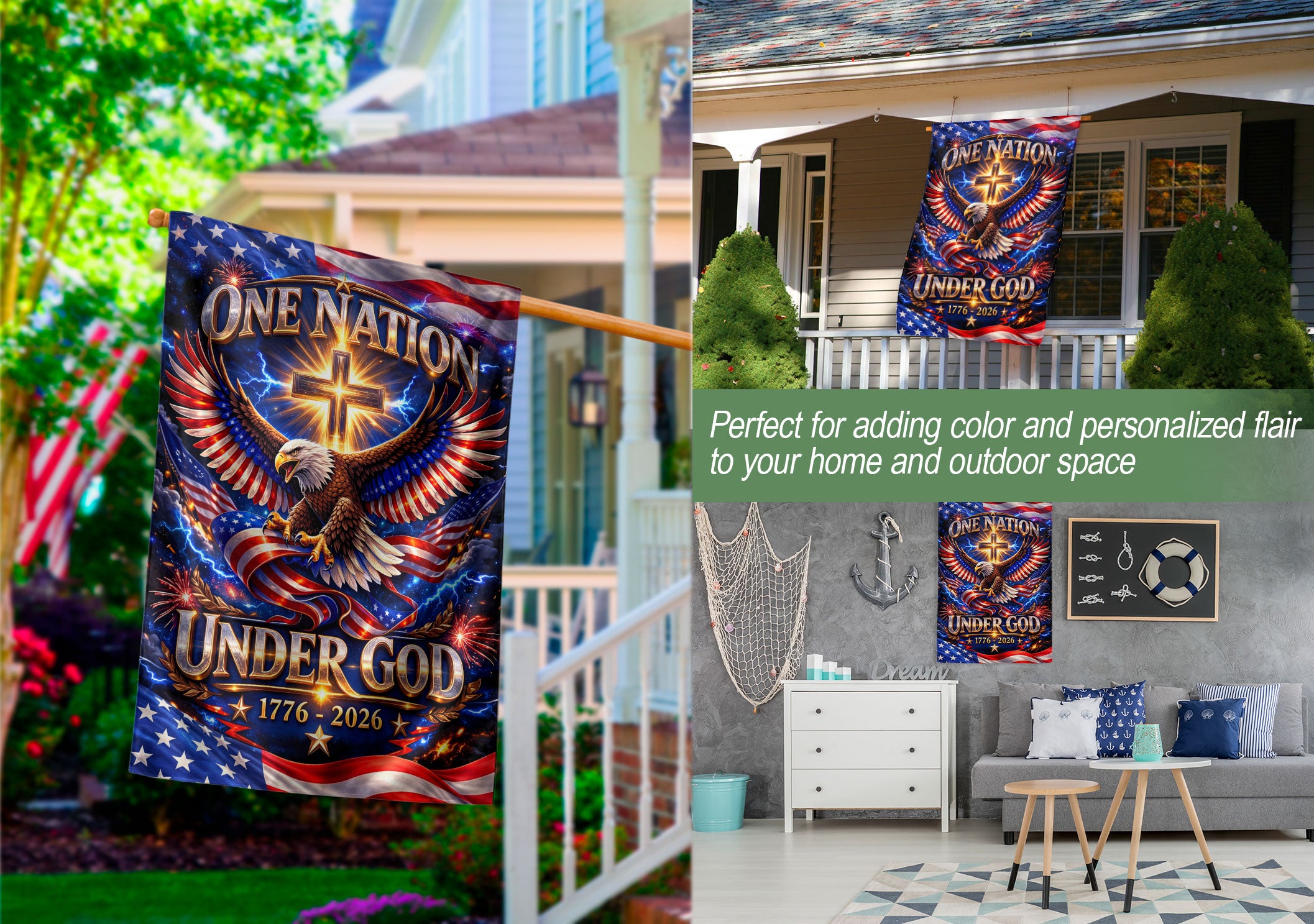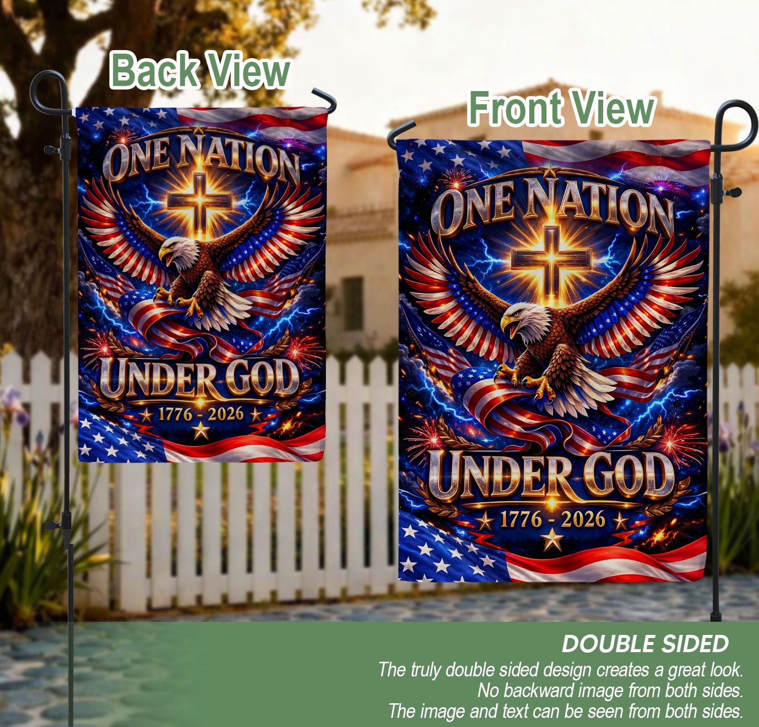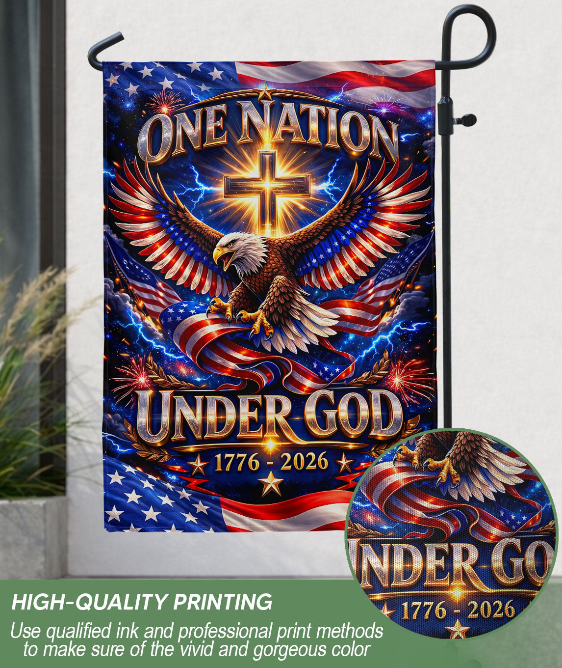 Christian One Nation Under God 250th Anniversary USA Garden Flag 1776-2026 Eagle Cross Patriotic Design