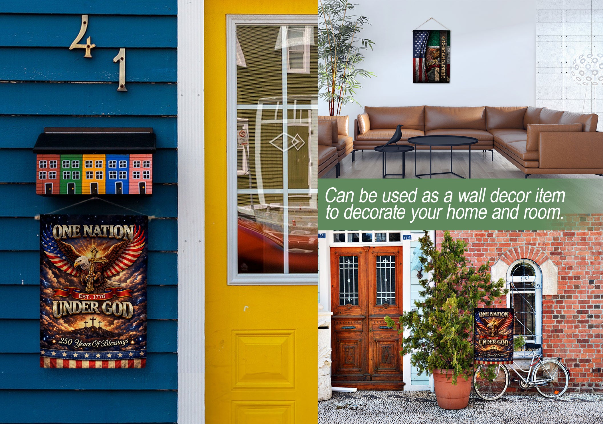Celebrate America’s 250th anniversary with this striking Christian house flag featuring ‘One Nation Under God Est 1776’ and a bold eagle cross design. Crafted for durable outdoor display, this patriotic faith banner proudly showcases enduring American spirit and Christian values. Perfect for porches, yards, or gardens, it measures standard house flag size with vibrant colors that withstand weather. Ideal for patriots honoring the nation’s founding in 1776, blending eagle symbolism, cross faith elements, and USA pride. Hang it high to display your commitment to liberty, faith, and heritage during this historic milestone.