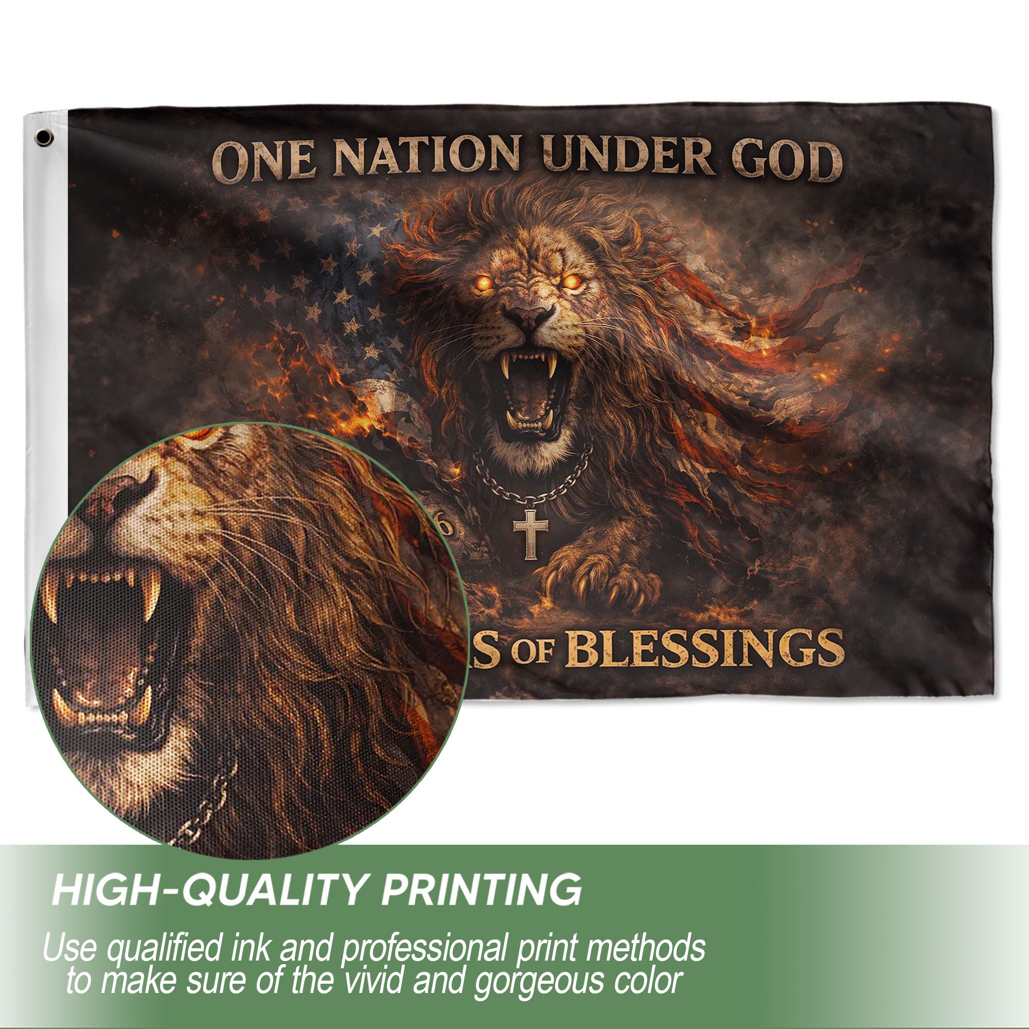 Celebrate America’s 250th anniversary from 1776 to 2026 with this Christian patriotic double-sided house flag. Featuring the iconic Lion of Judah symbol and ‘One Nation Under God’ message, it honors generations of faith, freedom, devotion, courage, and trust in divine guidance. This durable all-weather banner is perfect for displaying on your home, garden, or porch, showcasing national pride rooted in biblical values. The high-quality printed design ensures vibrant colors and sharp details visible from both sides, making it ideal for patriots, Christians, and history enthusiasts. Crafted for outdoor use, it withstands wind, rain, and sun while maintaining its bold appearance.