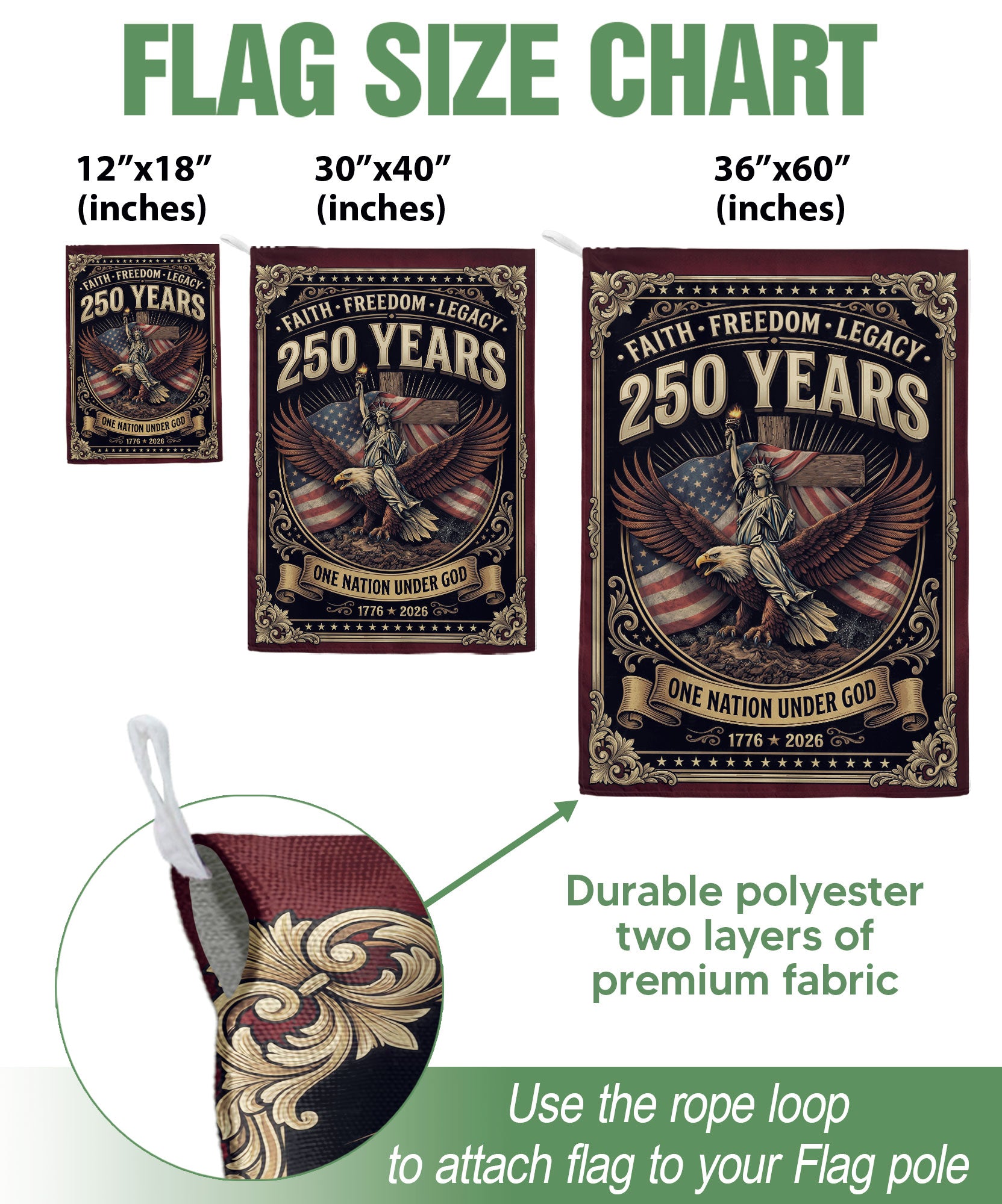 One Nation Under God 250 Years Flag 1776-2026 Eagle Cross Christian Double Sided USA House Flag