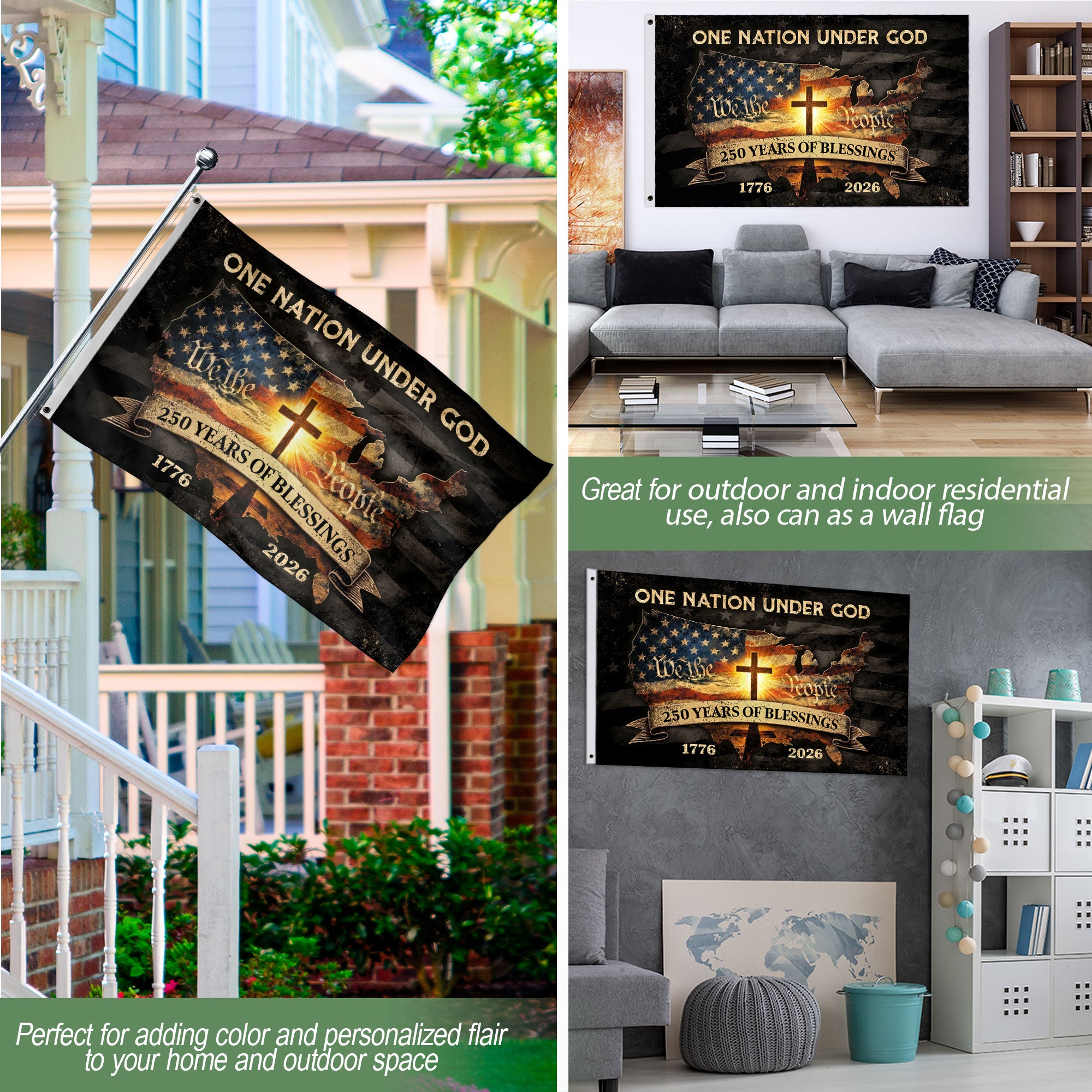 250 Years of Blessings Christian American Flag – One Nation Under God Patriot US Banner