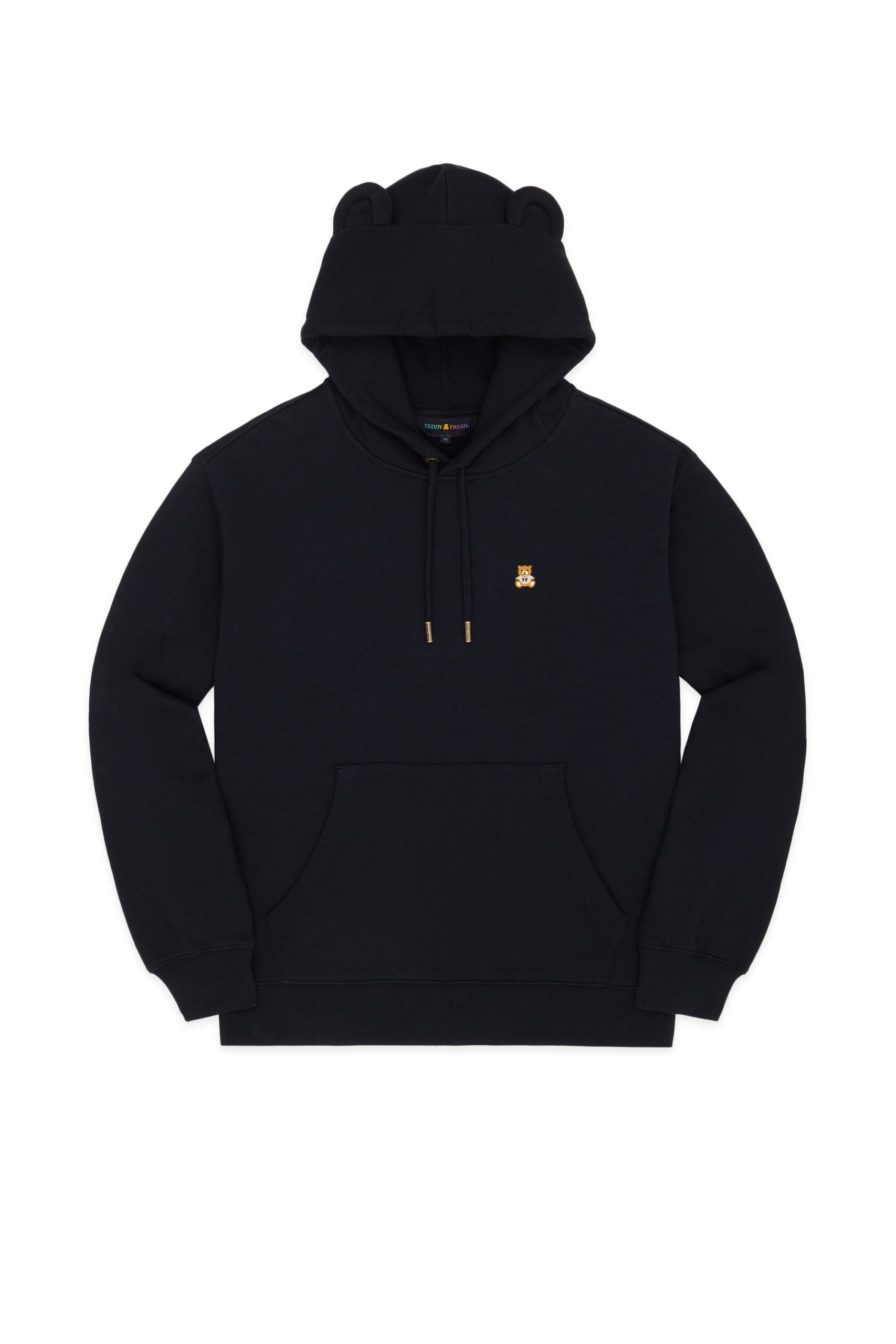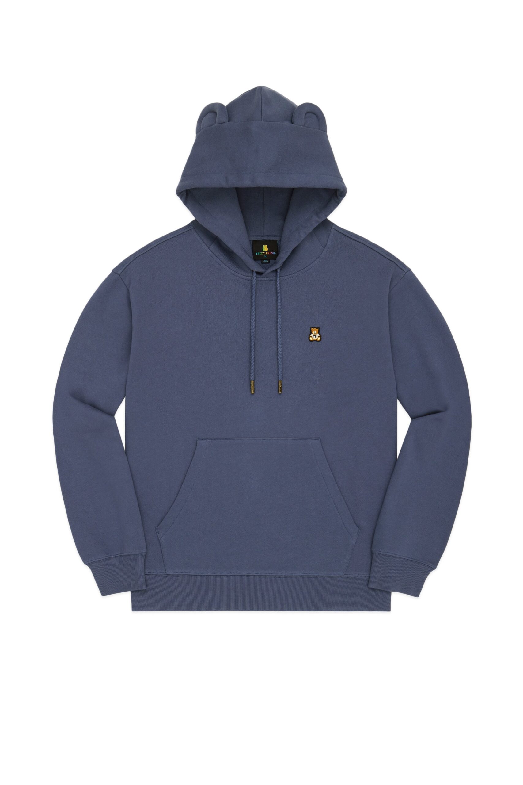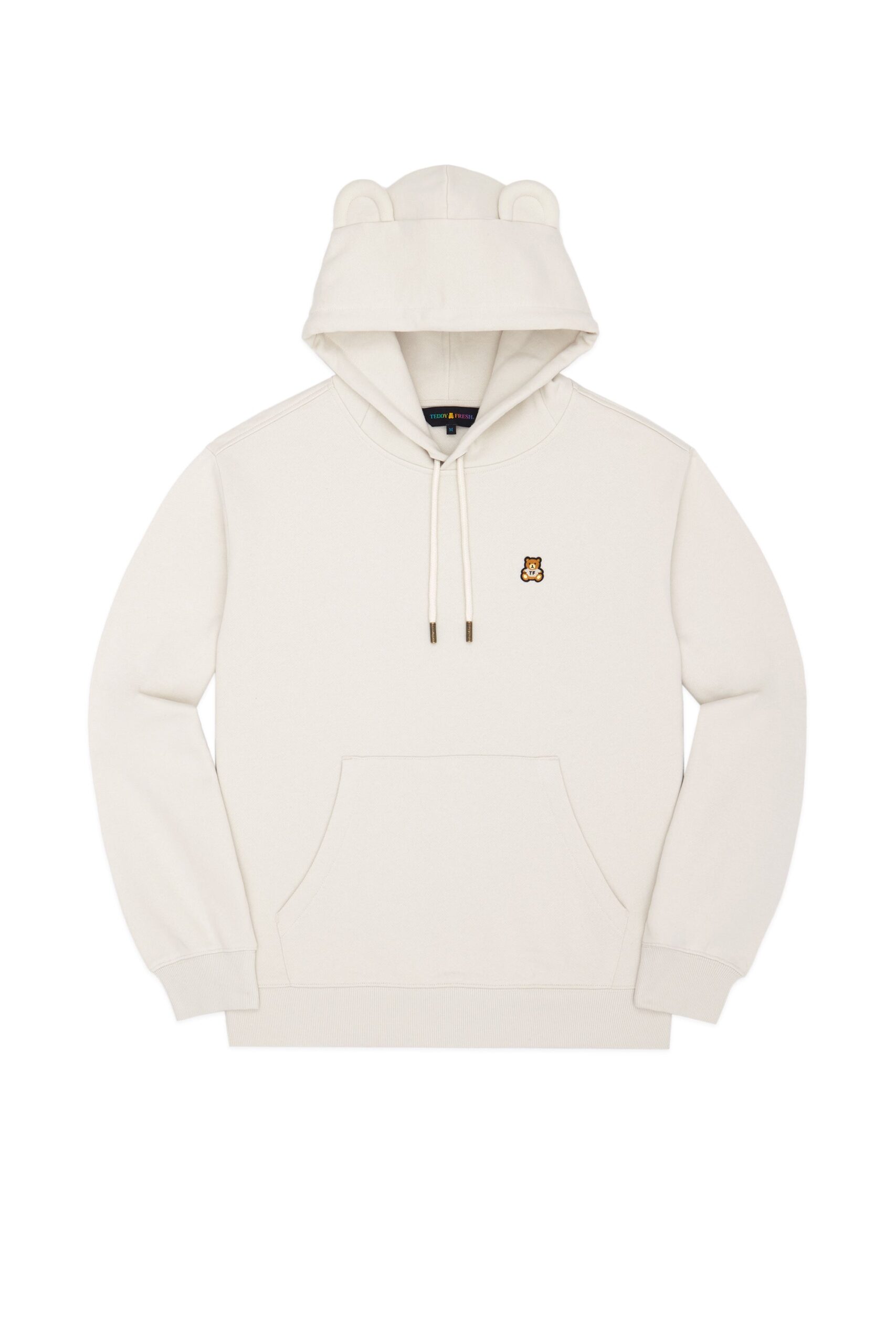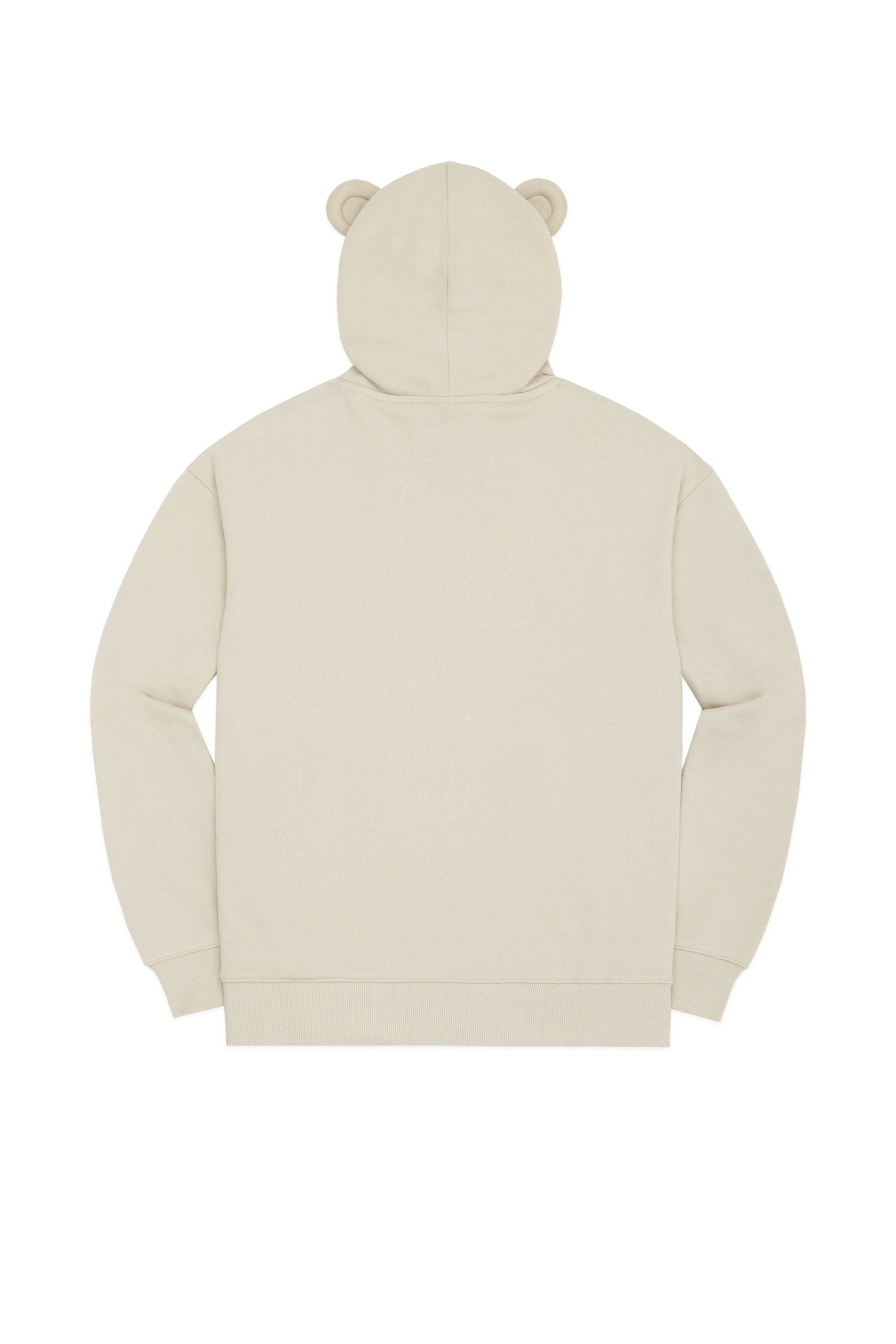 DETAILS Fleece hoodie with bear ears Braided drawcord hood with with debossed metal aglets Embroidered bear patch on chest Ribbed cuffs, neckband, and waistband Kangaroo pocket 100% Pre-shrunk cotton fleece, 320gsm, fabric piece dyed FIT Unisex regular fit Size Medium: Chest: 48″ Length: 27″ (measured flat) Malcolm is 6’1″ and wearing size L Model’s chest/bust: 36″ Model’s waist: 32″ Horace is 6’0″ and wearing size M Model’s chest/bust: 40″ Model’s waist: 31″ Model’s hip: 30″
