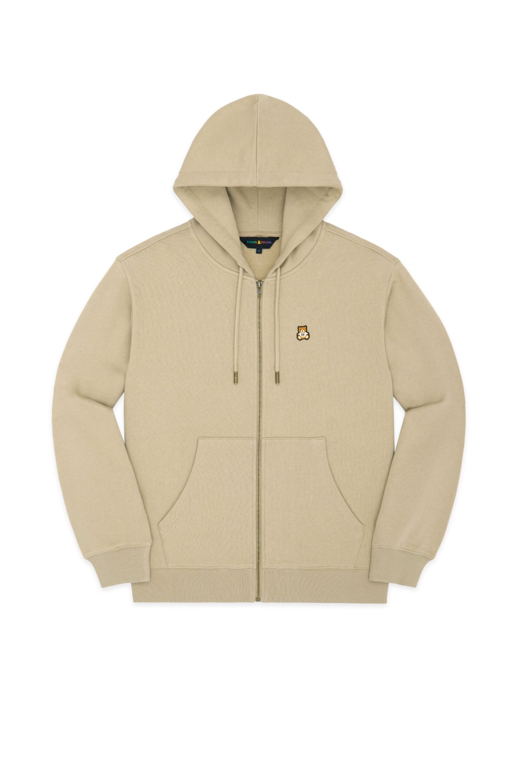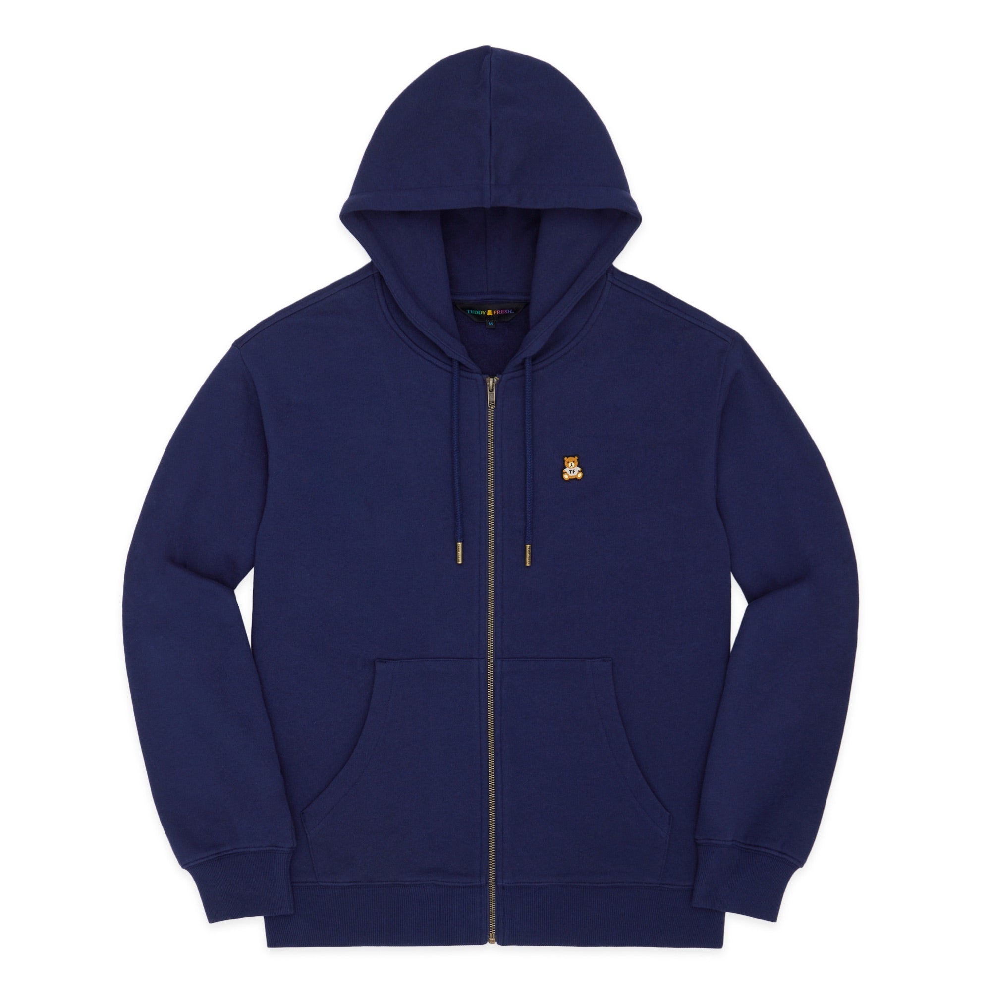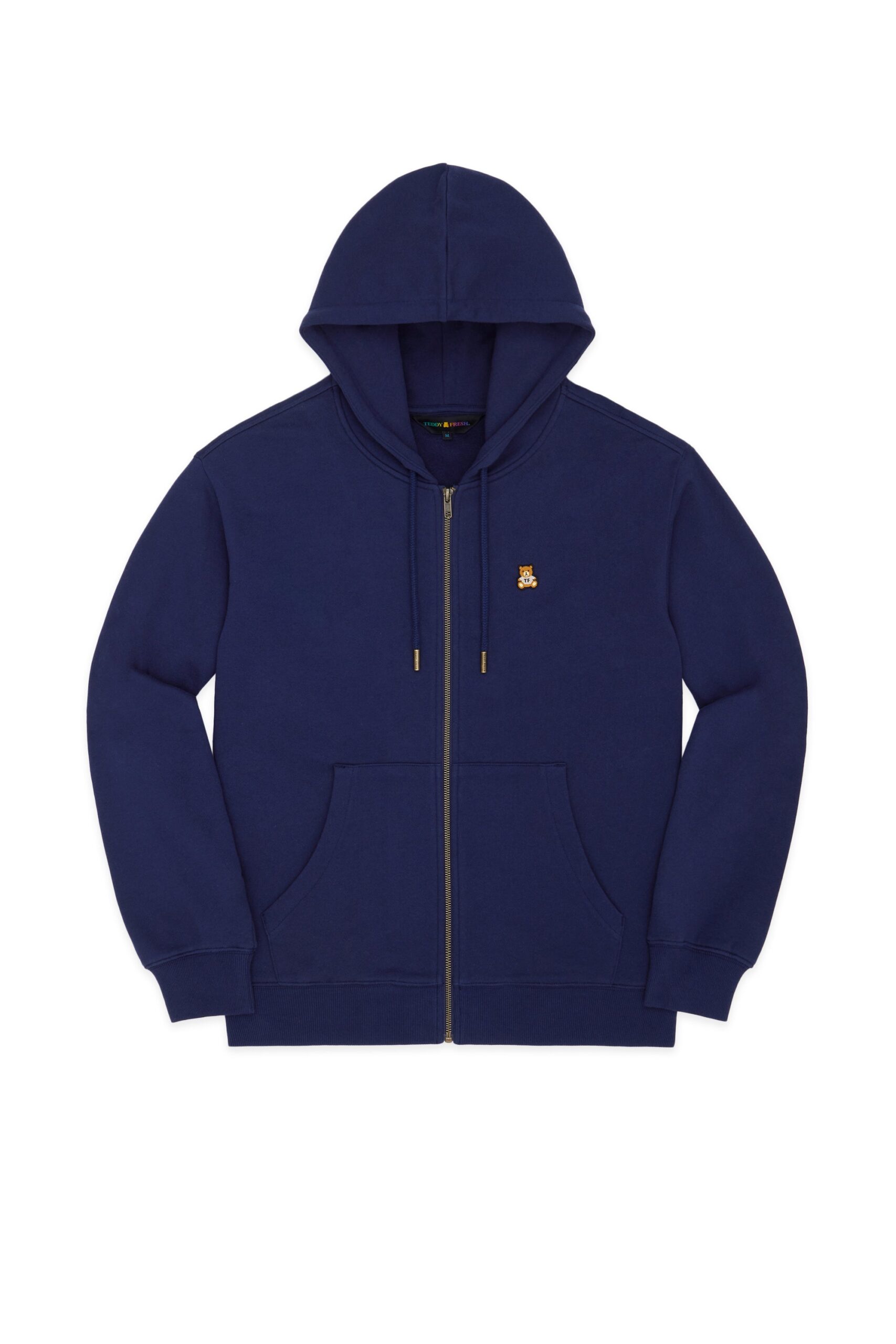 DETAILS Full zip-up fleece hoodie Braided drawcord hood with with debossed metal aglets Embroidered bear patch on chest Ribbed cuffs, neckband, and waistband Split kangaroo pocket 100% Pre-shrunk cotton fleece, 320gsm, fabric piece dyed FIT Unisex regular fit Size Medium: Chest: 48″ Length: 27″ (measured flat) Malcolm is 6’1″ and wearing size L Model’s chest/bust: 36″ Model’s waist: 32″