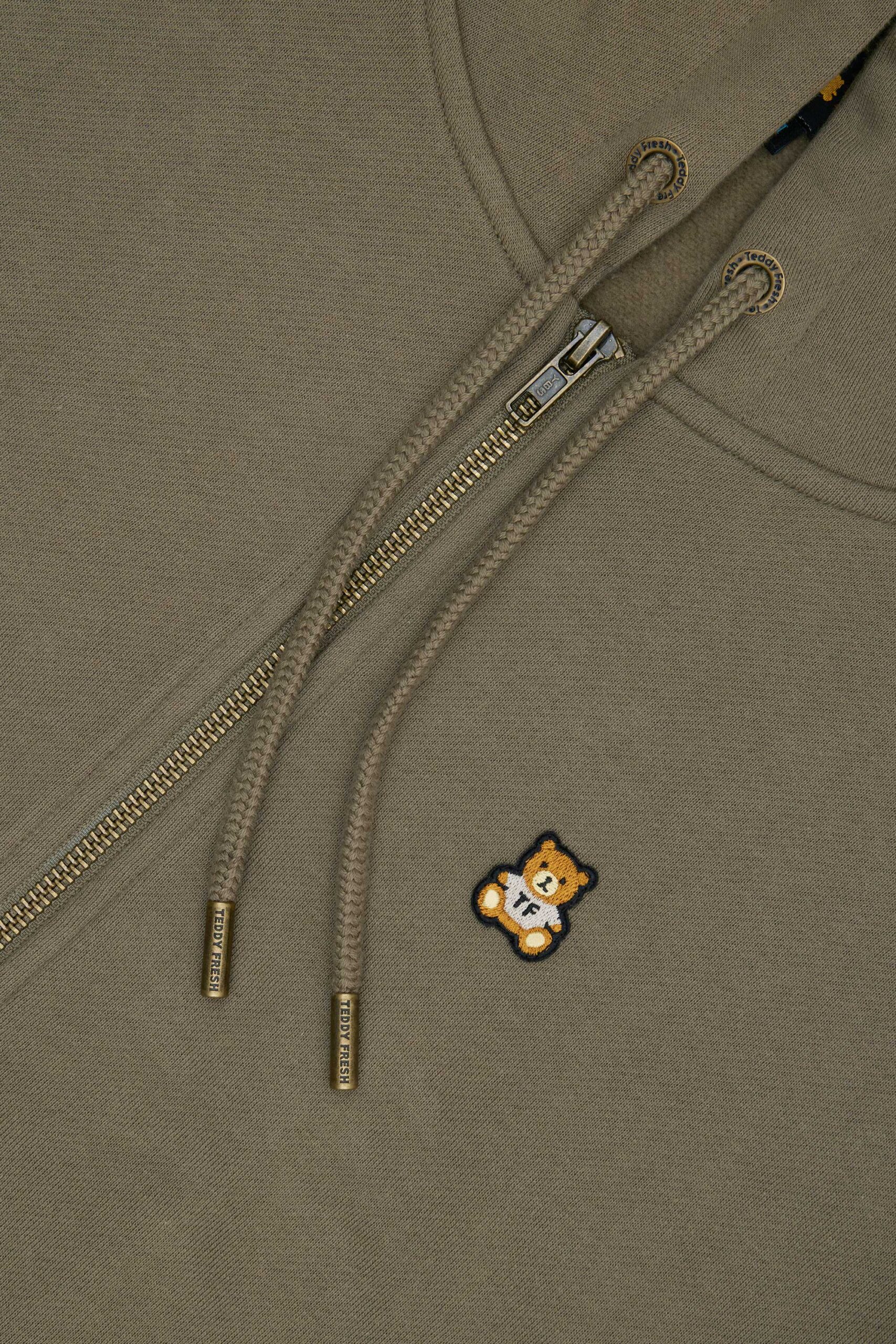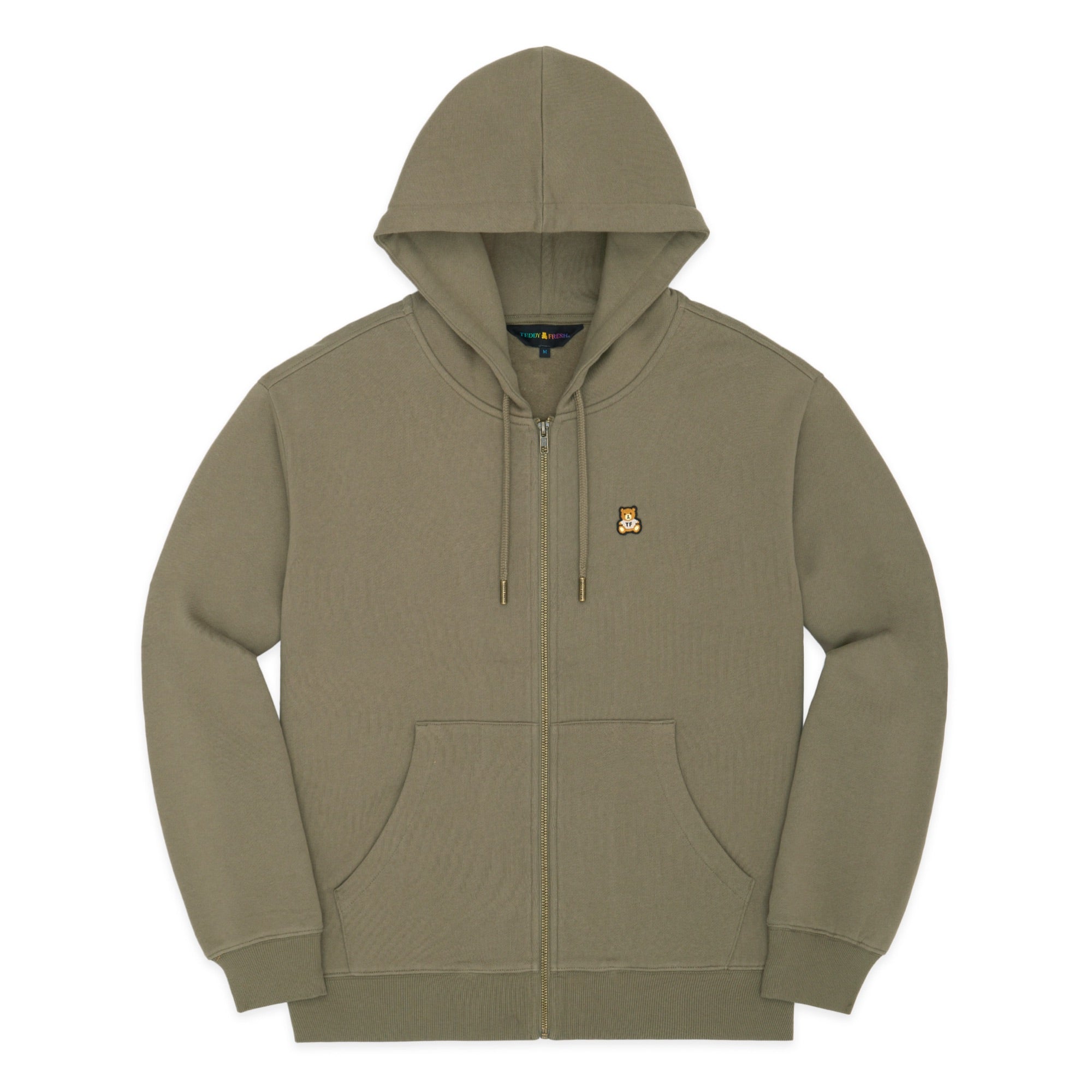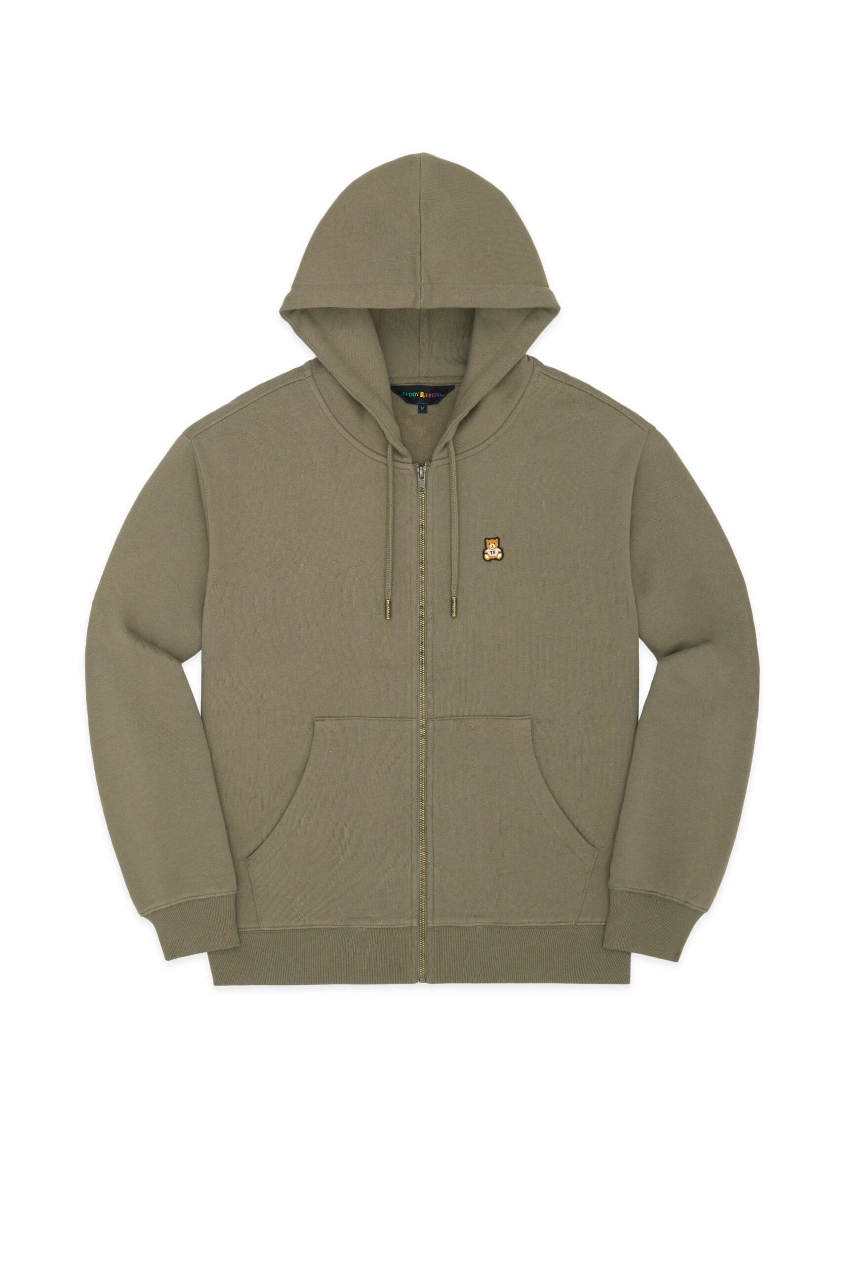 DETAILS Full zip-up fleece hoodie Braided drawcord hood with with debossed metal aglets Embroidered bear patch on chest Ribbed cuffs, neckband, and waistband Split kangaroo pocket 100% Pre-shrunk cotton fleece, 320gsm, fabric piece dyed FIT Unisex regular fit Size Medium: Chest: 48″ Length: 27″ (measured flat) Malcolm is 6’1″ and wearing size L Model’s chest/bust: 36″ Model’s waist: 32″