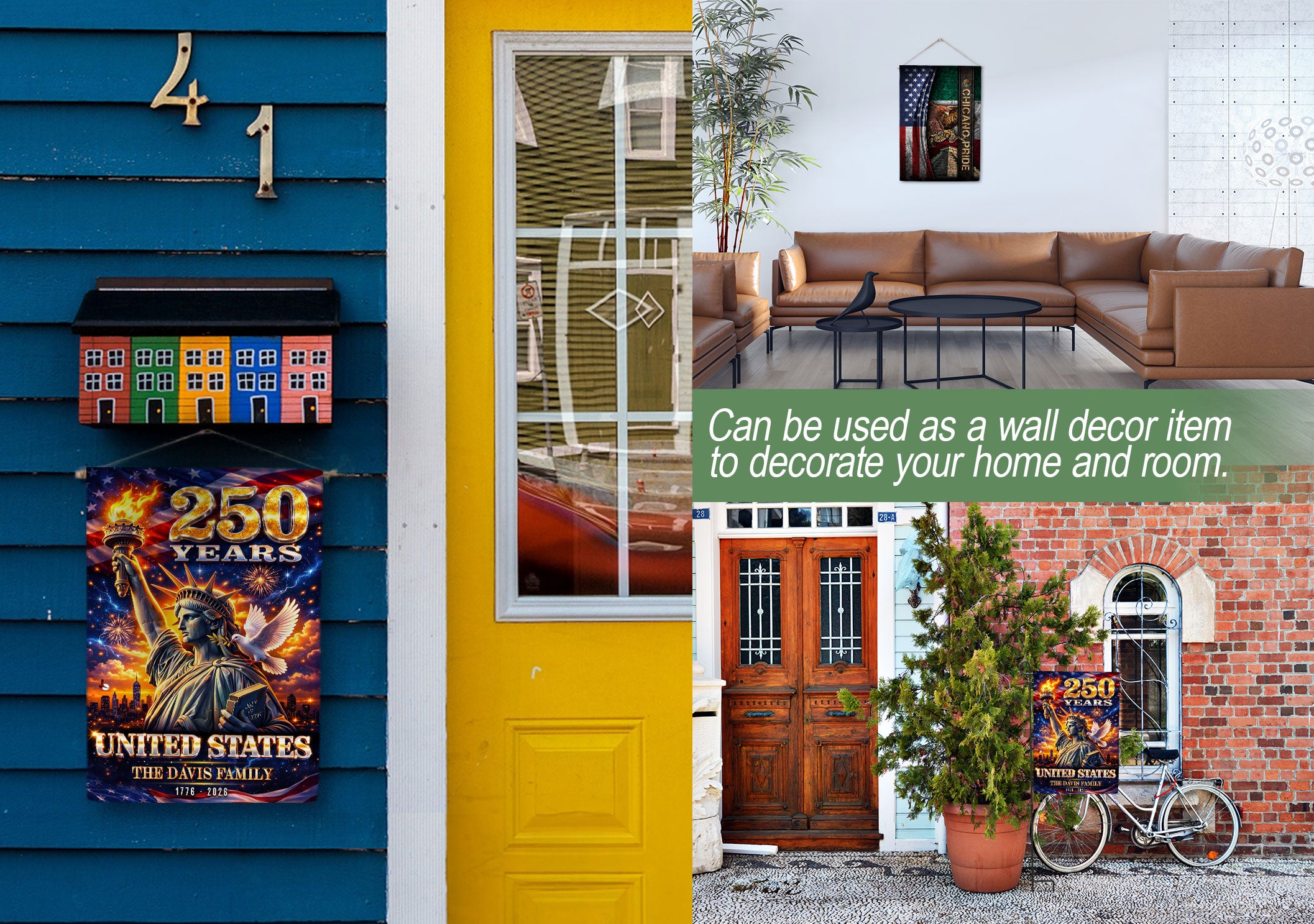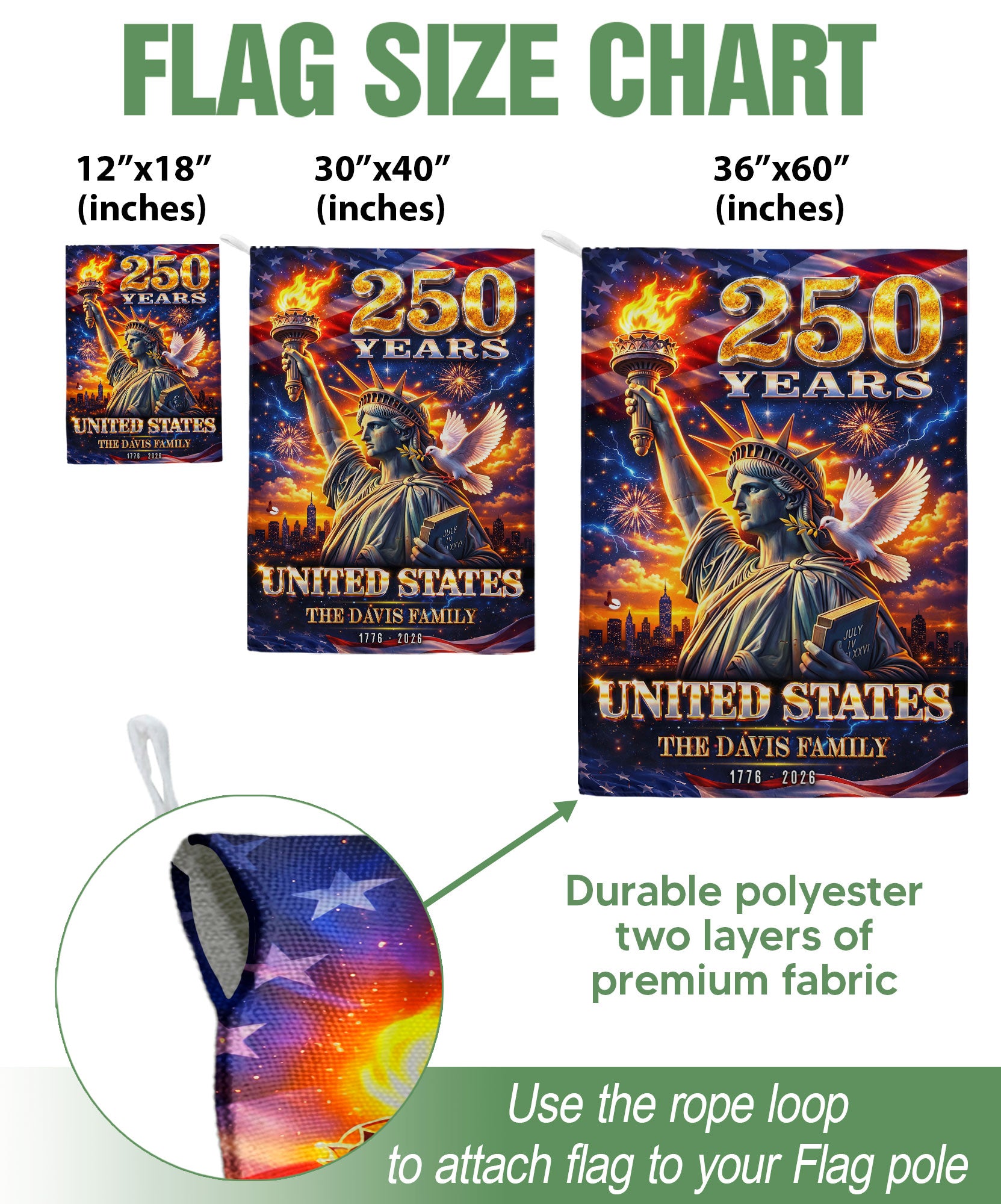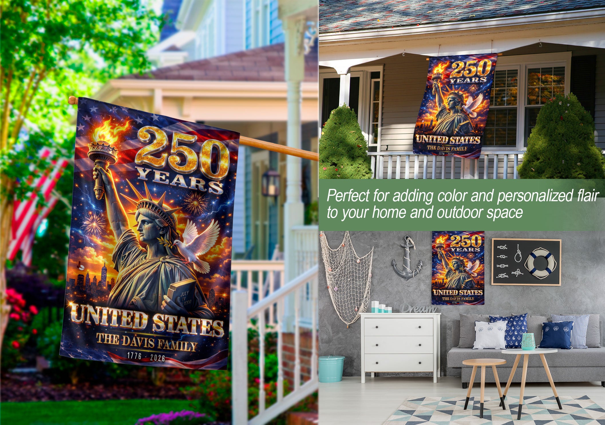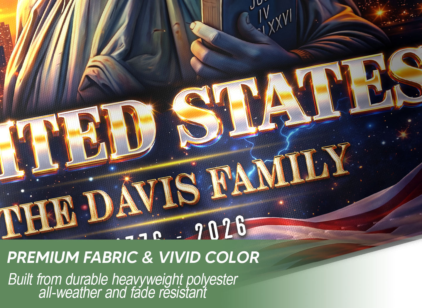 Custom Family Name 250th Anniversary Garden Flag Statue of Liberty USA 1776-2026