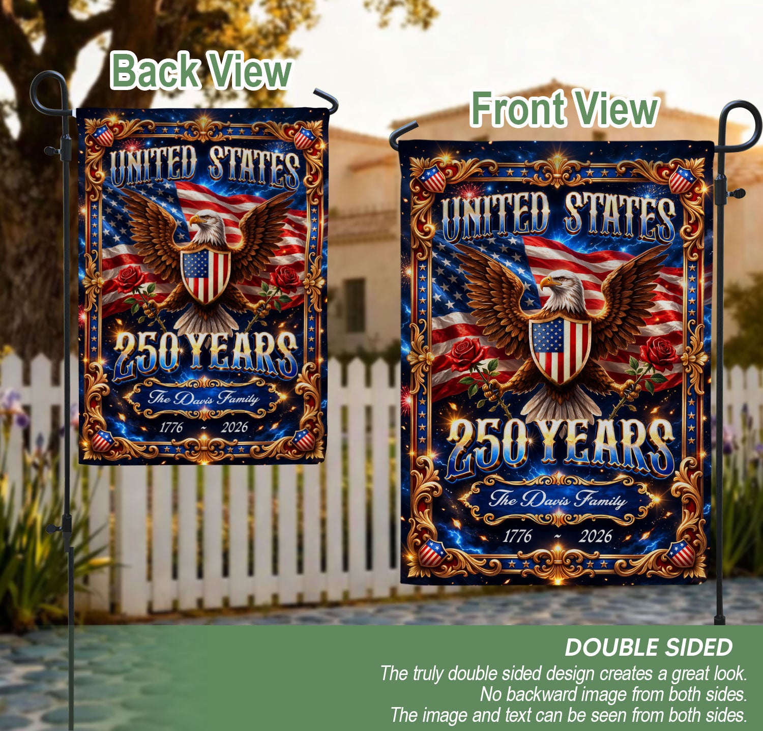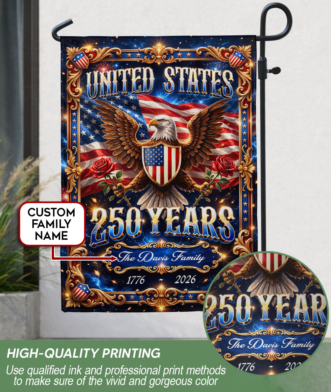 Custom Family Name Garden Flag 250 Years 1776-2026 Patriotic Eagle USA Flag