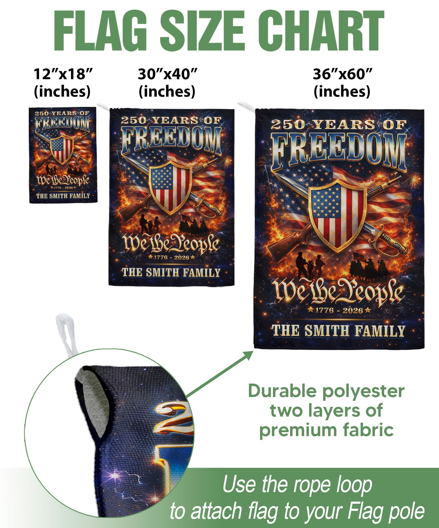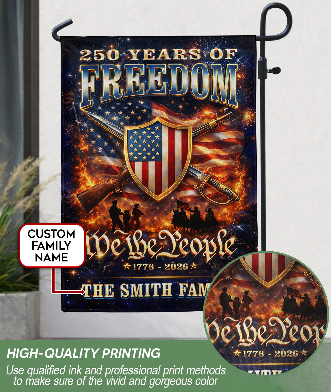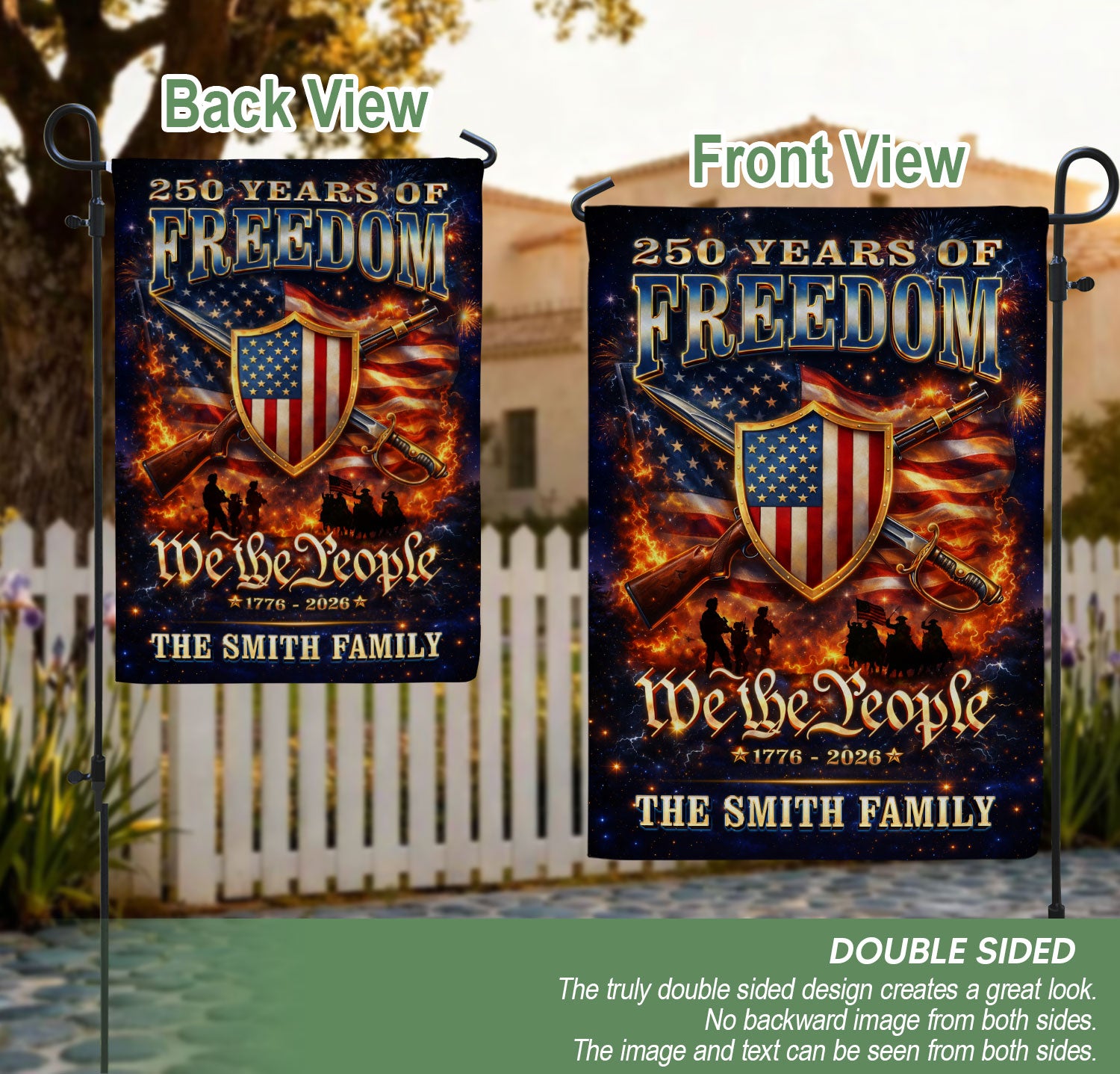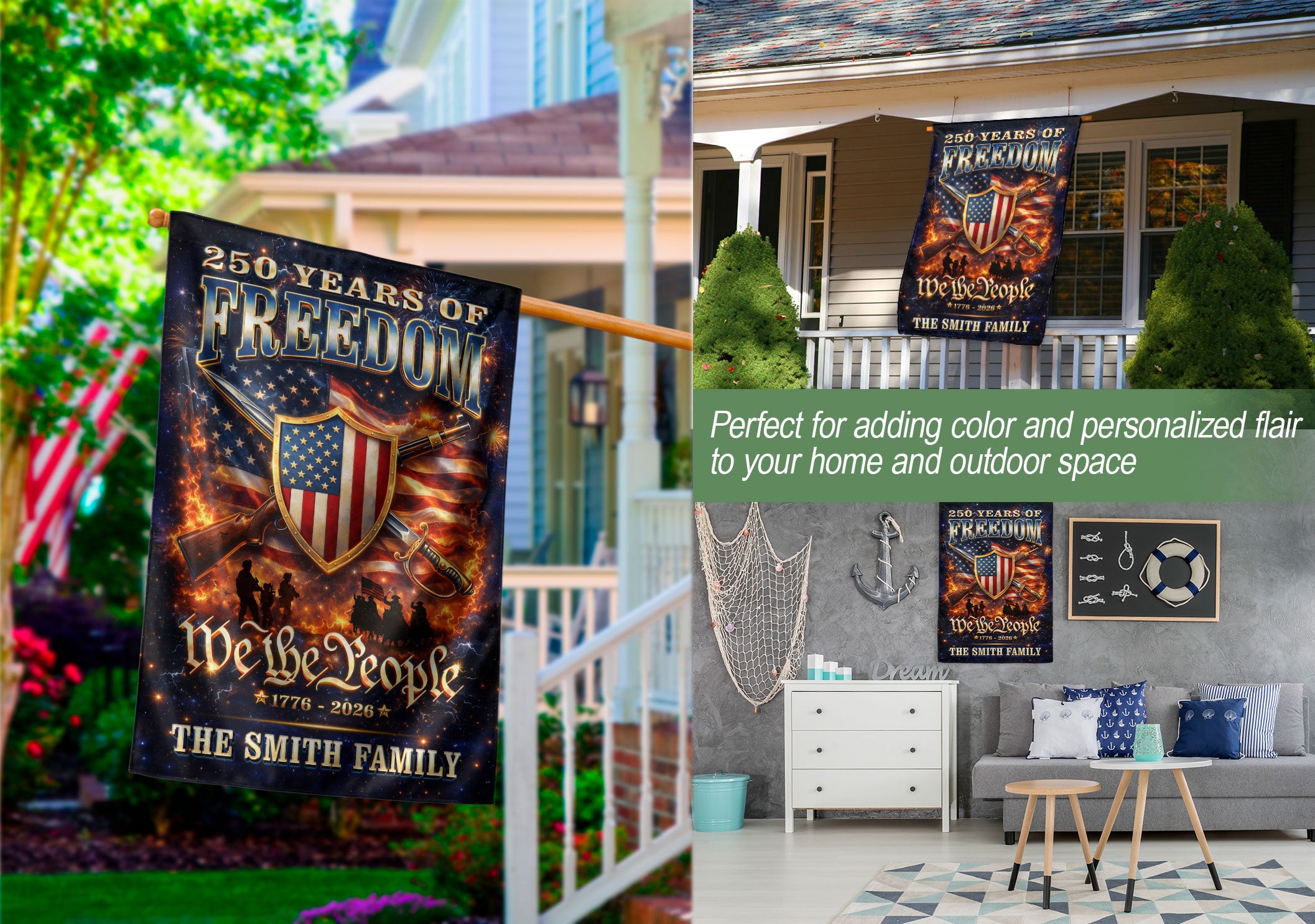 Custom Family Name Garden Flag 250 Years of Freedom 1776-2026 Patriotic American Flag Decor