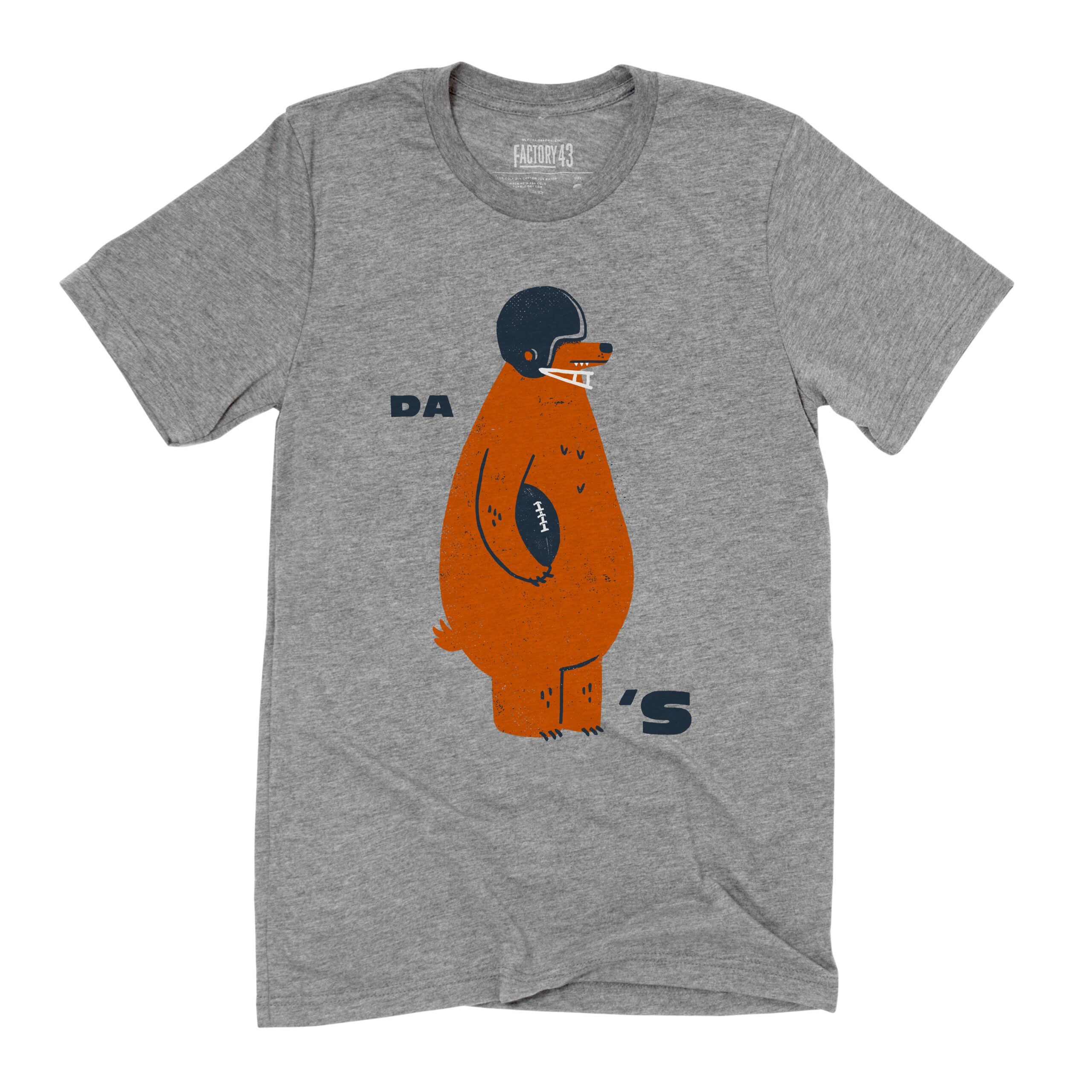 Super-soft triblend tee in Gray Discharge and water-based inks. 3.8 oz., 50% polyester, 25% combed and ringspun cotton, 25% rayon blend