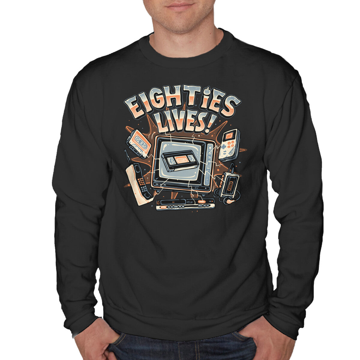 Eighties Lives is a great Unisex Crew Neck Sweatshirt from our amazing collection of custom fandom inspired products. This product was designed by glitchygorilla, who is part of our exclusive pop-culture inspired artist community.