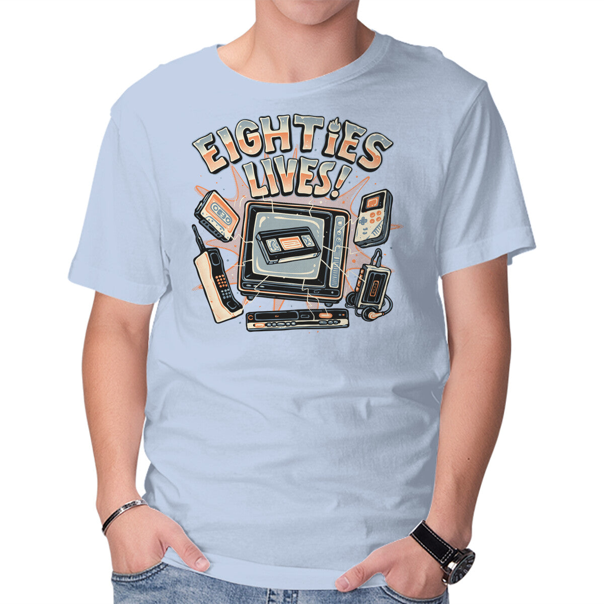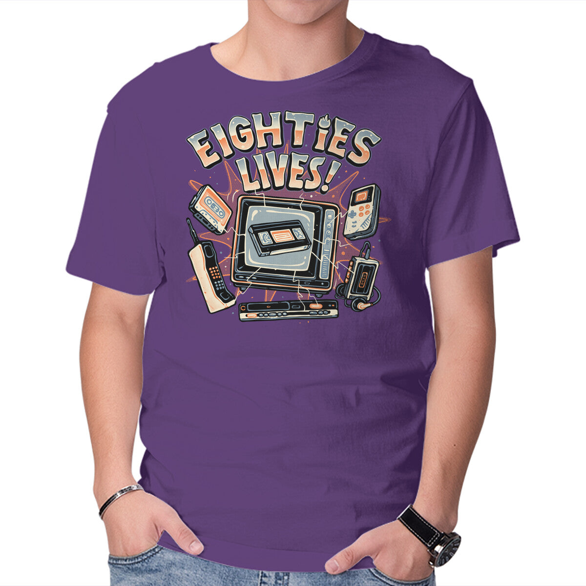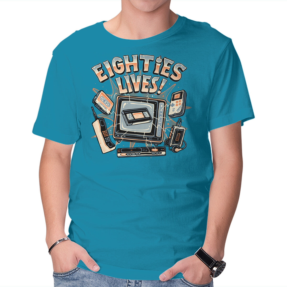 Eighties Lives is a great Mens Basic Tee from our amazing collection of custom fandom inspired products. This product was designed by glitchygorilla, who is part of our exclusive pop-culture inspired artist community.