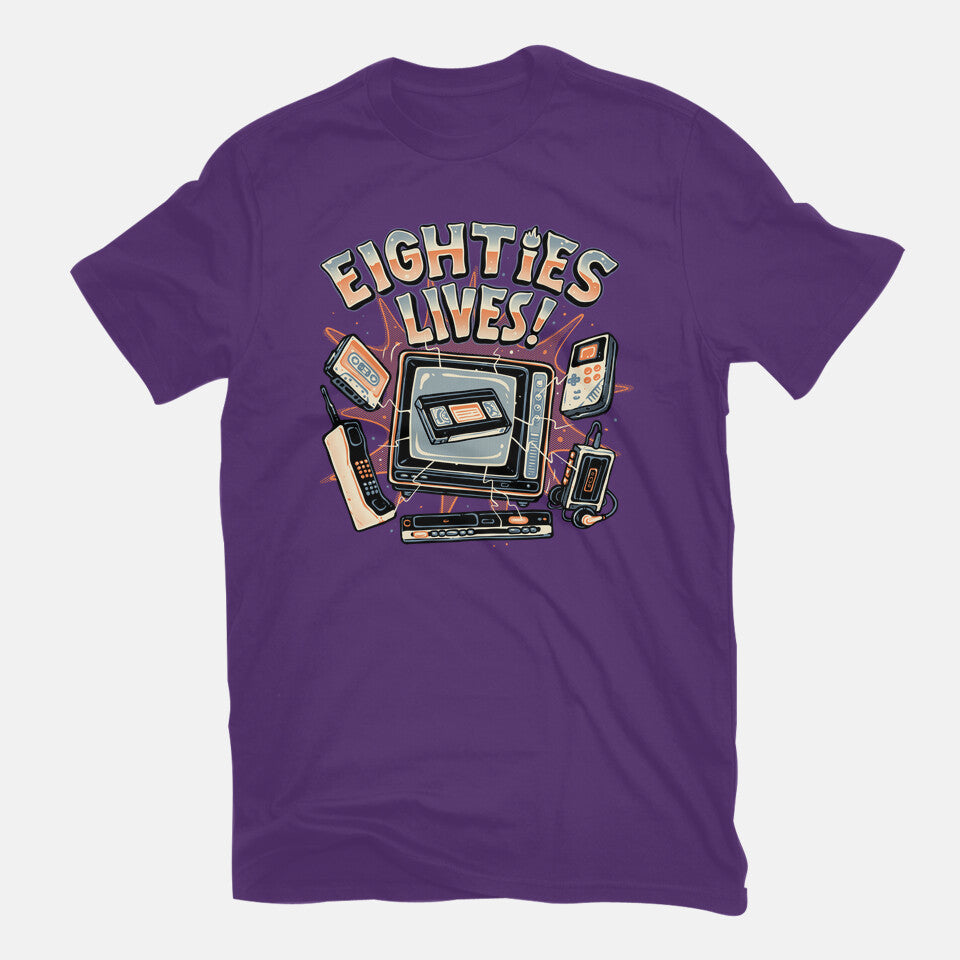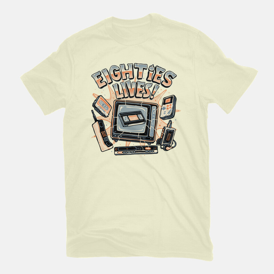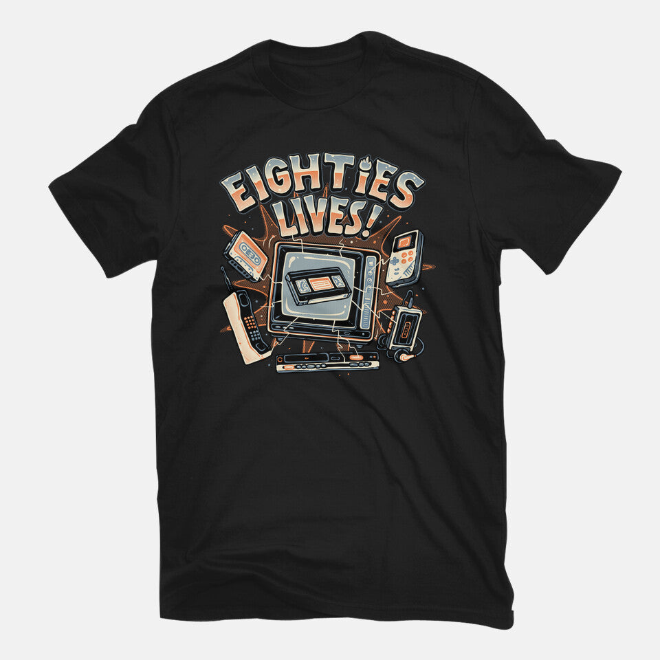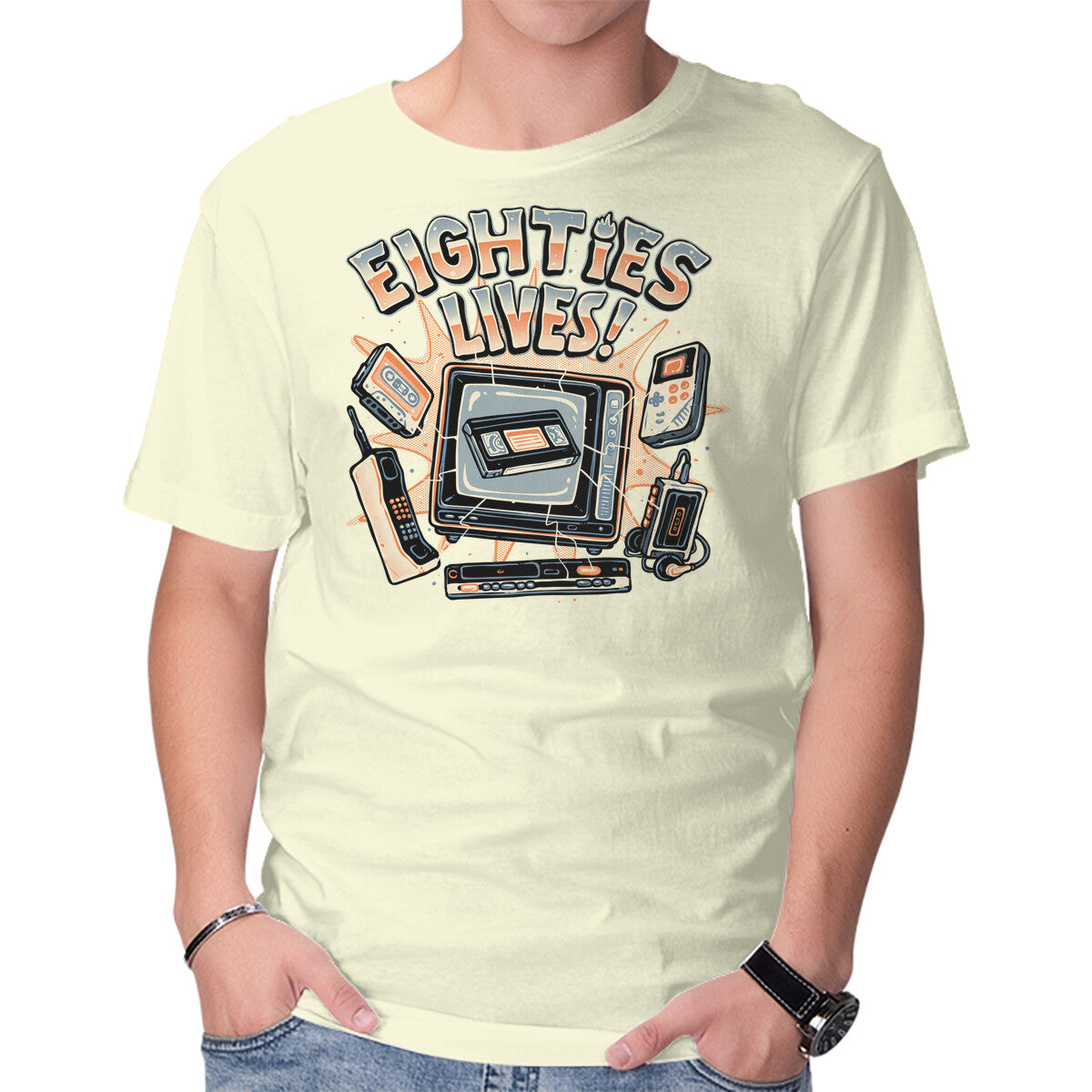 Eighties Lives is a great Mens Basic Tee from our amazing collection of custom fandom inspired products. This product was designed by glitchygorilla, who is part of our exclusive pop-culture inspired artist community.