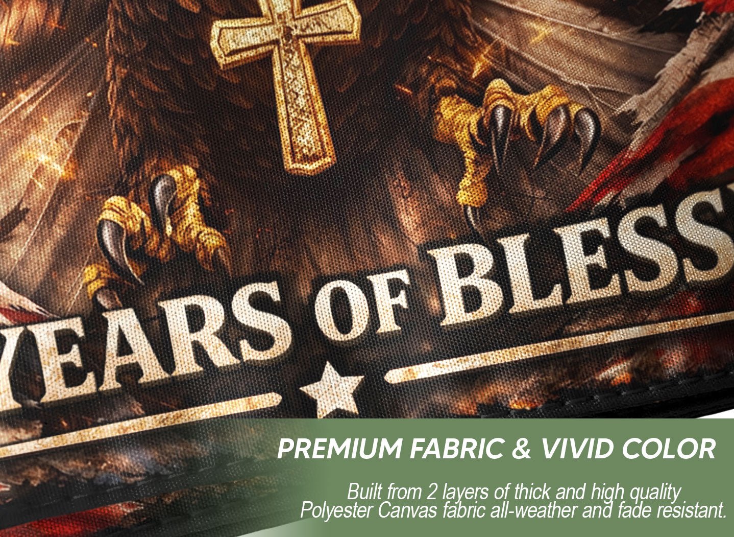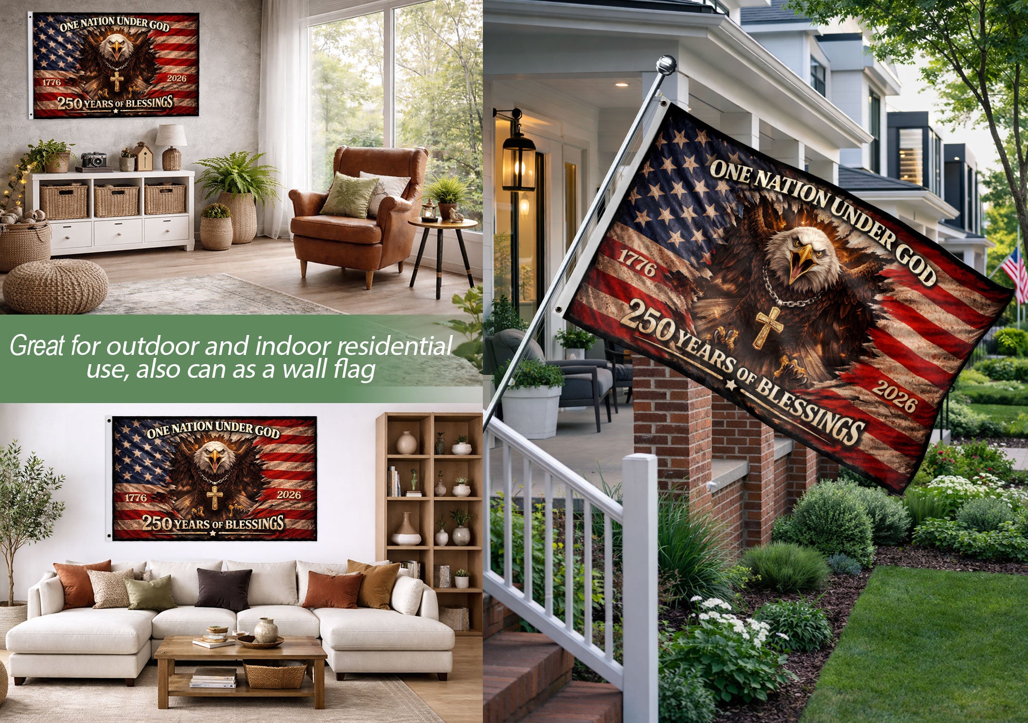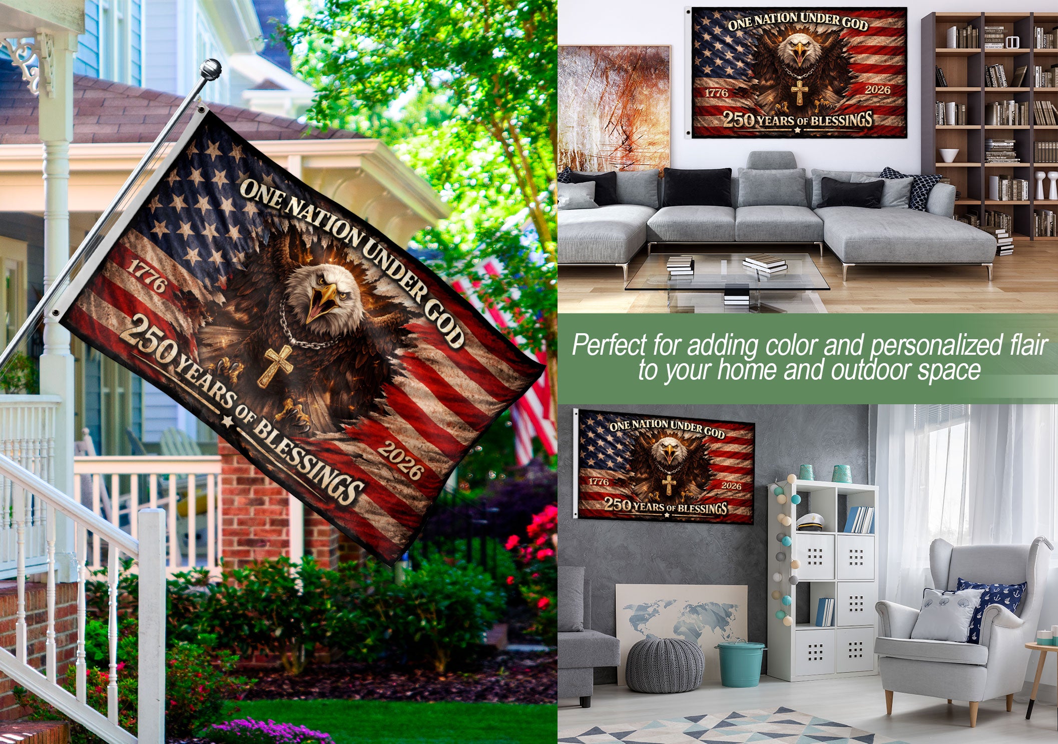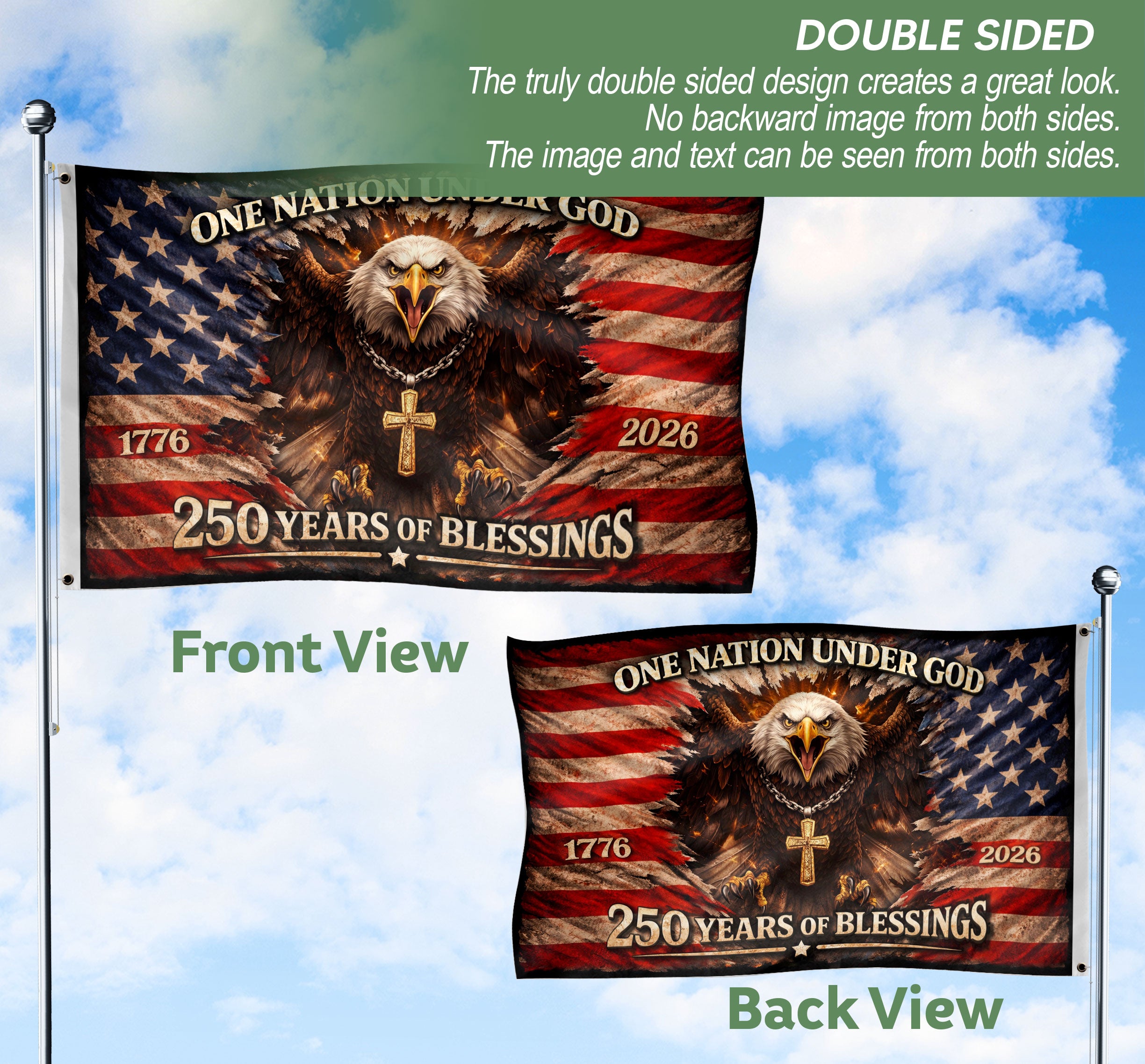 One Nation Under God 250th Anniversary Flag 1776-2026 Bald Eagle Cross 3×5 ft Patriotic Banner